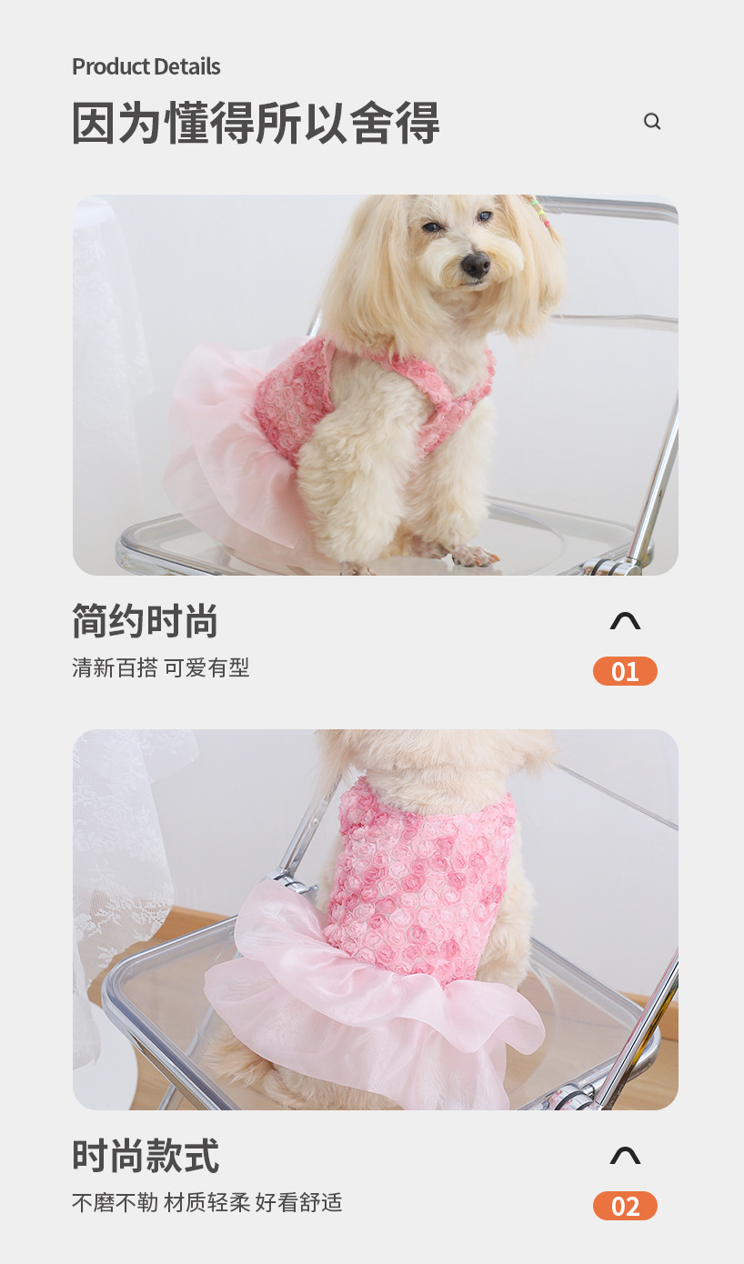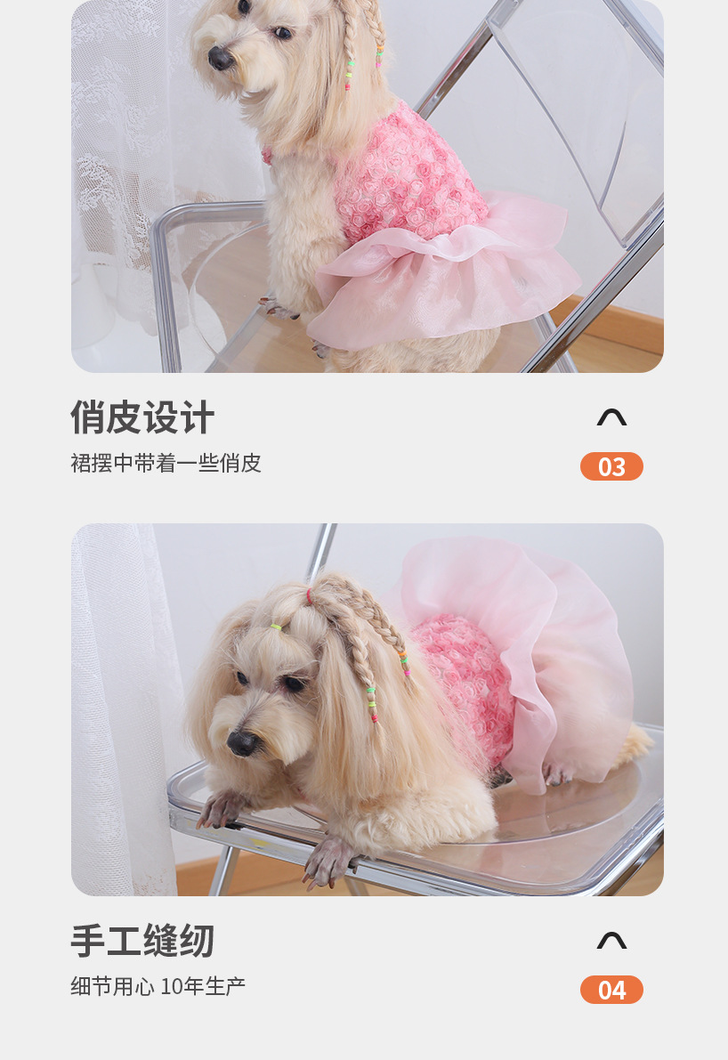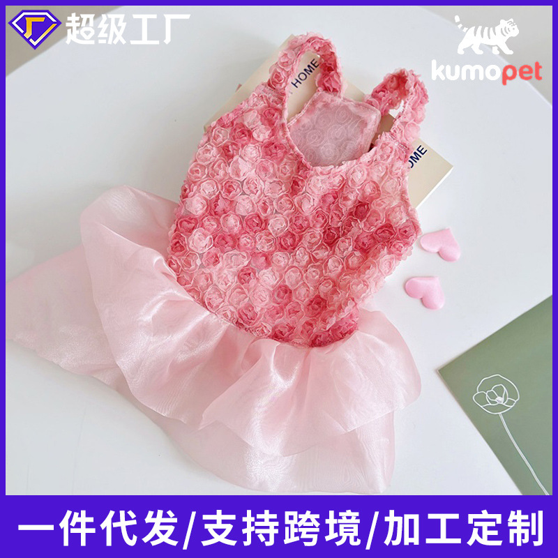 고양이와 강아지 모두를 위한 그라데이션 입체 작은 장미 케이크 드레스, 피부 친화적이고 사계절 파티 착용에 적합, 귀여운 사슴 디자인스토어 가기