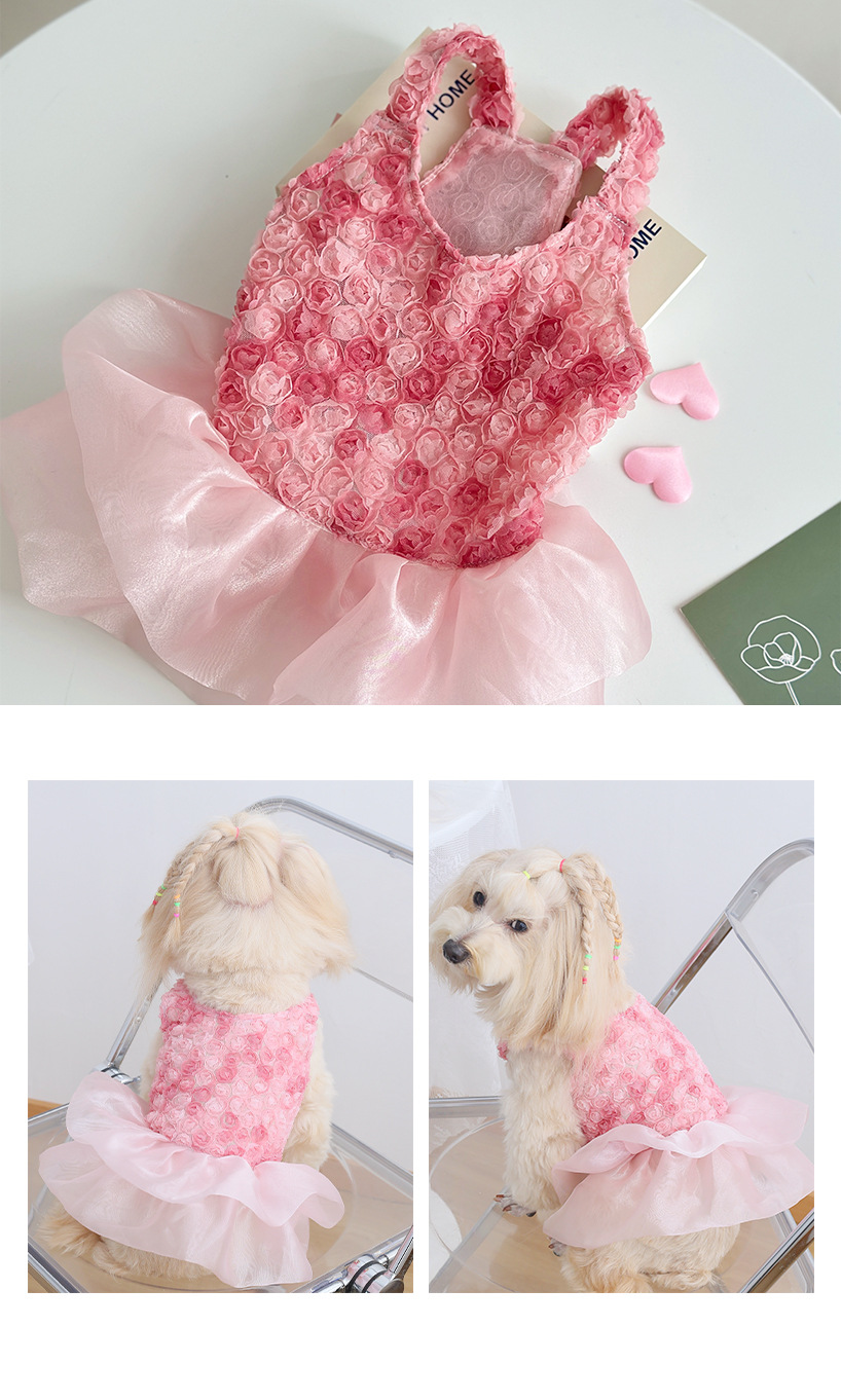 고양이와 강아지 모두를 위한 그라데이션 입체 작은 장미 케이크 드레스, 피부 친화적이고 사계절 파티 착용에 적합, 귀여운 사슴 디자인