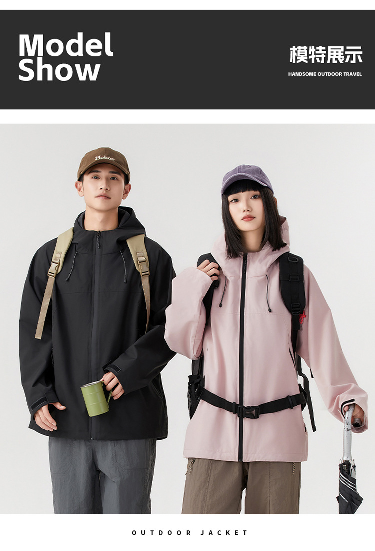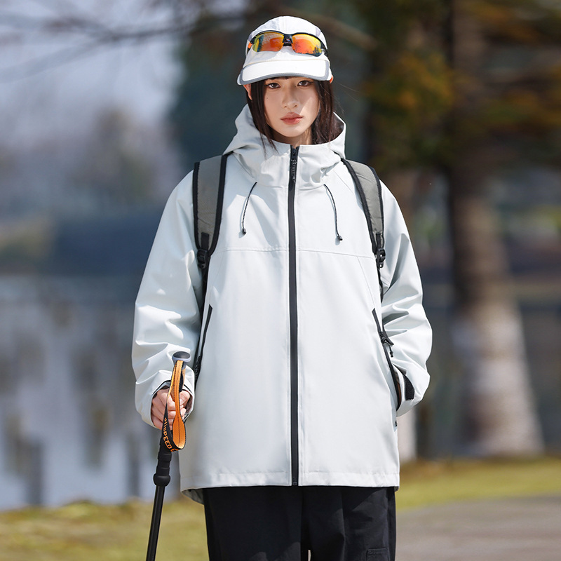 2024 새로운 도착 봄 재킷 남자 야외 커플 싱글 레이어 재킷 방수 방수 하이킹 세트 여성용 경량 재킷