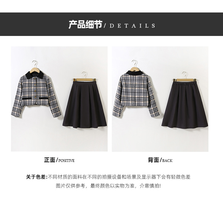 24 가을 겨울 새로운 소녀 패션 투피스 세트 두꺼운 모직 코트 높은 허리 주름 치마 작은 샤넬 스타일 세트스토어 가기