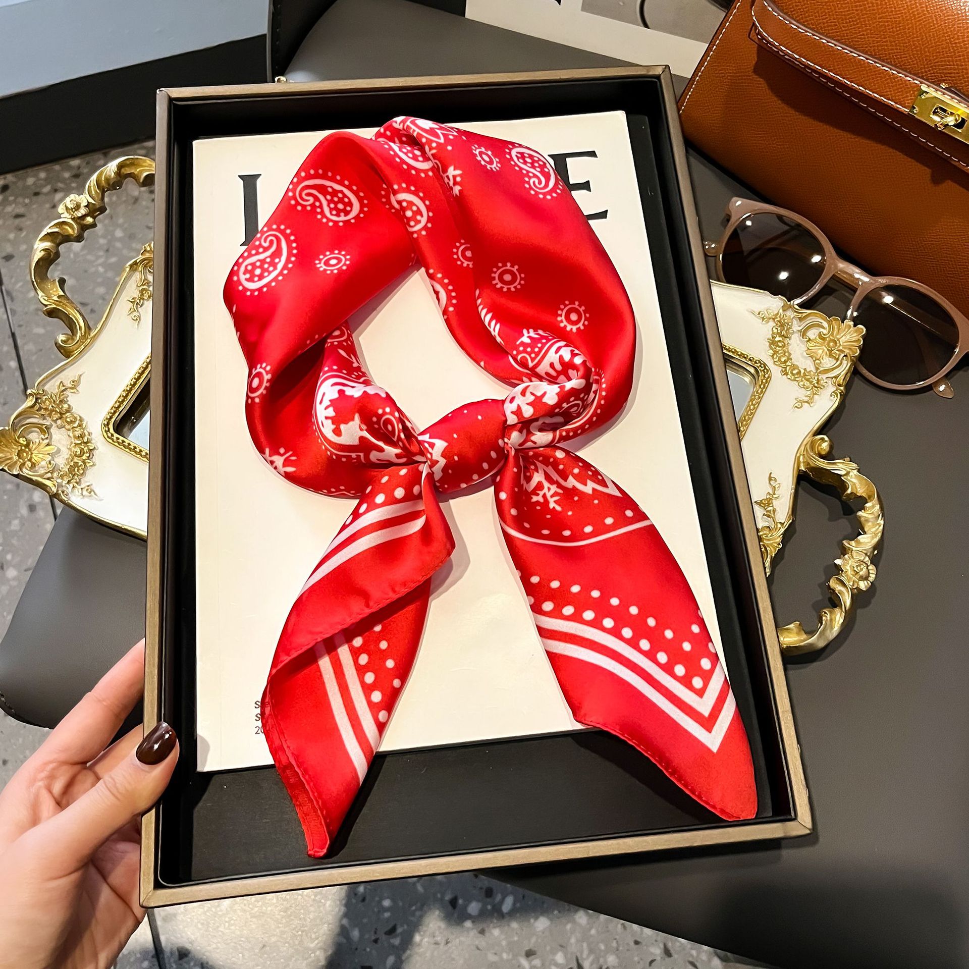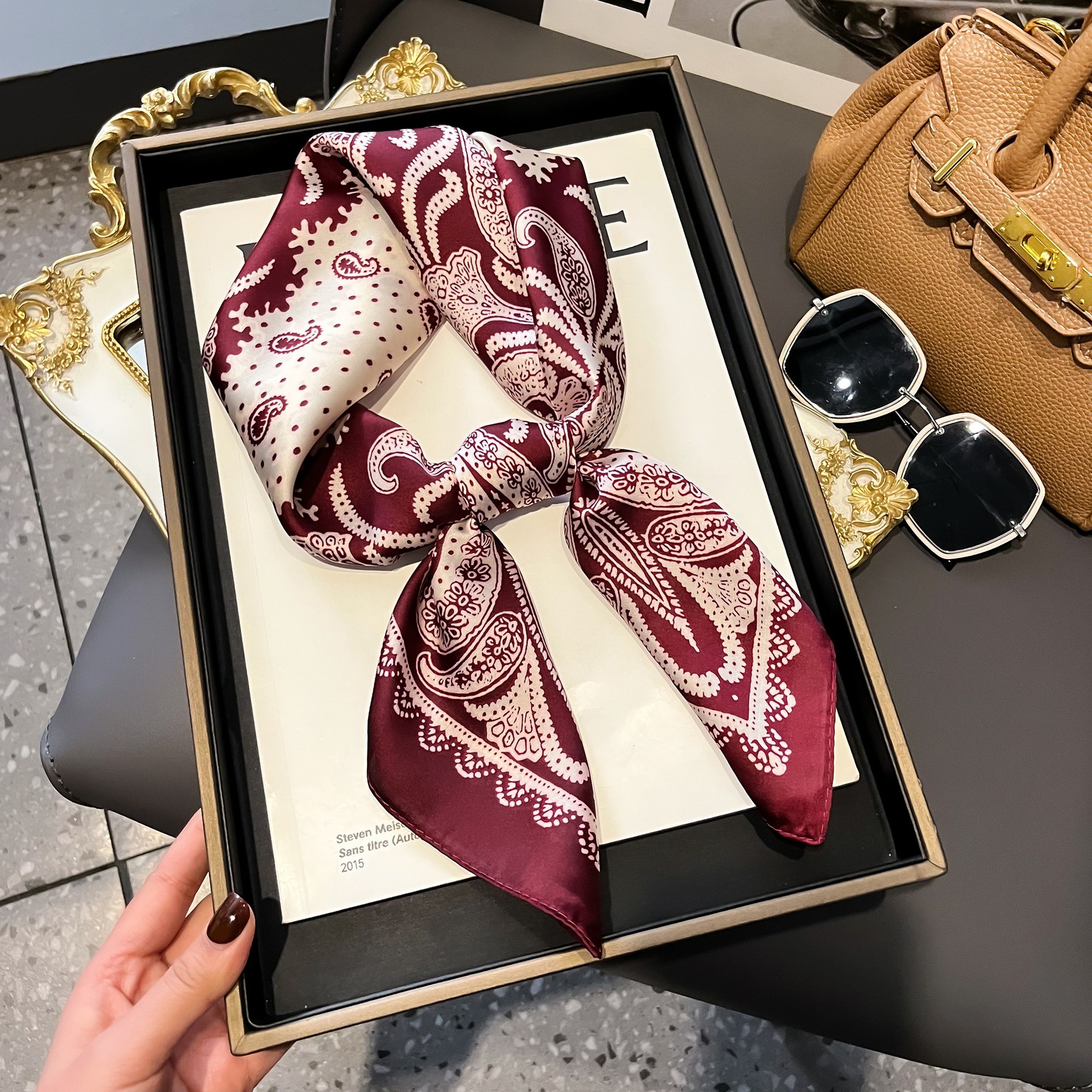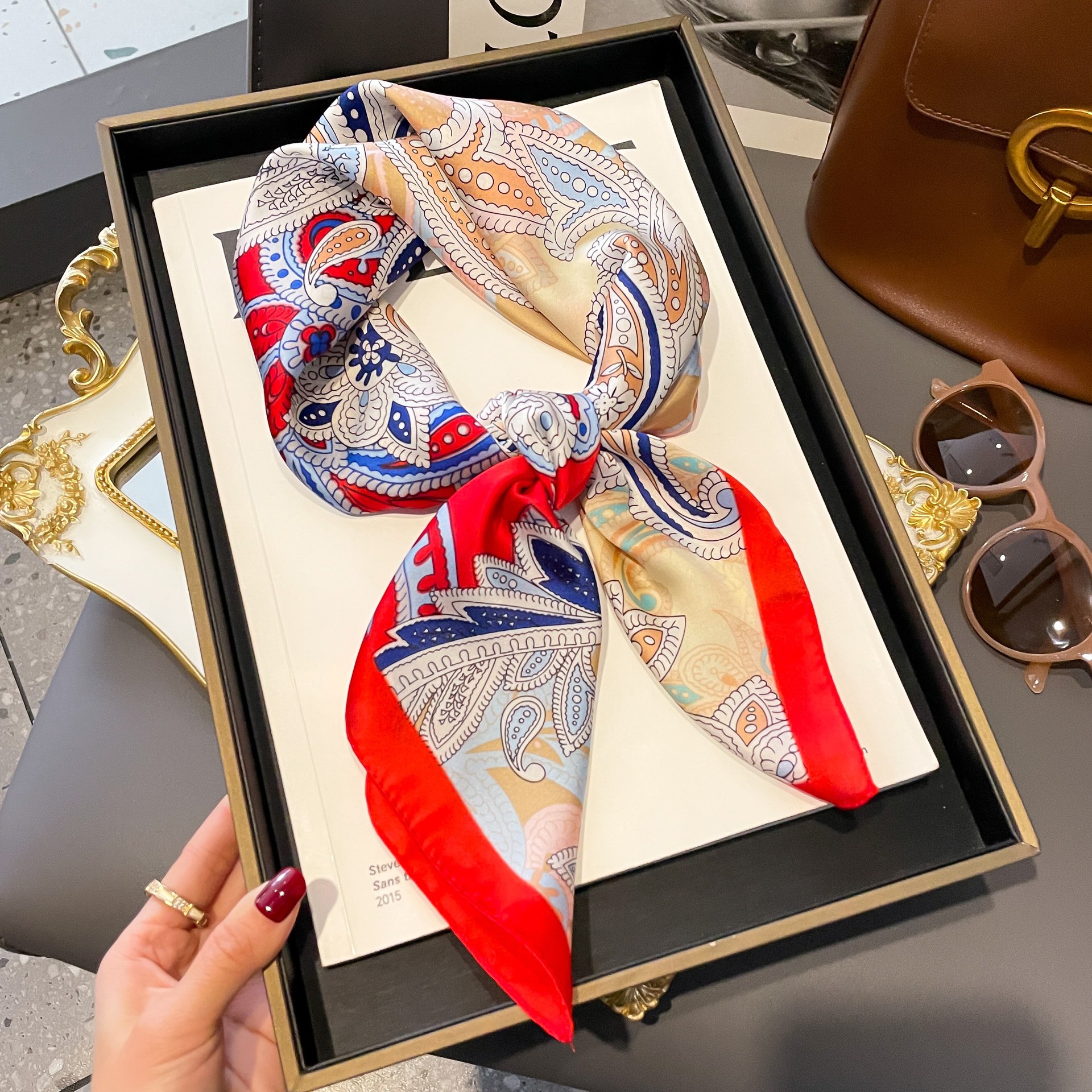 프랑스 복고풍 실크 스카프 숙녀 캐슈 너트 패션 조커 작은 사각형 스카프 아트 리본 스카프 높은 감각 스카프 도매