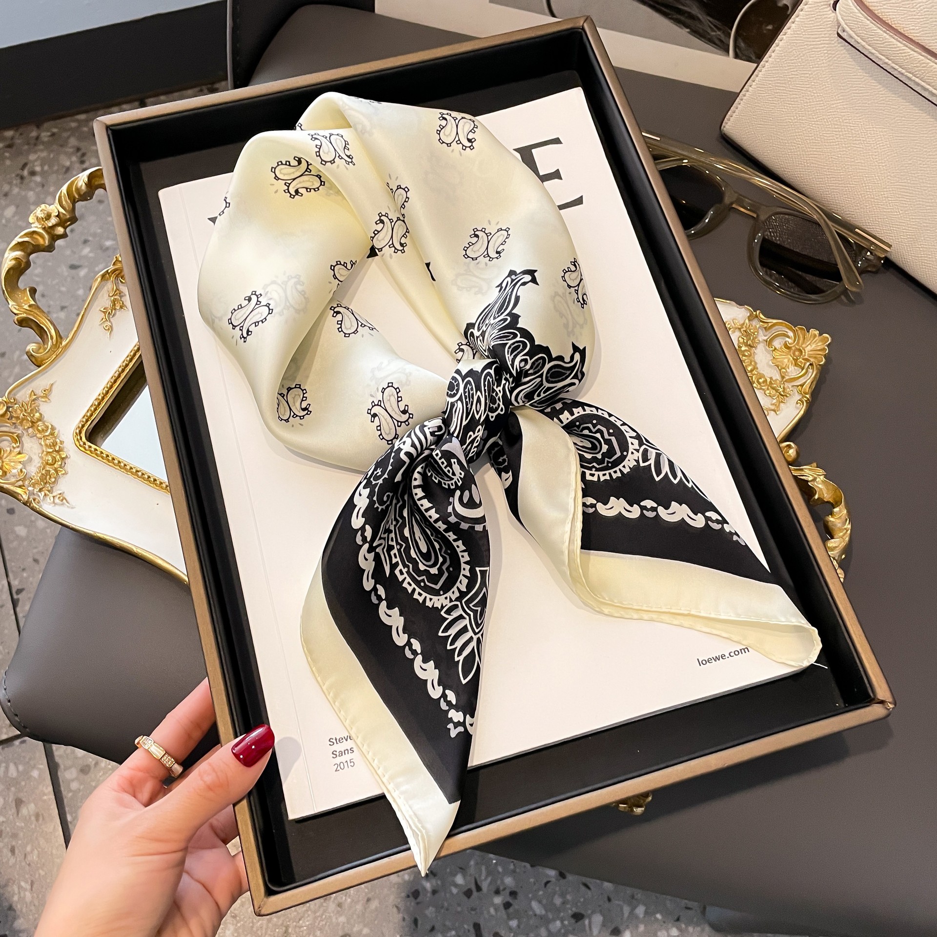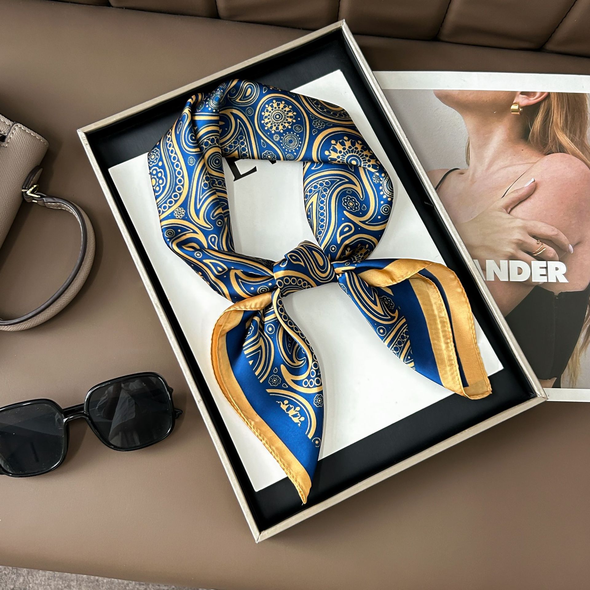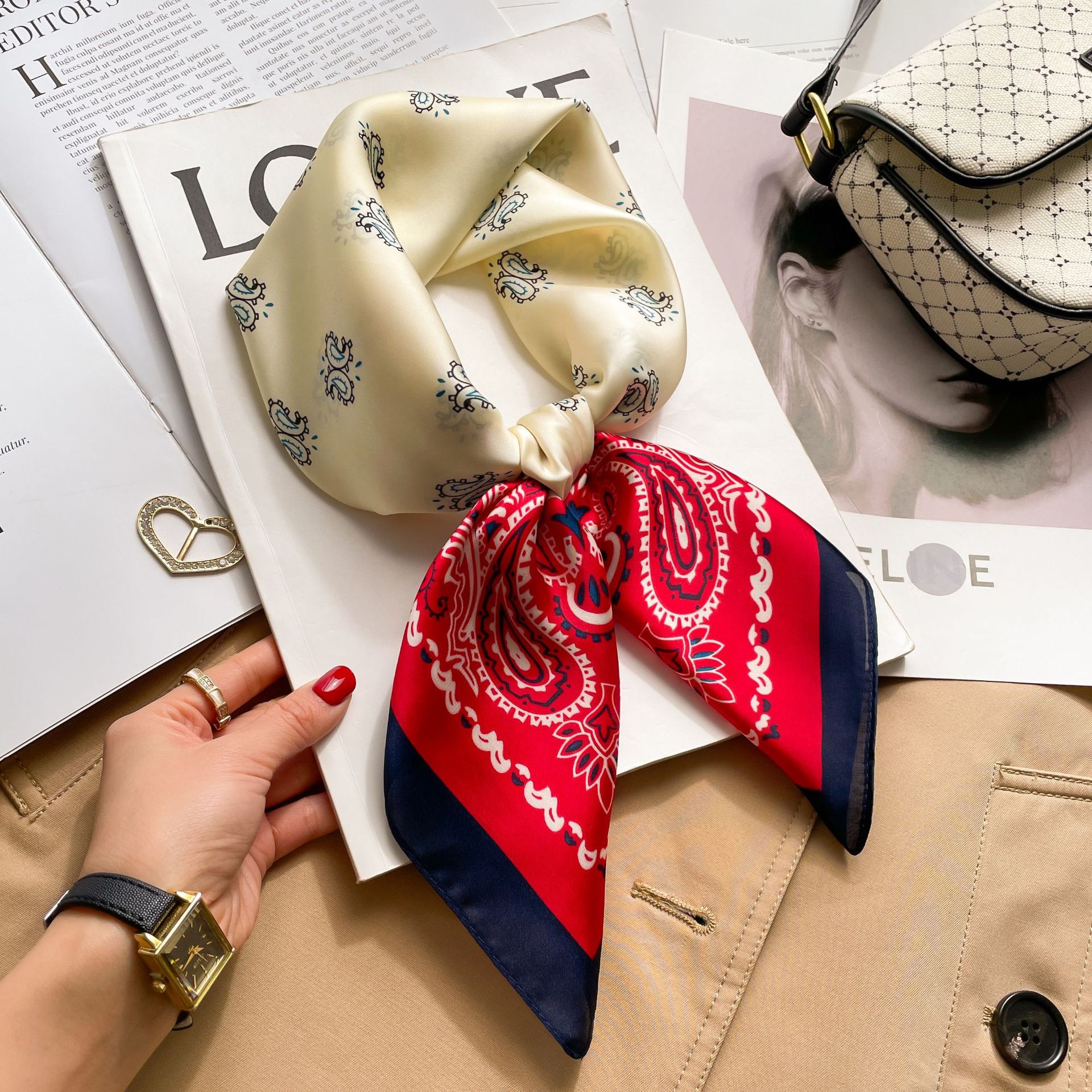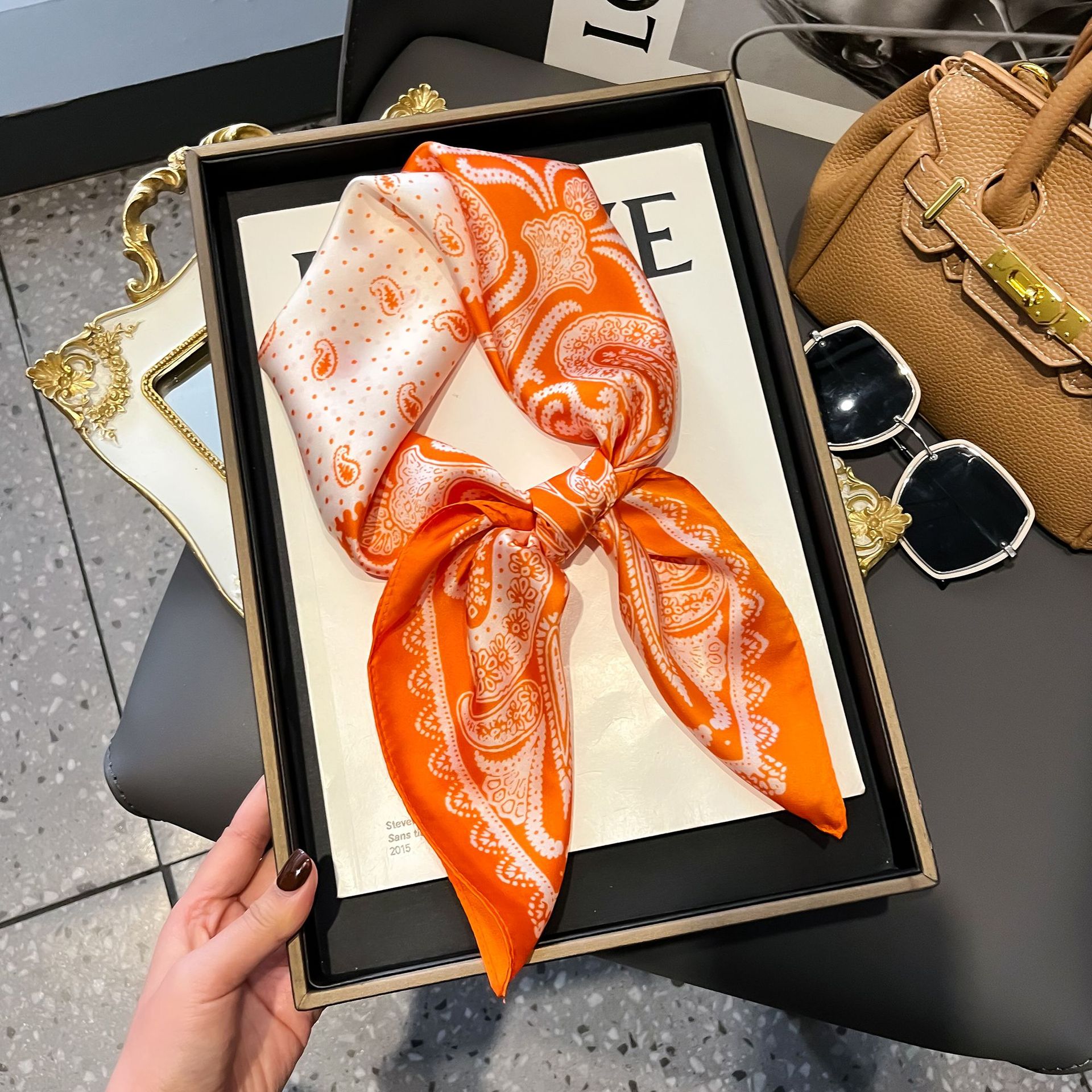 프랑스 복고풍 실크 스카프 숙녀 캐슈 너트 패션 조커 작은 사각형 스카프 아트 리본 스카프 높은 감각 스카프 도매