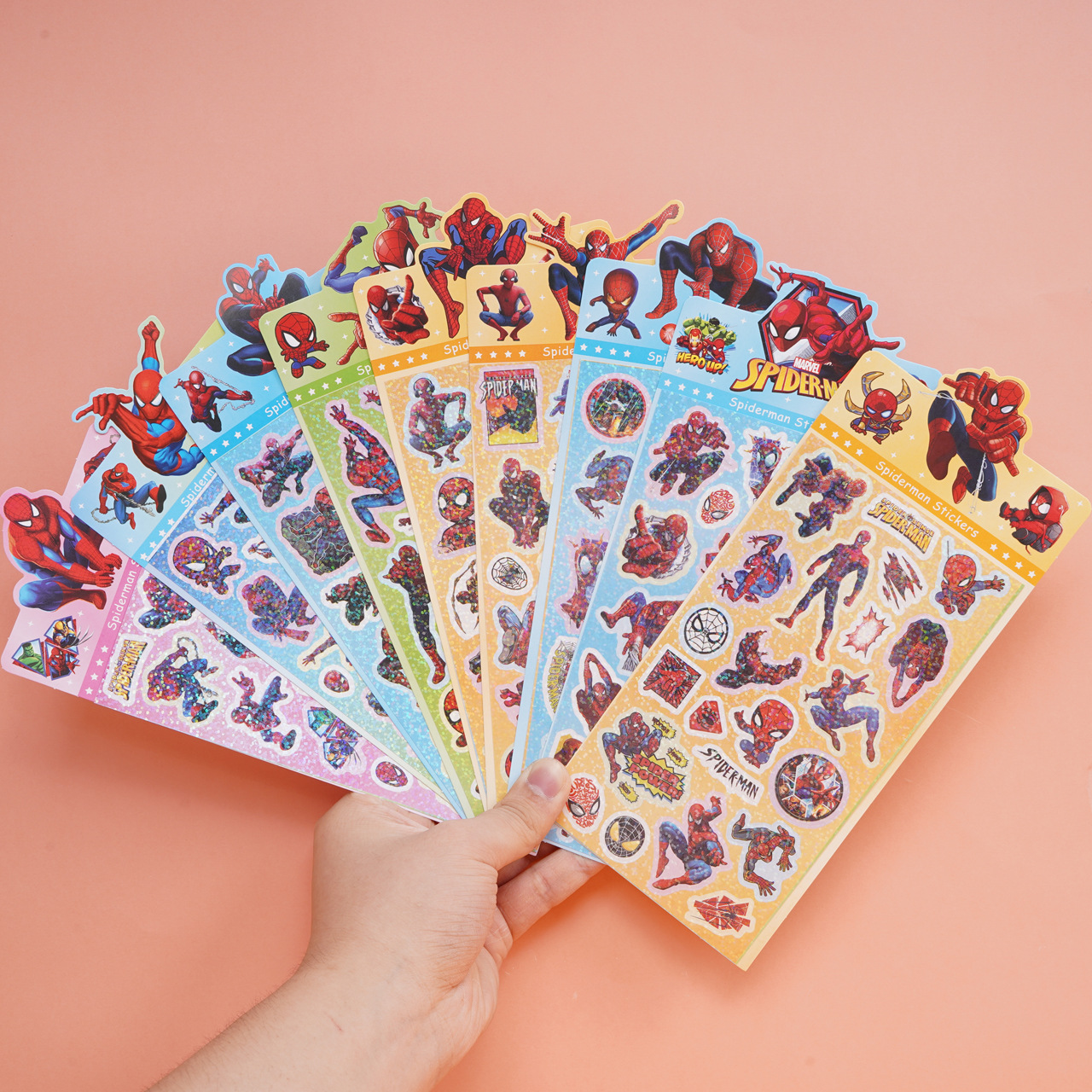 스파이더 맨 레이저 스티커 종이 웹 유명 인사 새로운 높은 색상 가치 Ins 만화 창조적 인 장식 학생 및 어린이를위한 페이스트스토어 가기