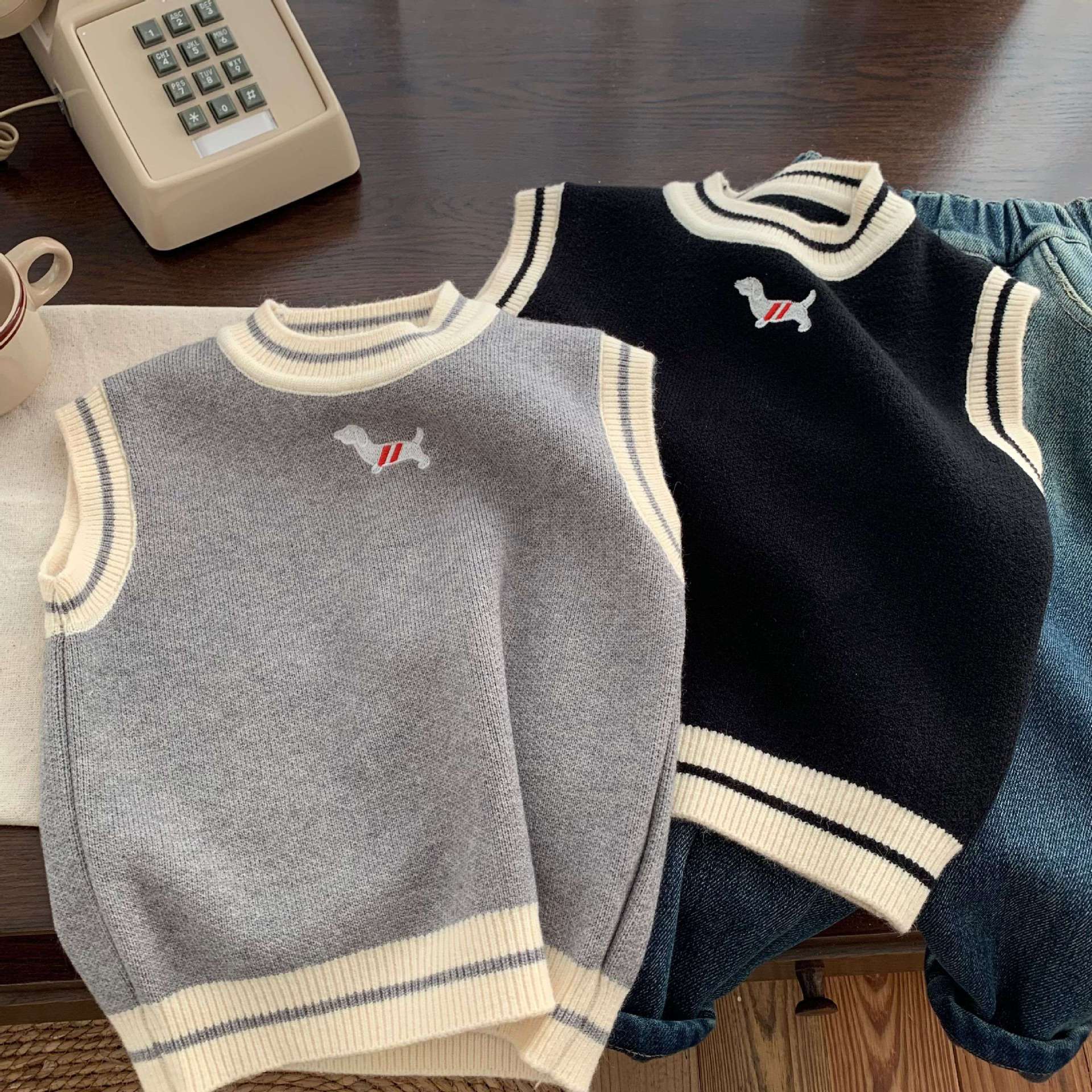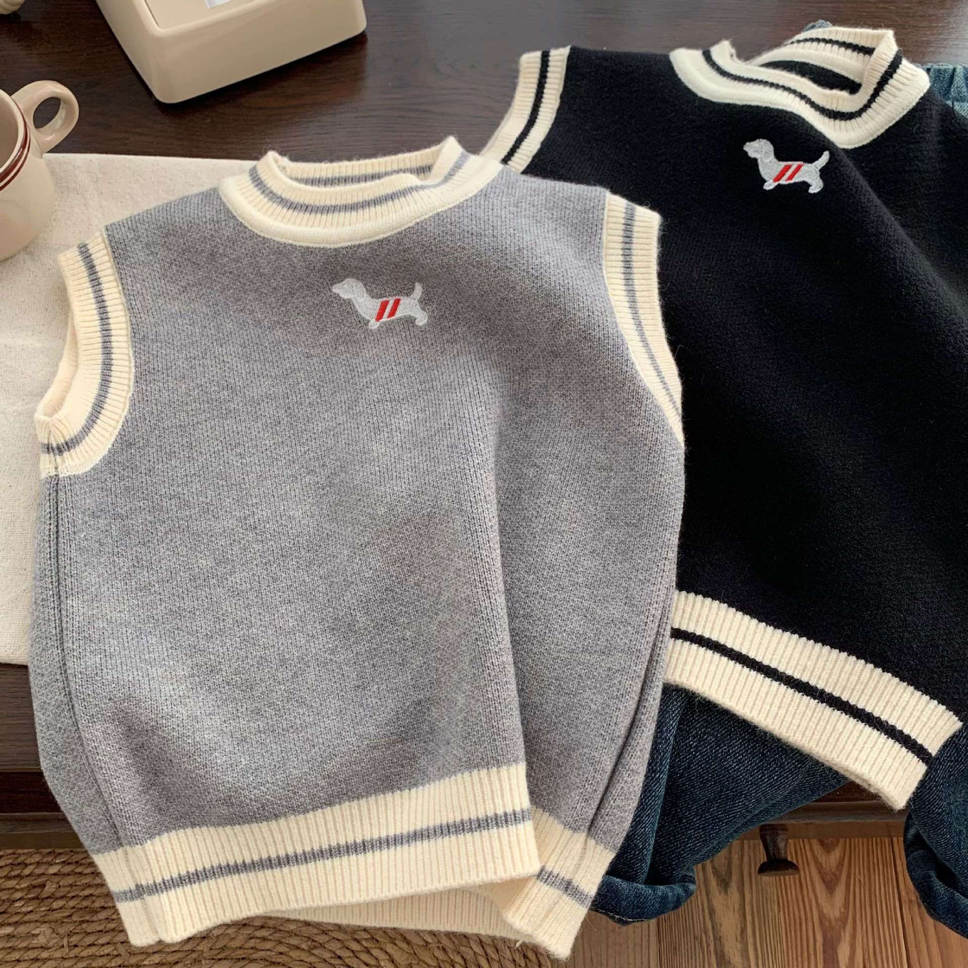 드롭쉬핑 2026년 신상 봄 가을 한국 스타일 아동복 스웨터 니트 조끼 남아 여아 조끼스토어 가기