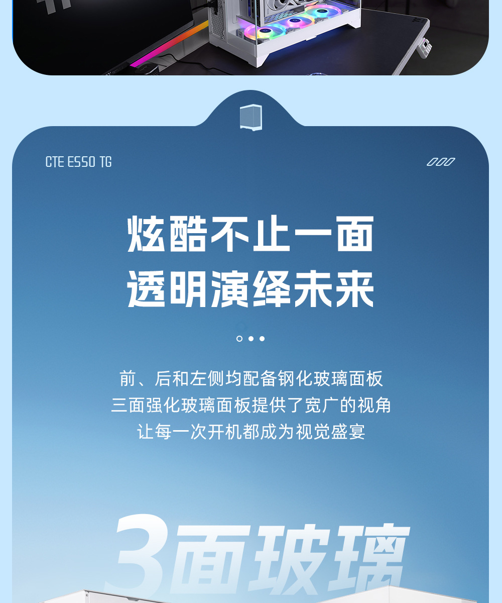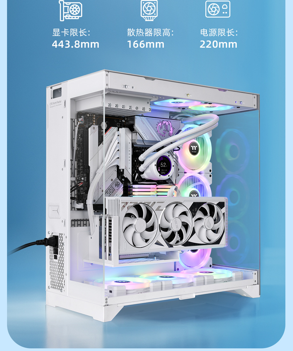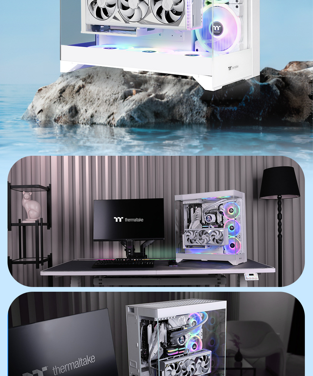 국경 간 데스크탑 컴퓨터 PC 메인 케이스 EATX 파노라마 강화 유리 바다 전망 룸 e-스포츠 게임 수냉식 섀시