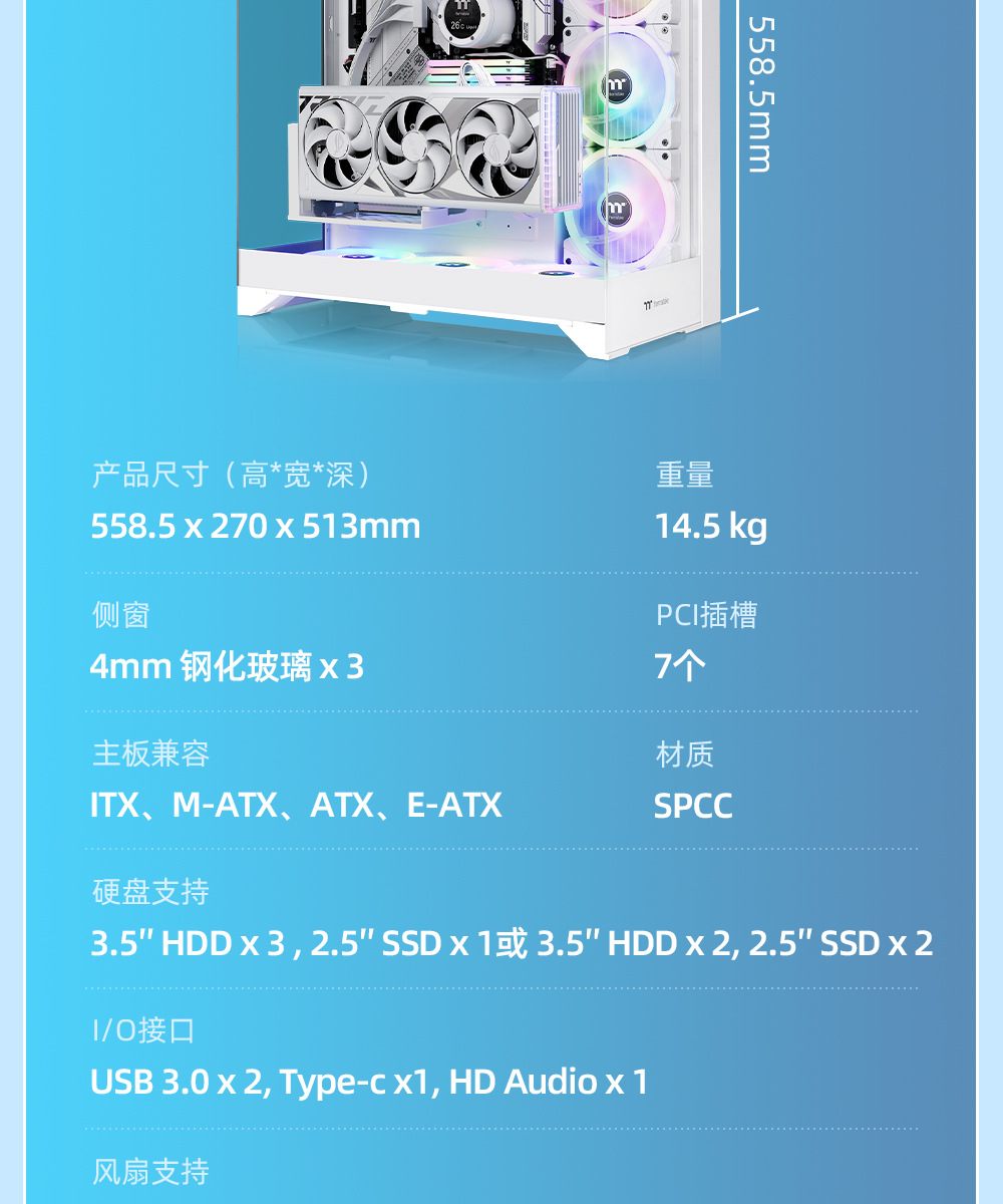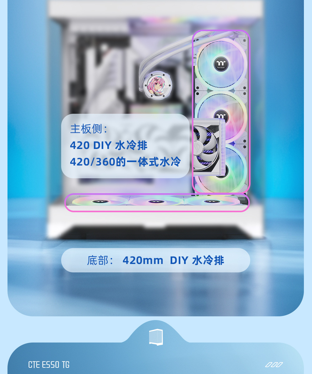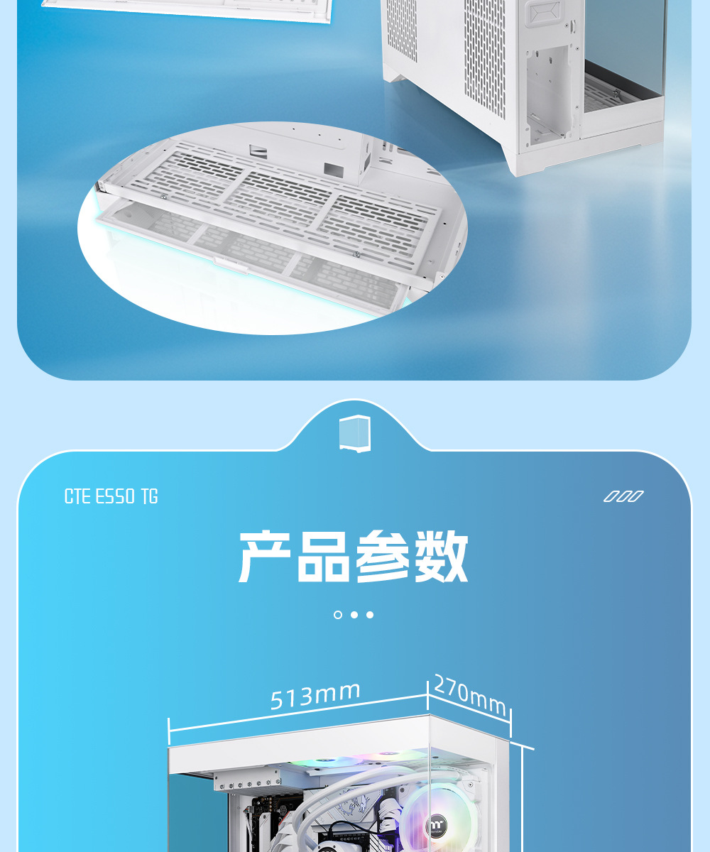 국경 간 데스크탑 컴퓨터 PC 메인 케이스 EATX 파노라마 강화 유리 바다 전망 룸 e-스포츠 게임 수냉식 섀시