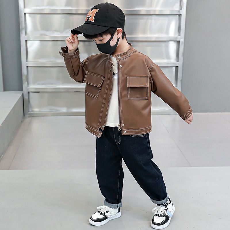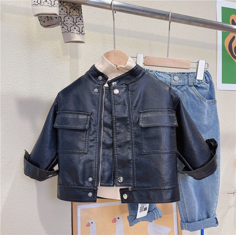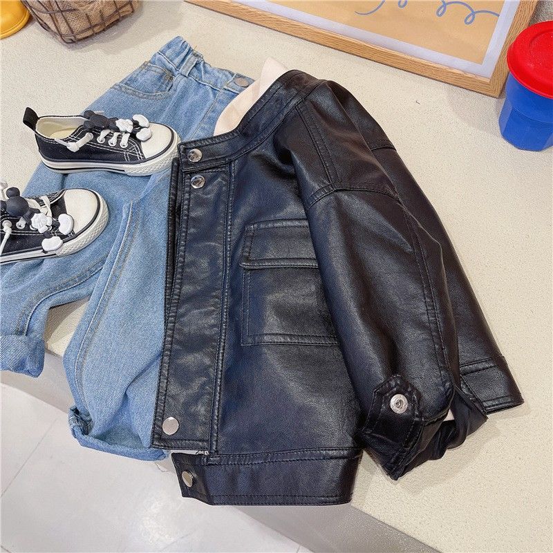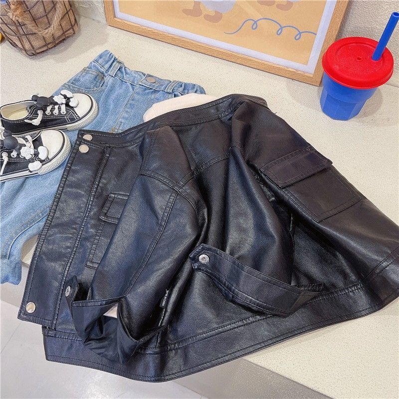 男女童皮衣外套春款帅气新款中大童宝宝韩版炸街春秋夹克上衣酷
