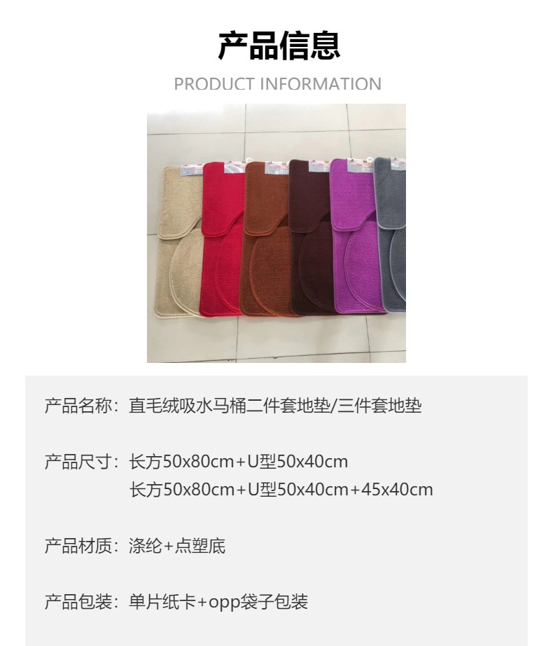 주방 미끄럼 방지 매트, 직선 플러시 카펫 바닥 매트, 욕실 단색 변기 매트, 2피스 욕실 흡수성 도어 매트