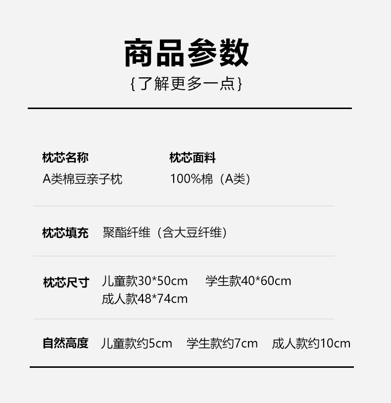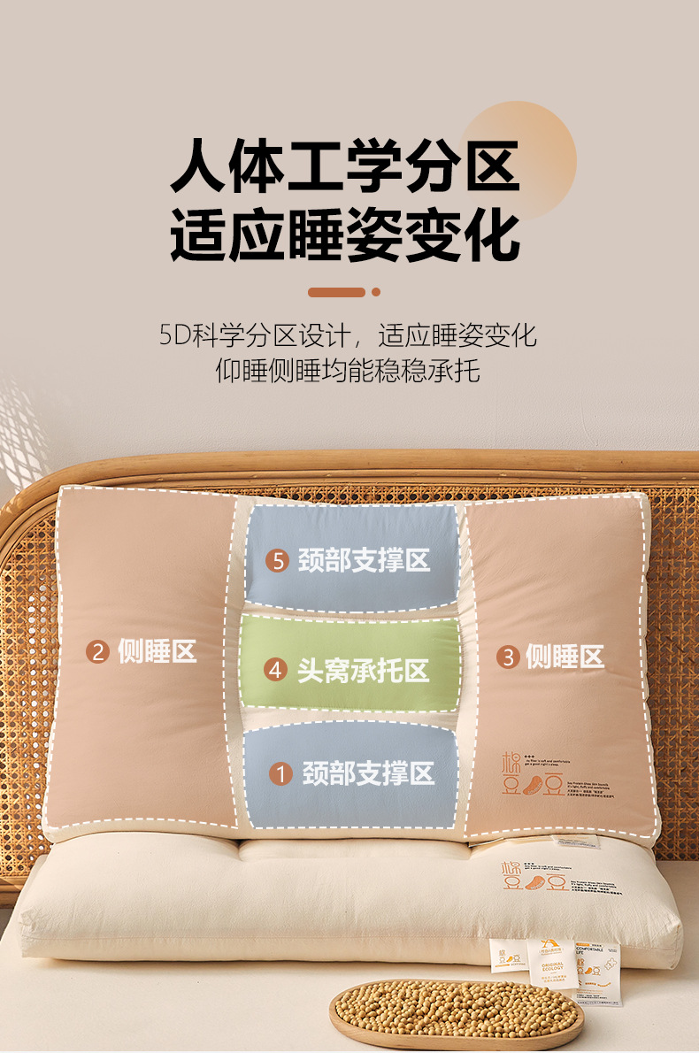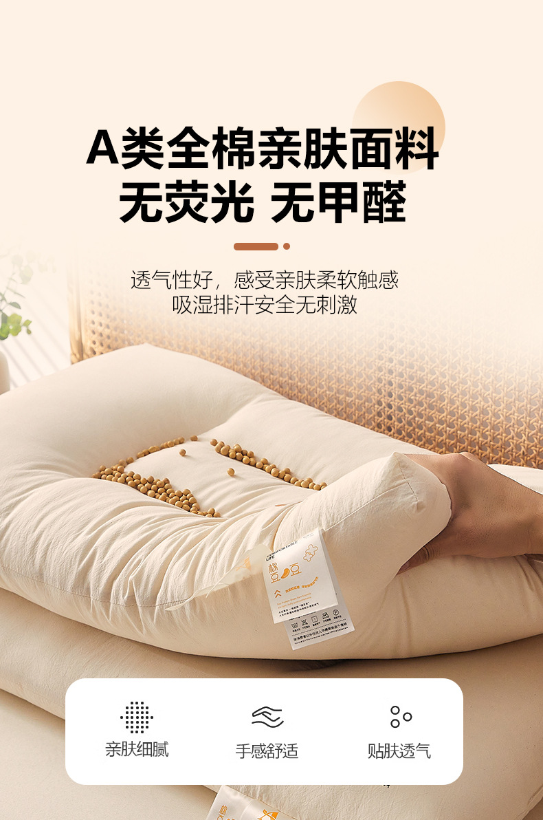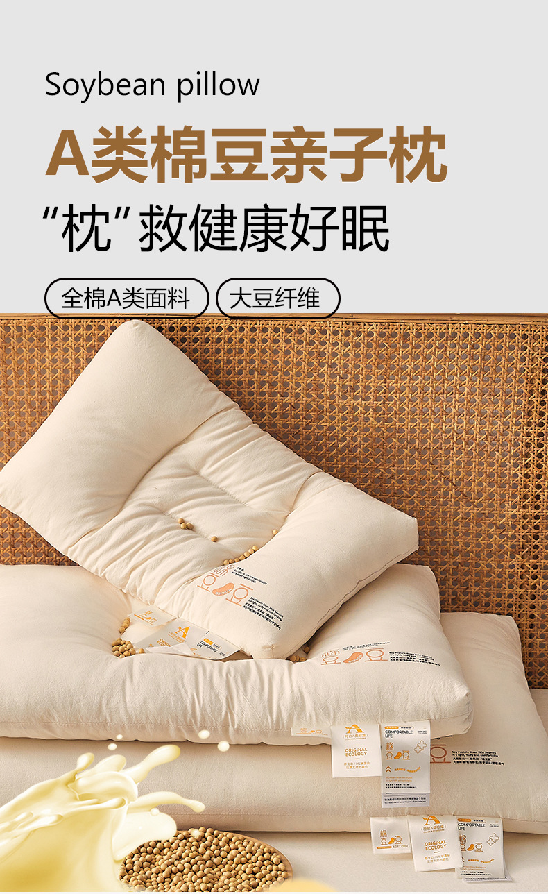 일본식 무지 클래스 코튼 콩 부모 베개 좋은 어린이 베개 학생 베개 성인 베개 단일 베개 베개 베개 핵심