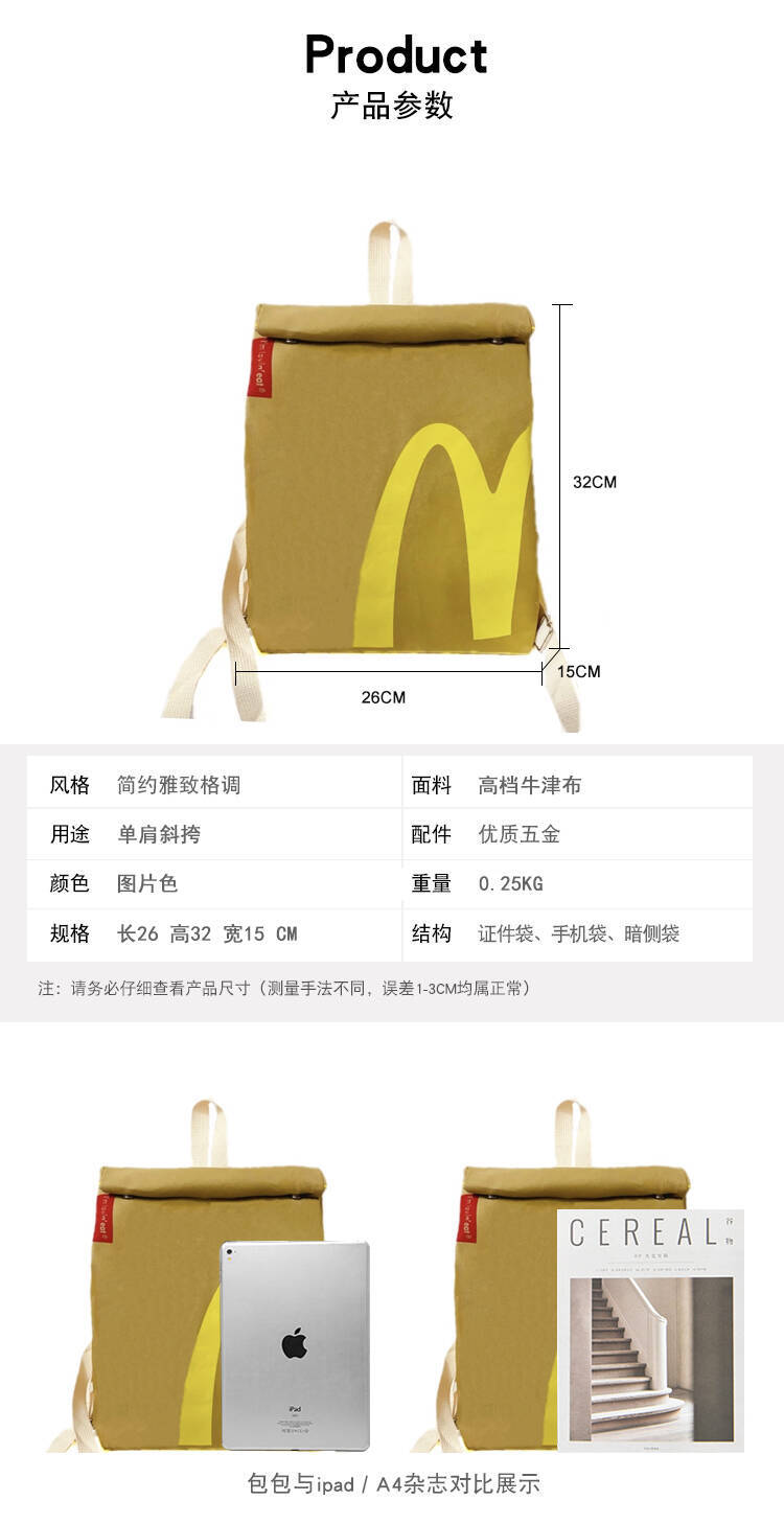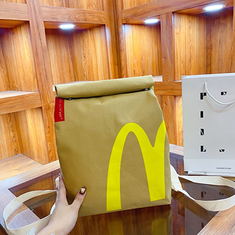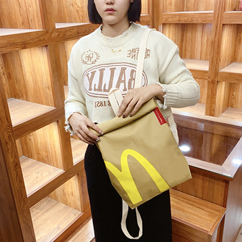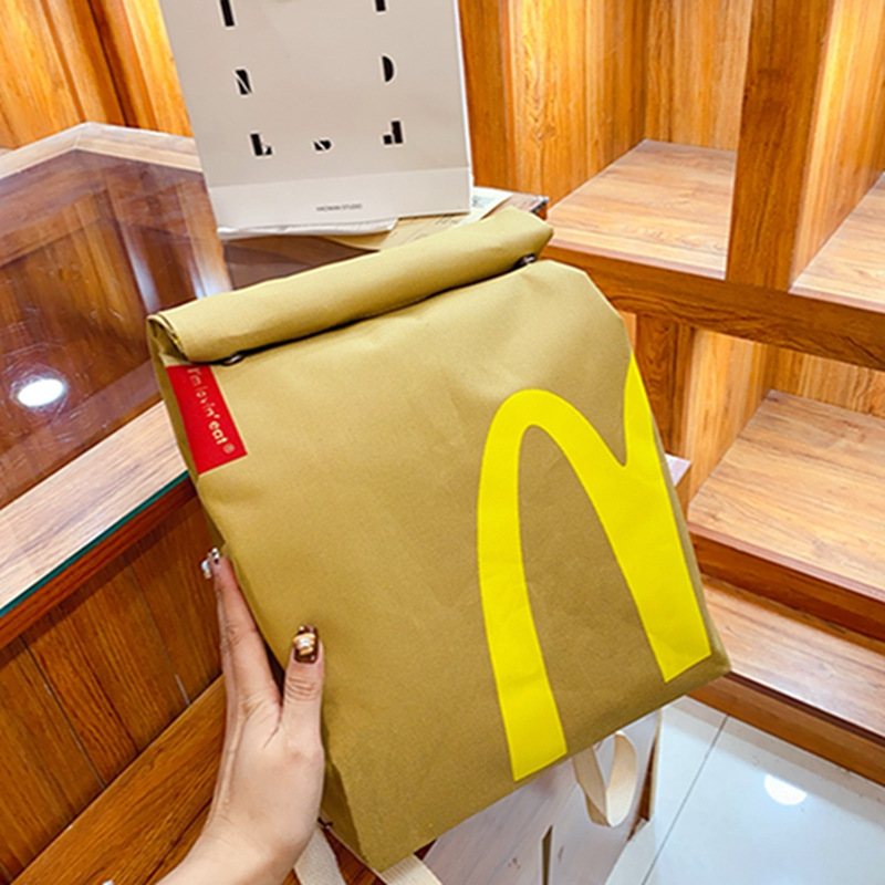 인터넷 유명 맥도날드 학교 가방 2024 새로운 종이 가방 배낭 여성 패션 어깨 가방 대용량 가방 학생 클래스 가방