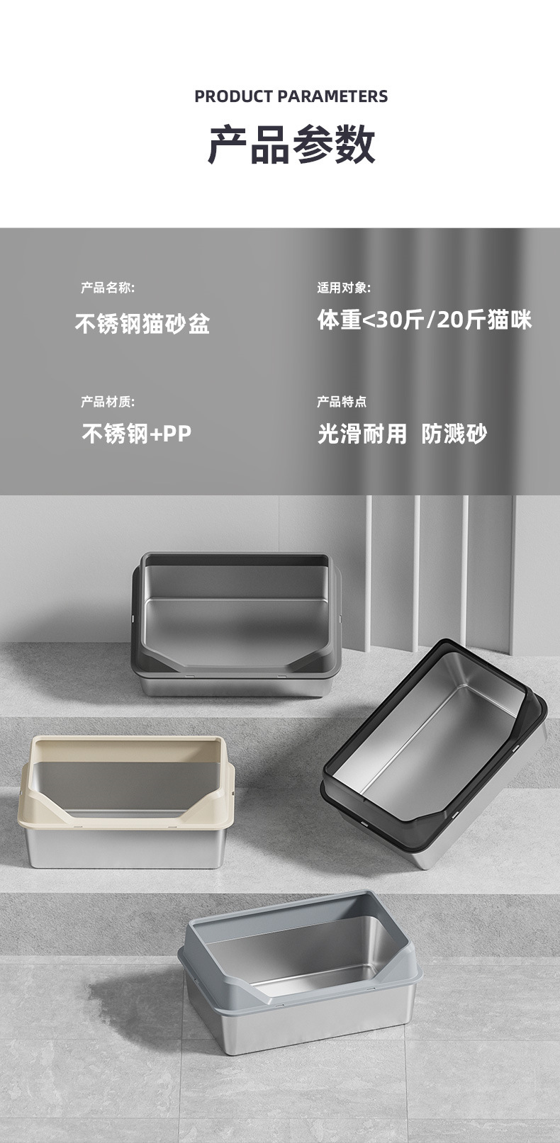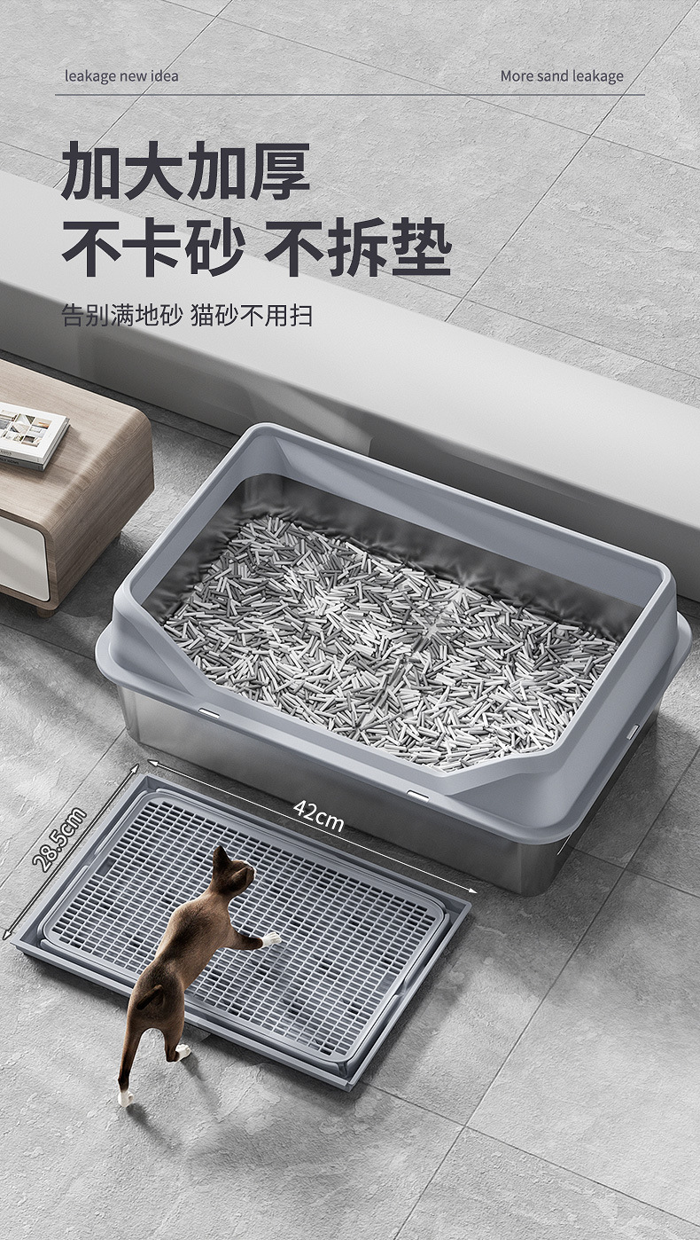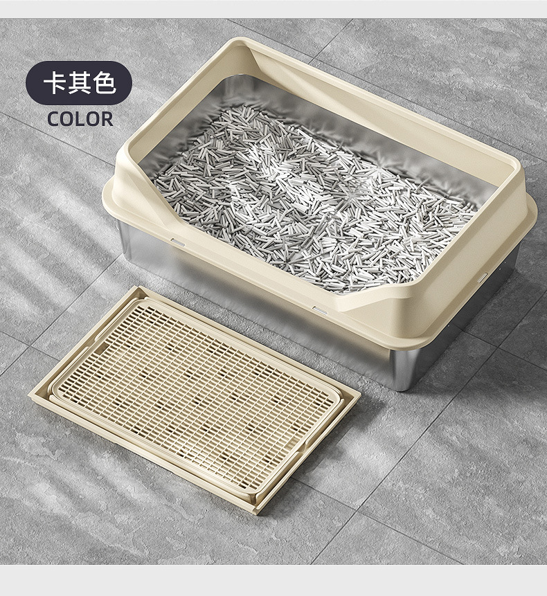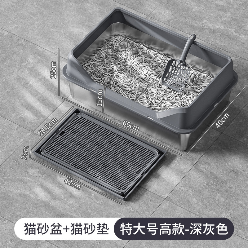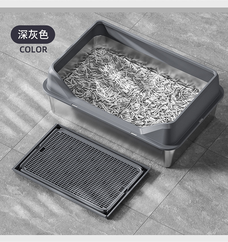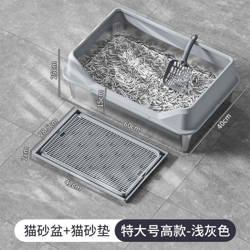 국경 간 스테인레스 스틸 고양이 쓰레기 상자 누출 방지 모래 페달 오픈 스플래시 누출 방지 소변 고양이 화장실 애완 동물 용품