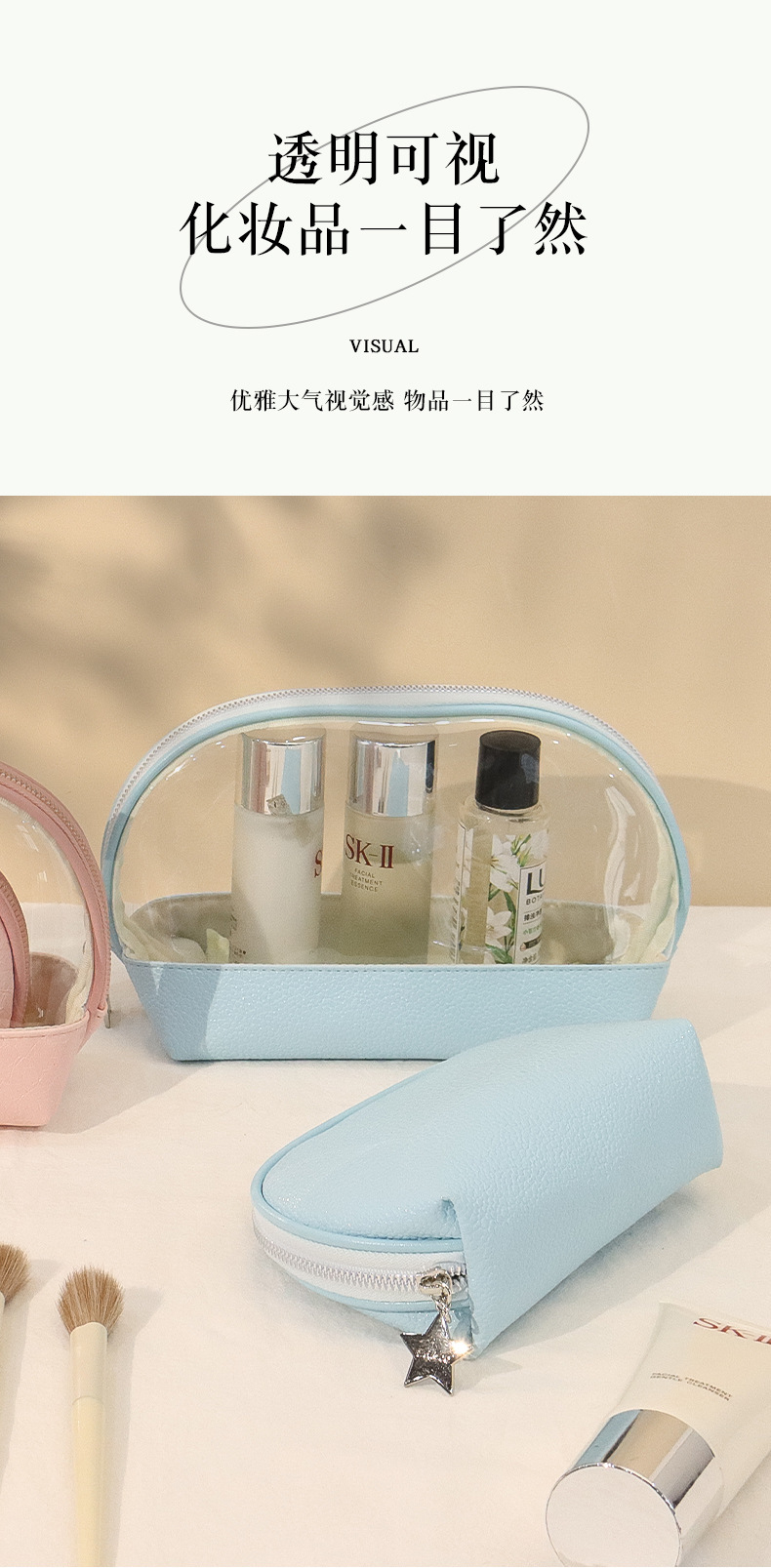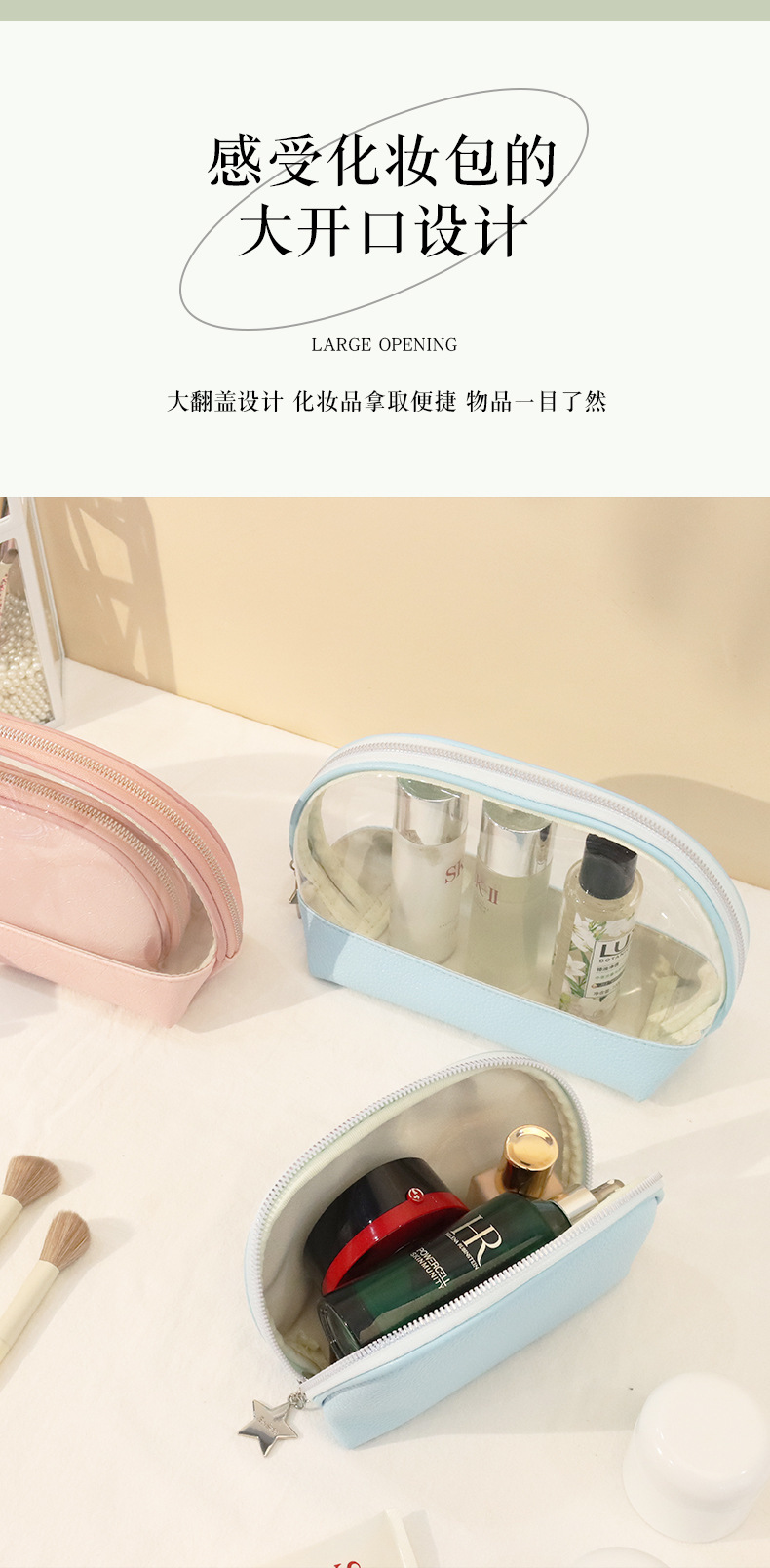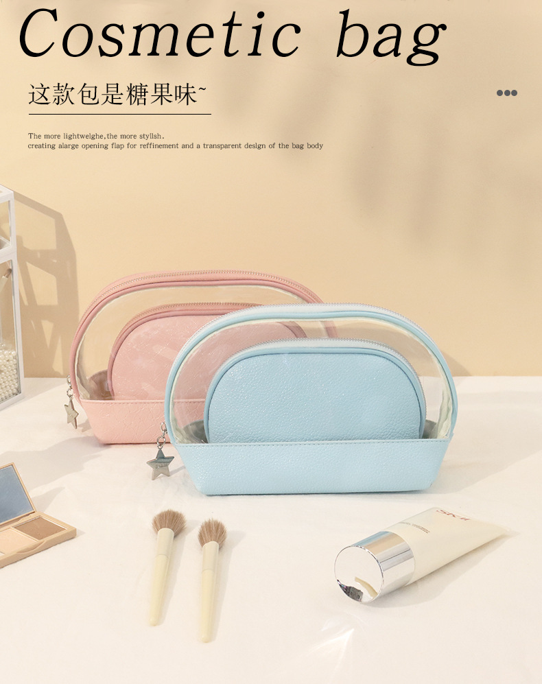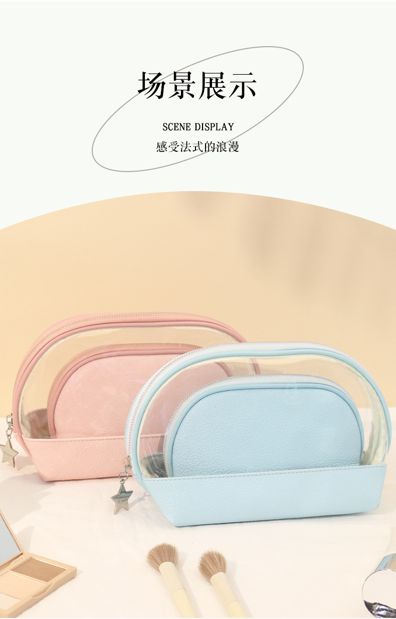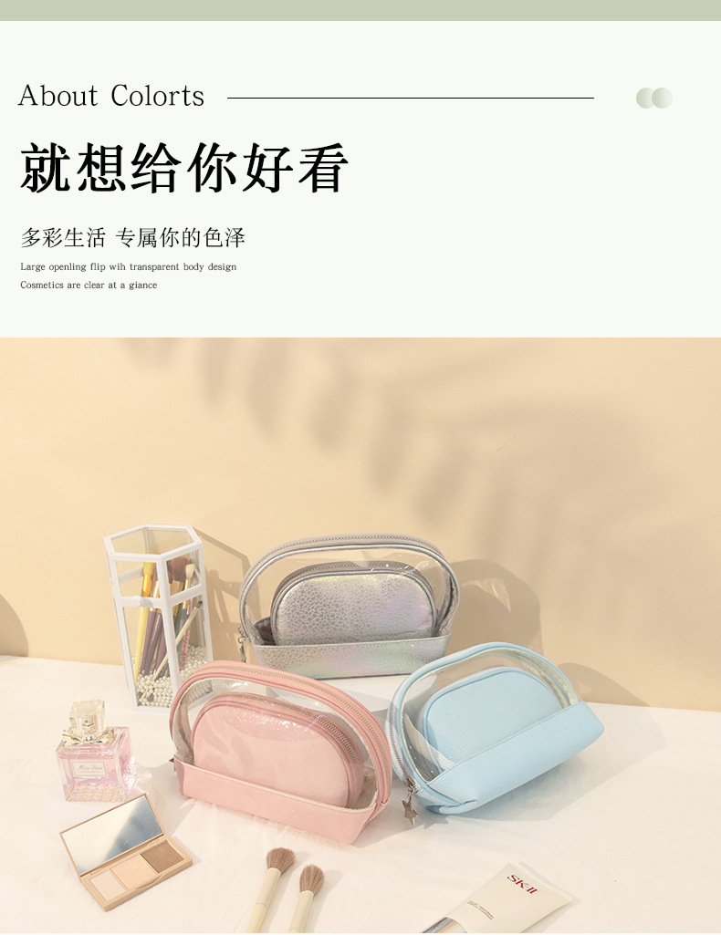 반원형 PVC 투피스 투명 화장품 가방, 대용량 여행용 휴대용 세면도구 가방, 소녀용 화장품 보관 가방스토어 가기