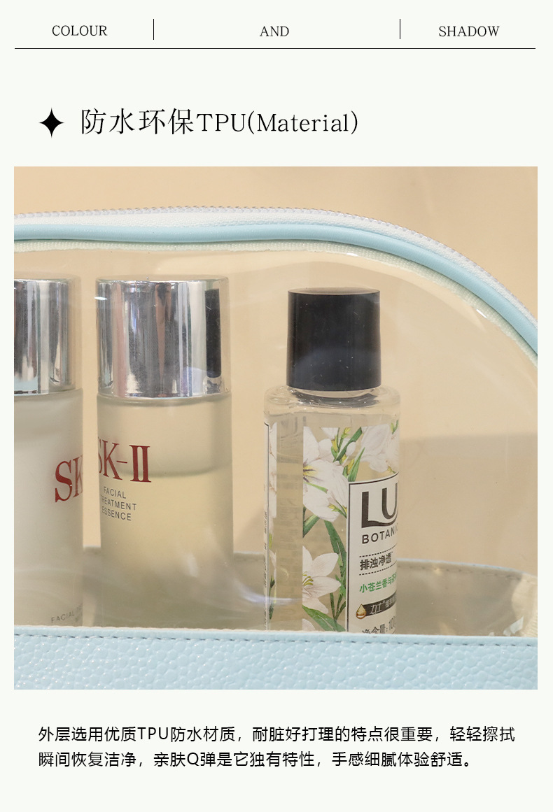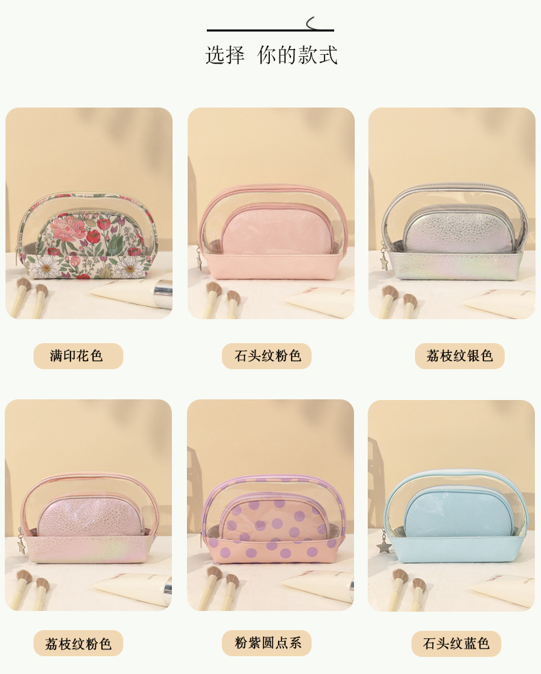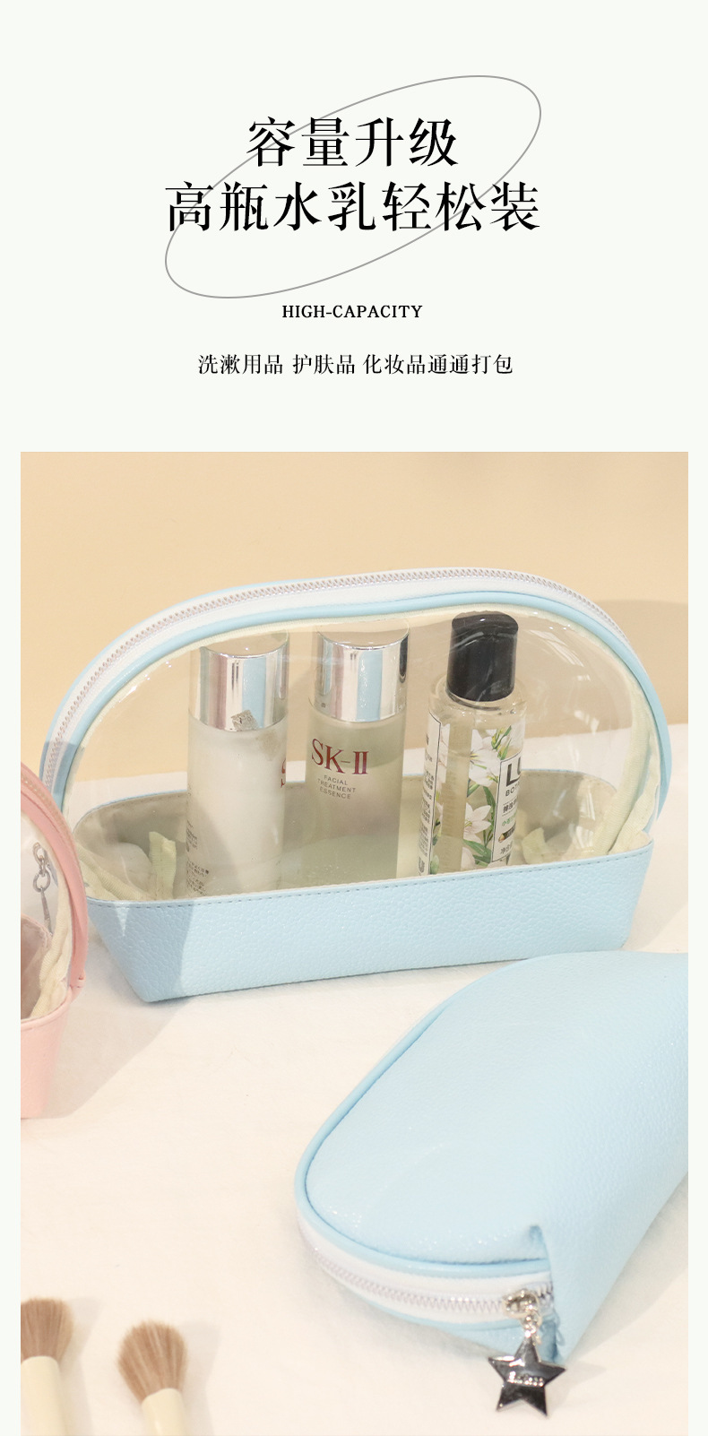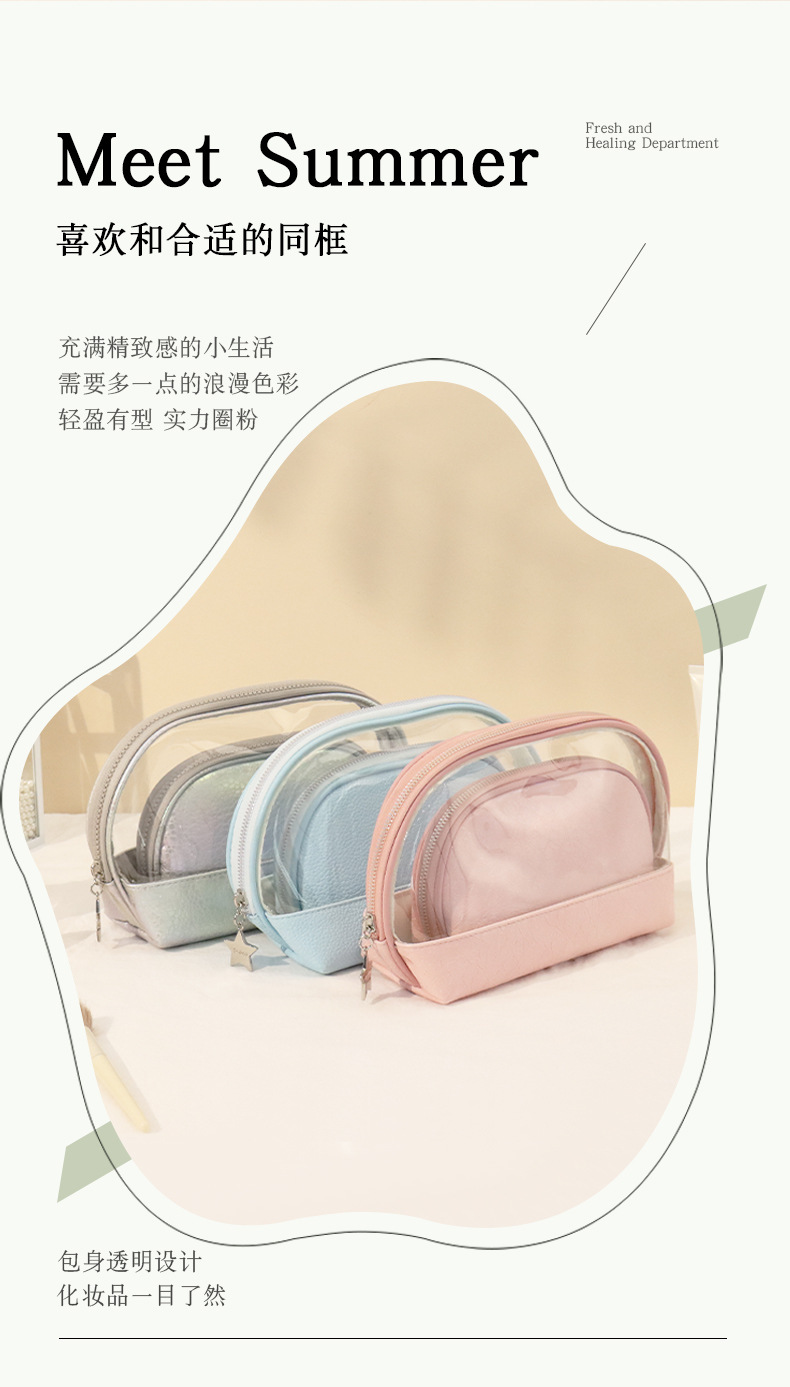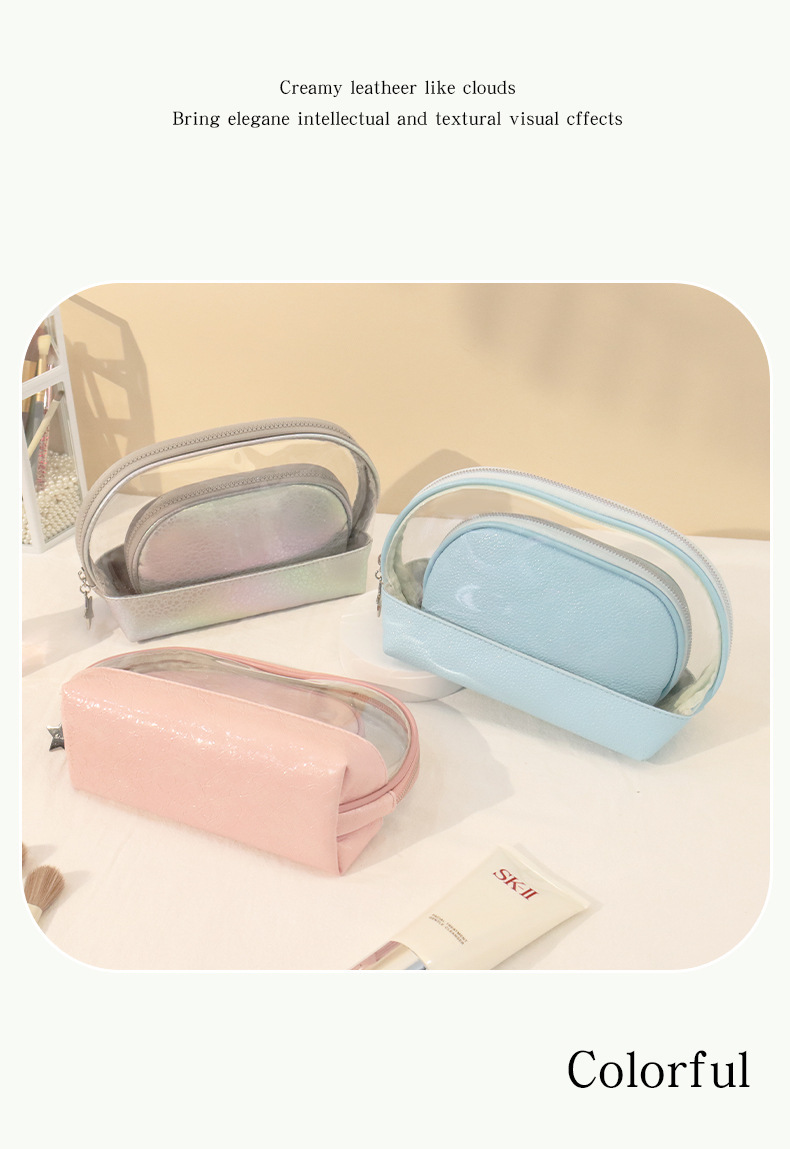 반원형 PVC 투피스 투명 화장품 가방, 대용량 여행용 휴대용 세면도구 가방, 소녀용 화장품 보관 가방스토어 가기