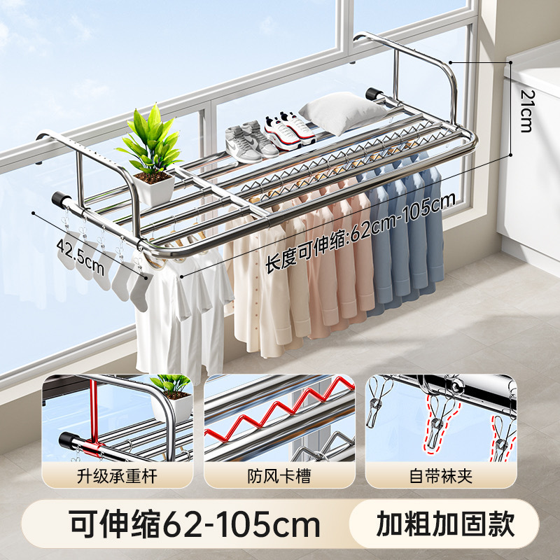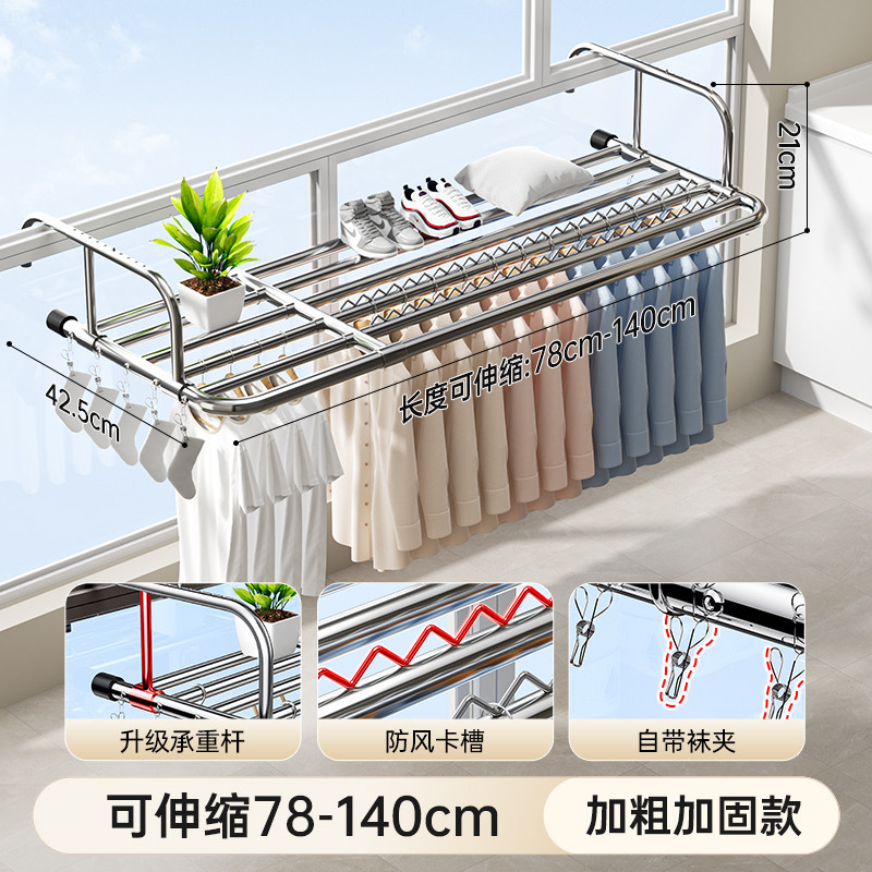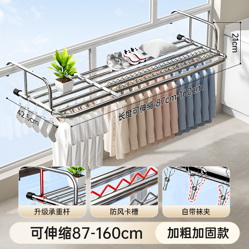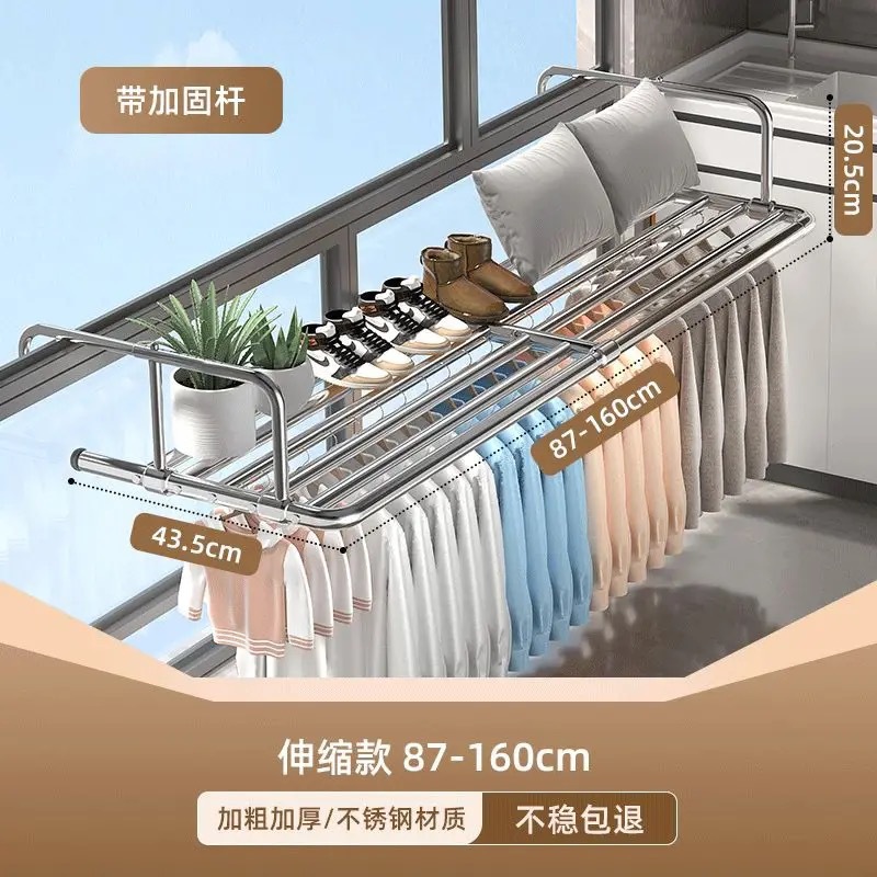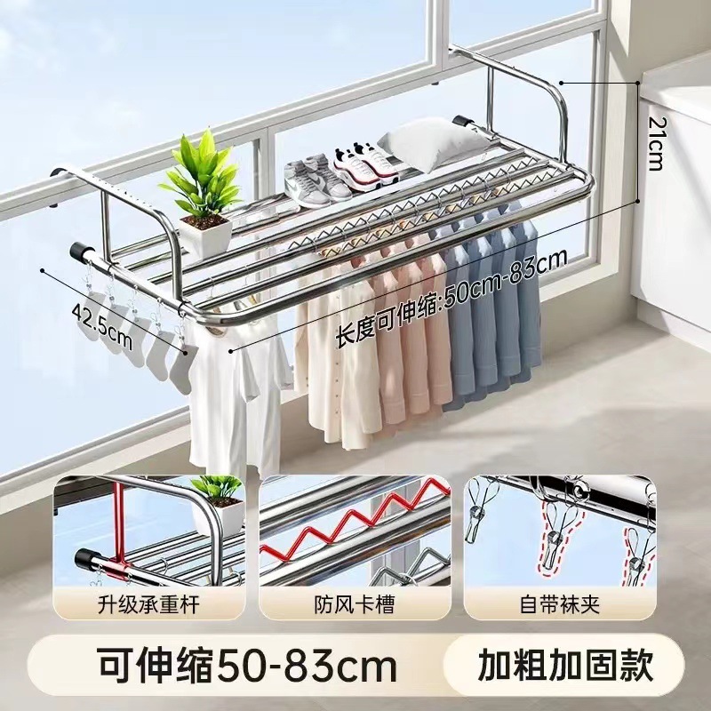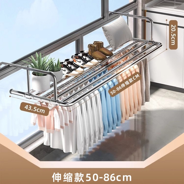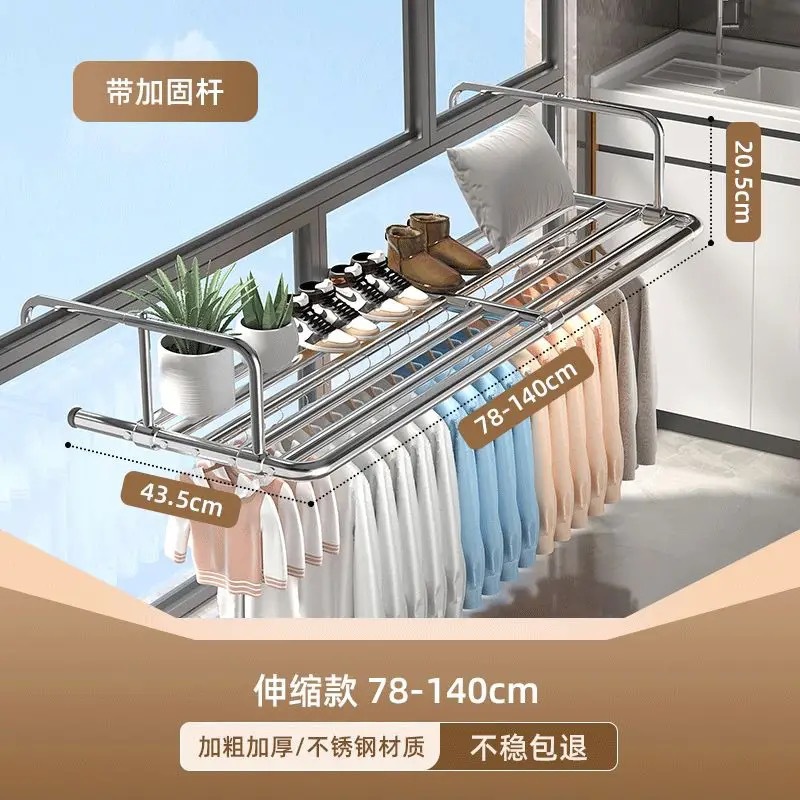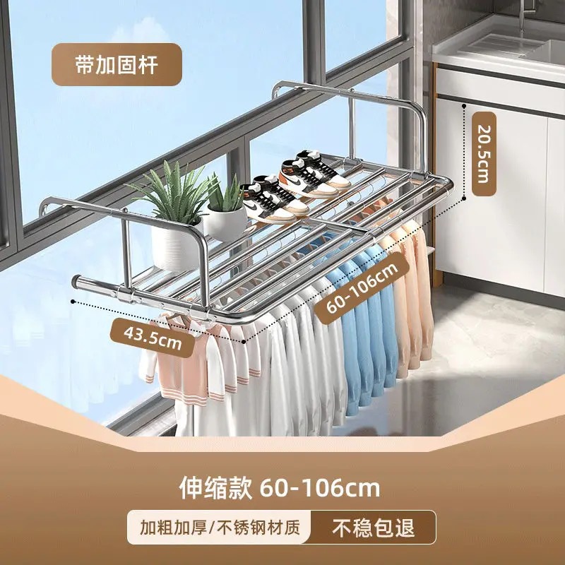 스테인레스 스틸 창 발코니 신발 랙 도난 방지 창틀 매달린 버클 의류 랙 접히는 망원경 건조 랙