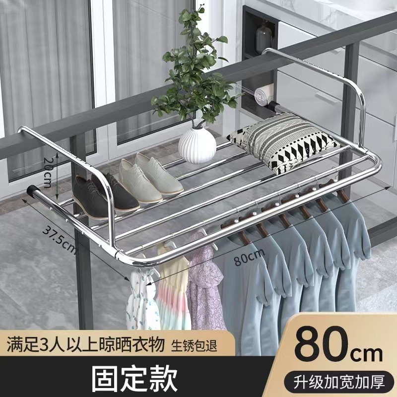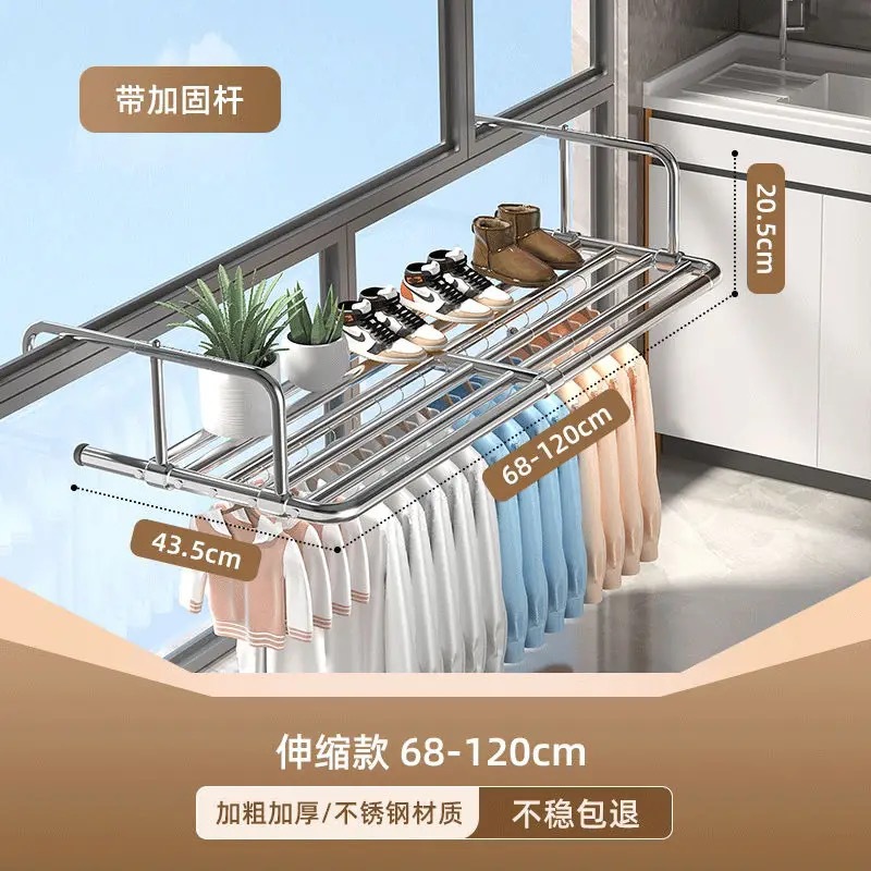 스테인레스 스틸 창 발코니 신발 랙 도난 방지 창틀 매달린 버클 의류 랙 접히는 망원경 건조 랙스토어 가기