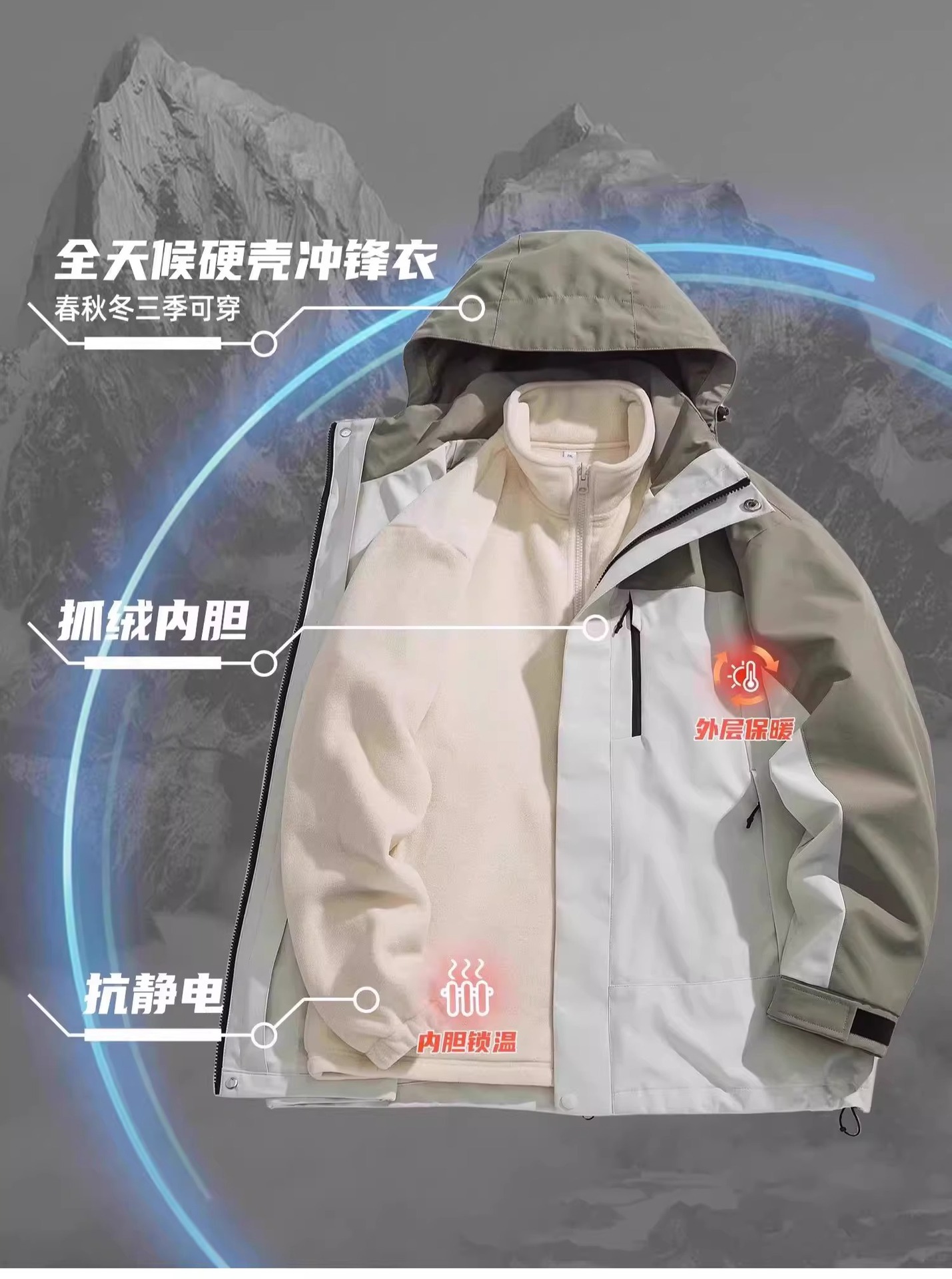 카멜 HJCAMEL 충전 재킷 남자의 봄과 가을 새로운 2024 3 대 1 야외 캐주얼 작업 자켓스토어 가기