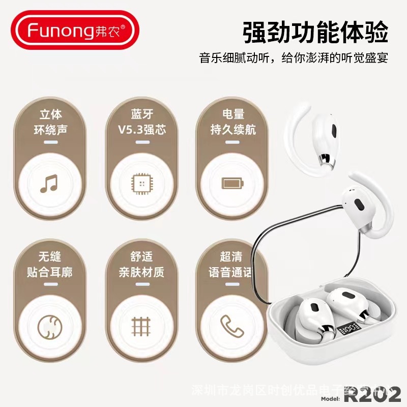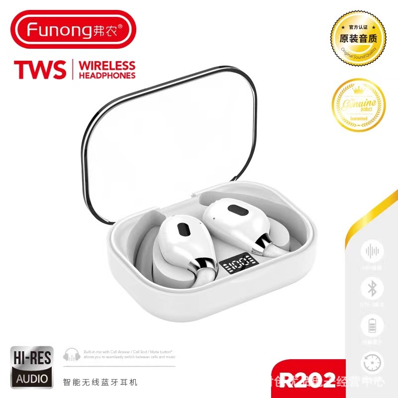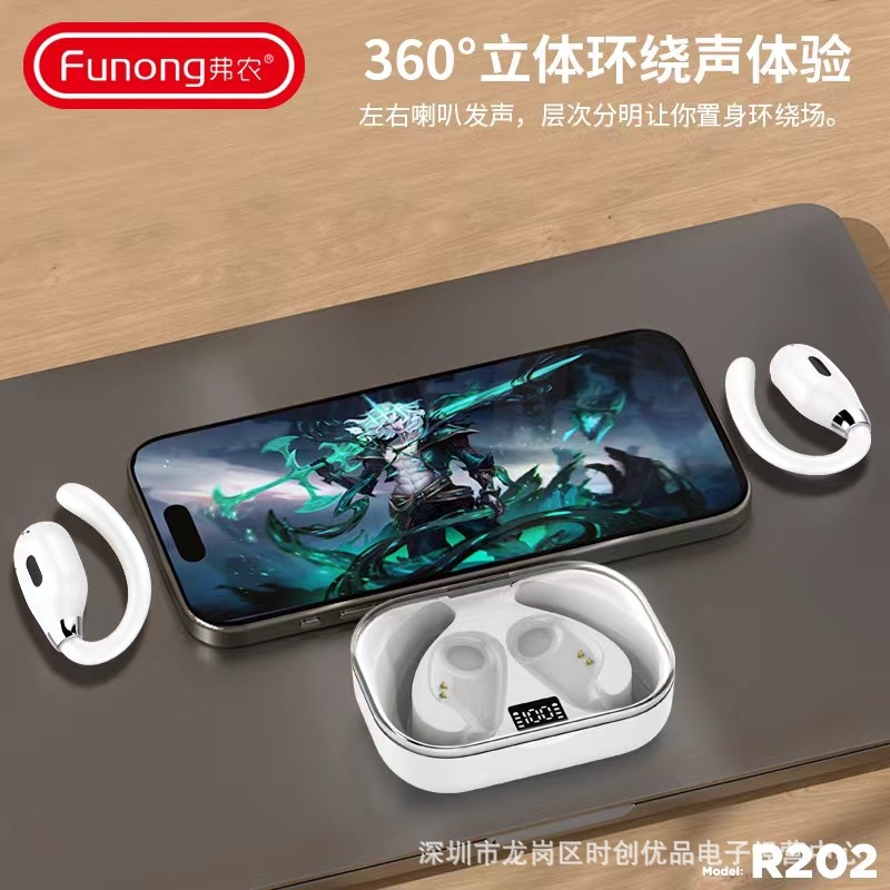 • Fannon R202: OWS 블루투스 헤드셋, 귀에 착용하지 않음, 디지털 디스플레이 [절묘한 나무 상자]