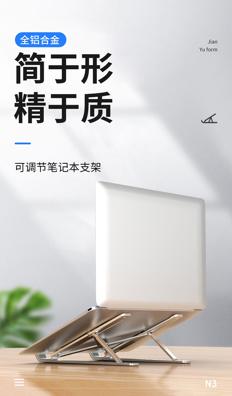 N3 알루미늄 합금 노트북 데스크탑 스탠드 접는 휴대 전화 태블릿 높은 열 분산 베이스 교수형 지원 프레임
