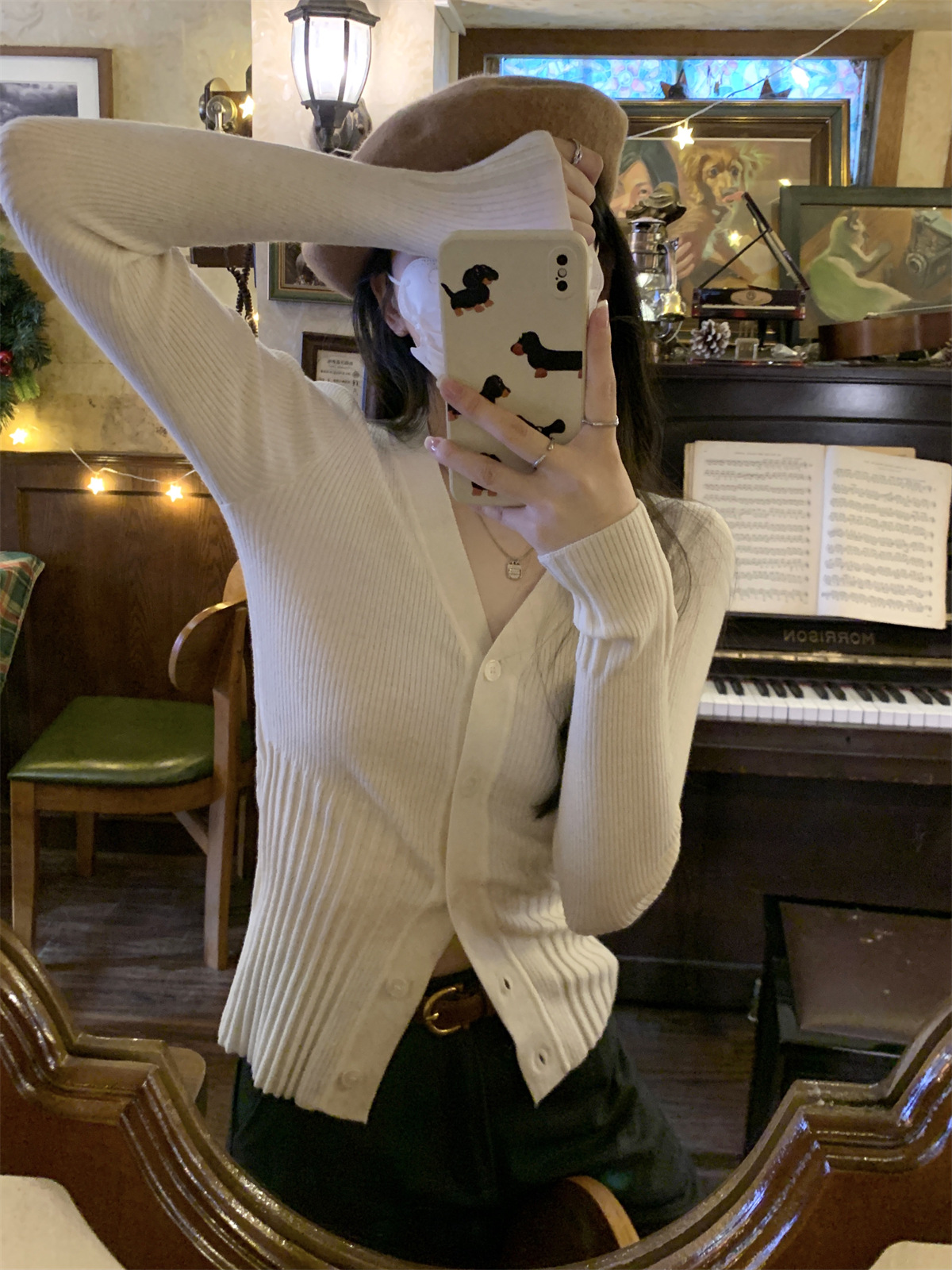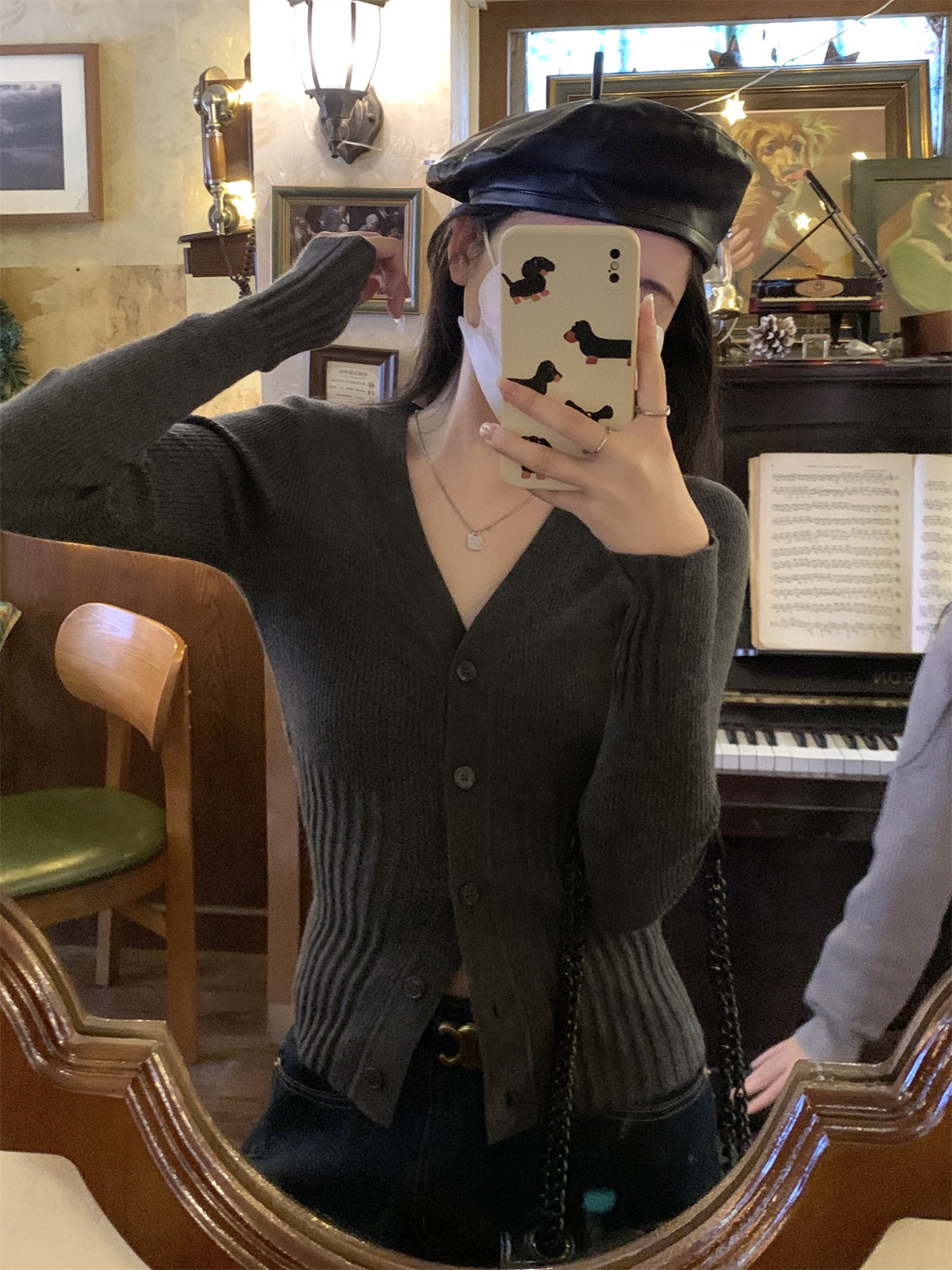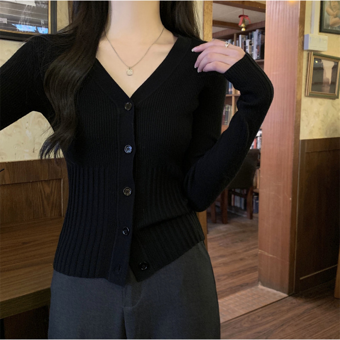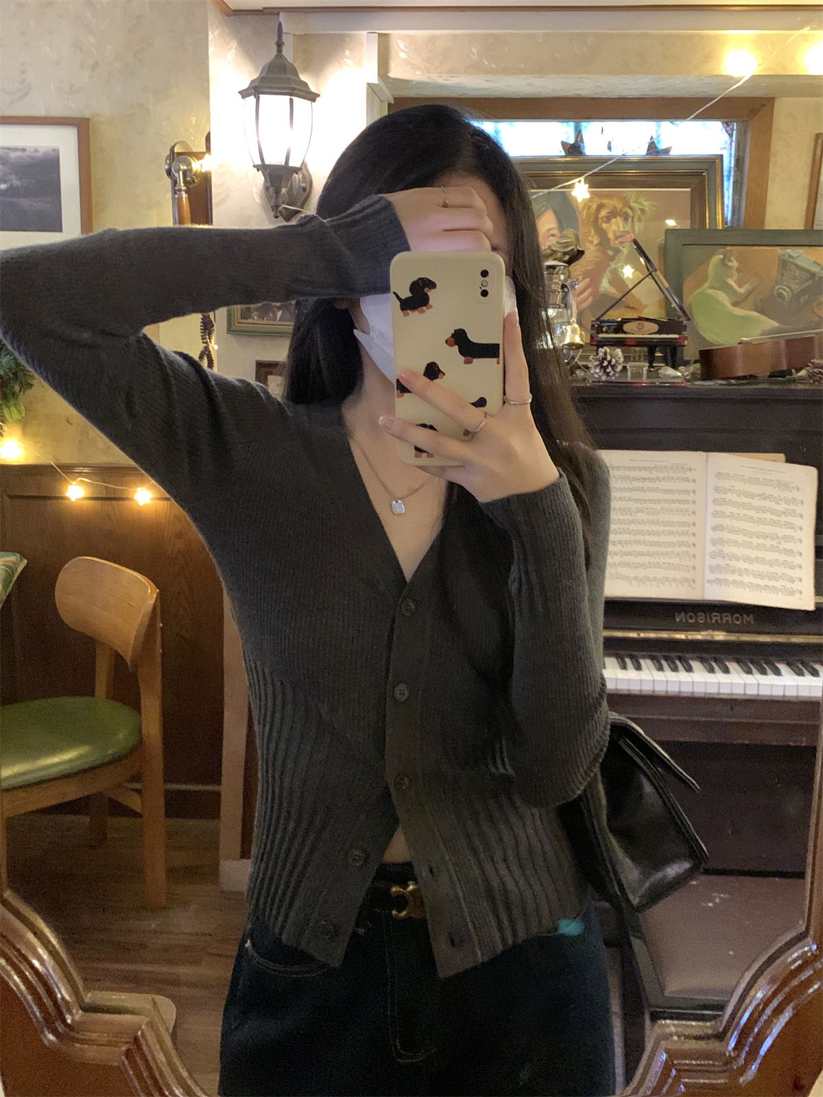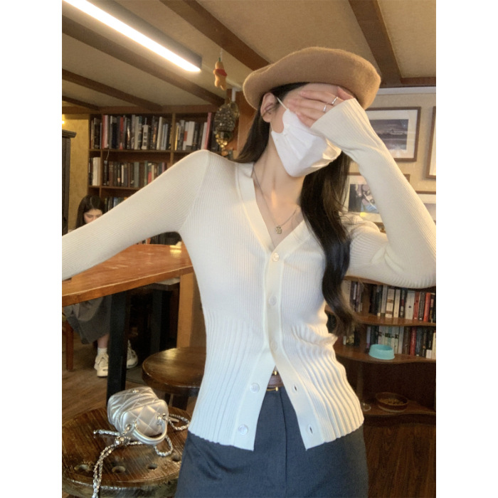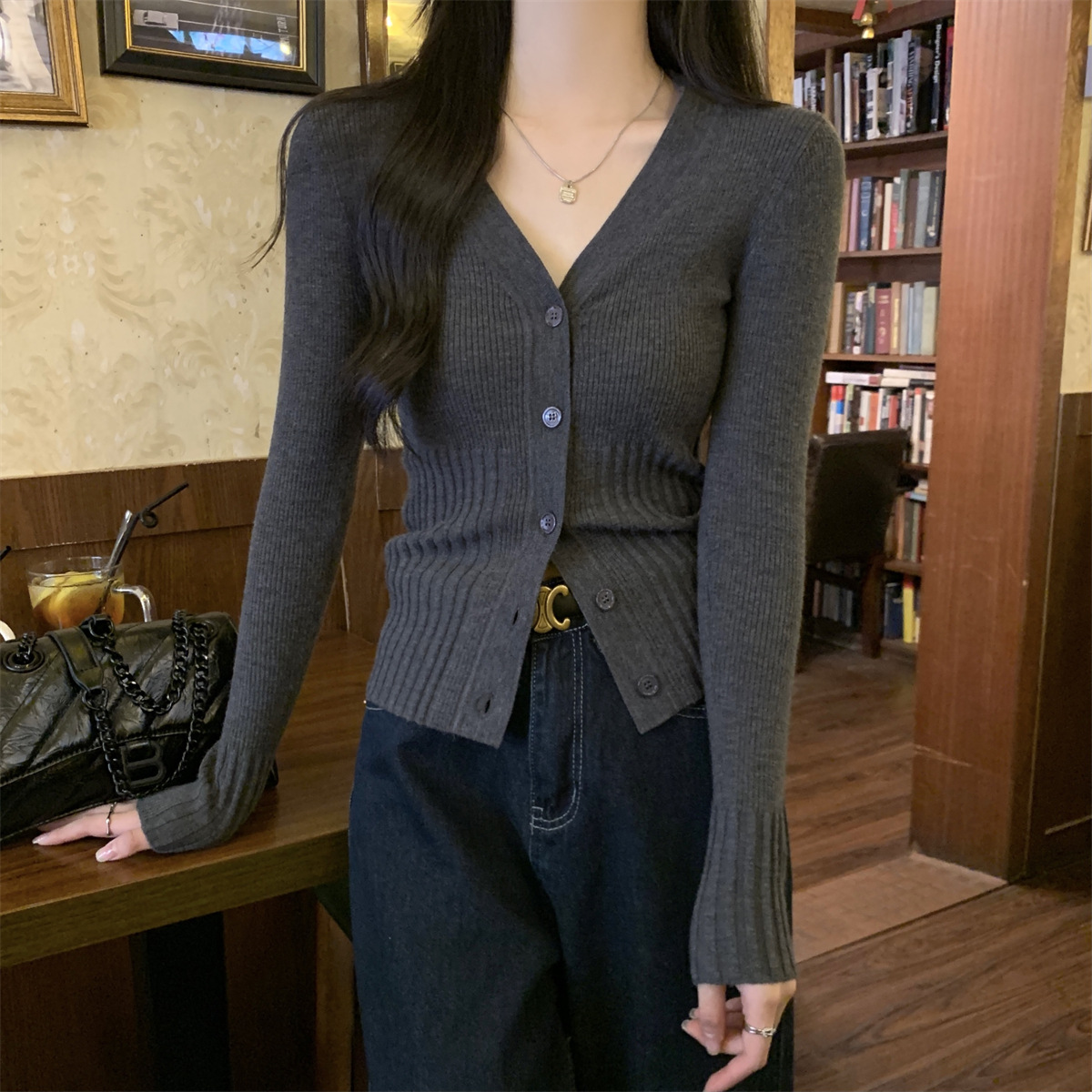 가을 V 넥 우아한 디자인 니트 내부 카디건 여성의 슬림 핏 얇은 기본 셔츠 이른 가을 탑스토어 가기
