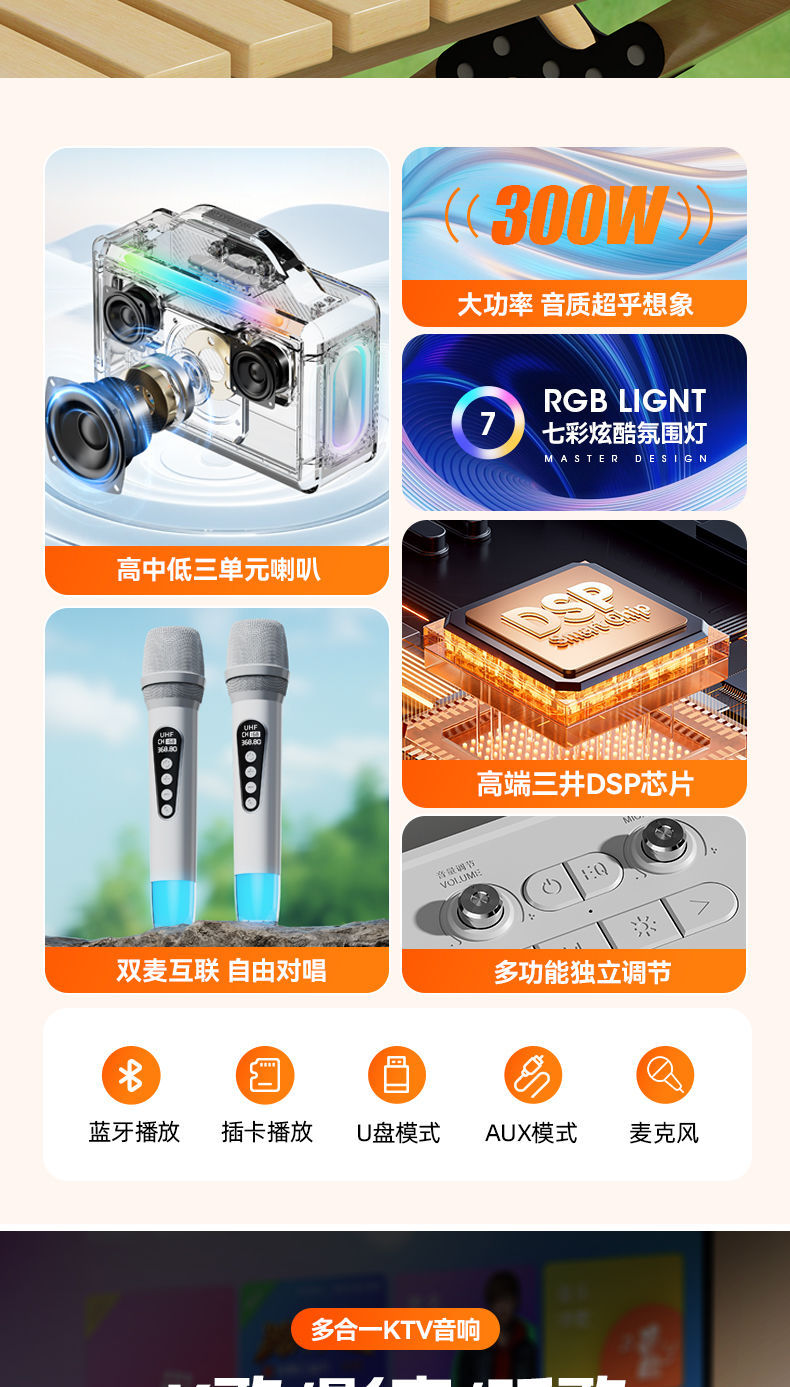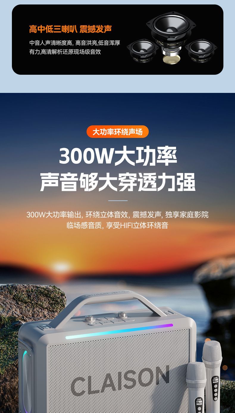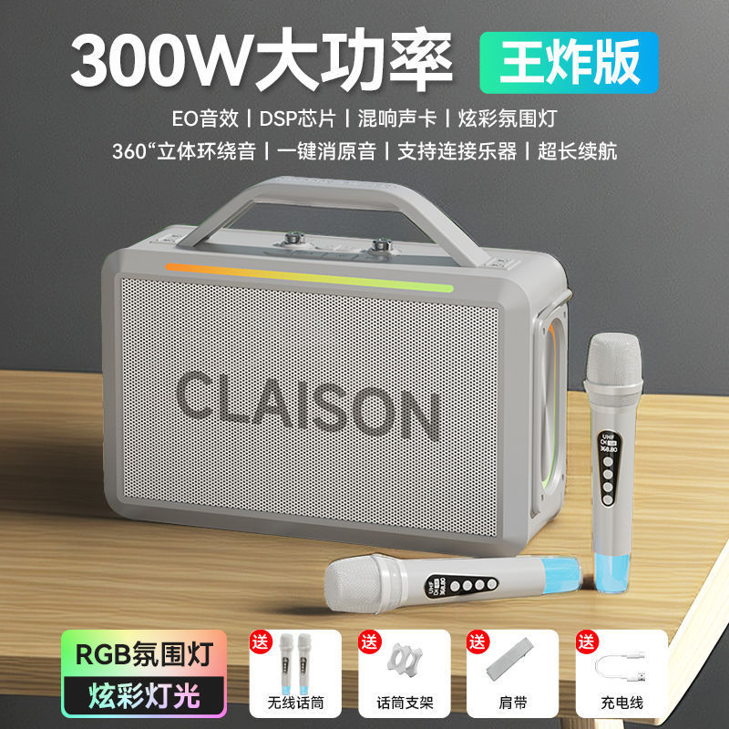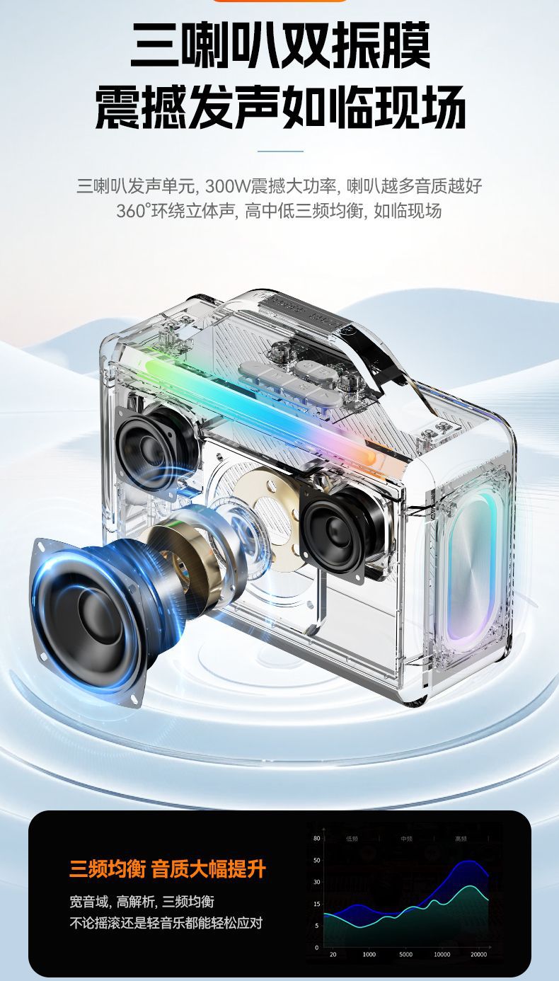 새로운 300W 고출력 RGB 조명 효과 블루투스 오디오 휴대용 사운드 카드 통합 블루투스 듀얼 마이크 스피커스토어 가기