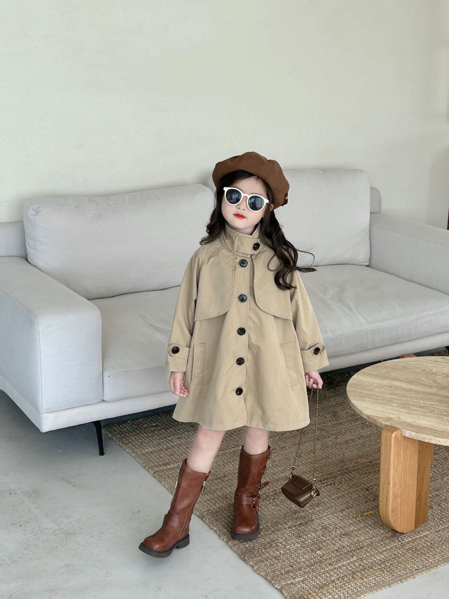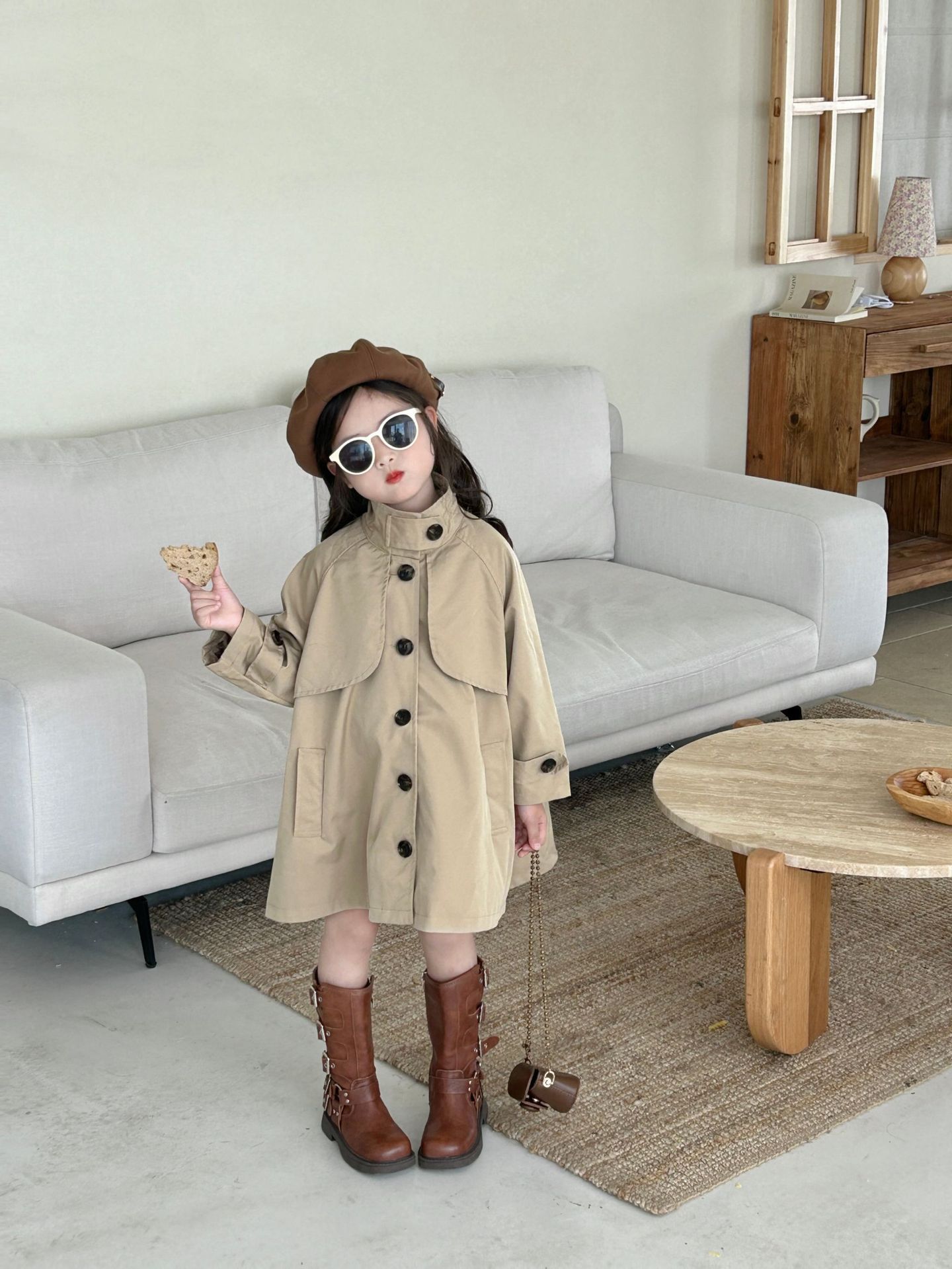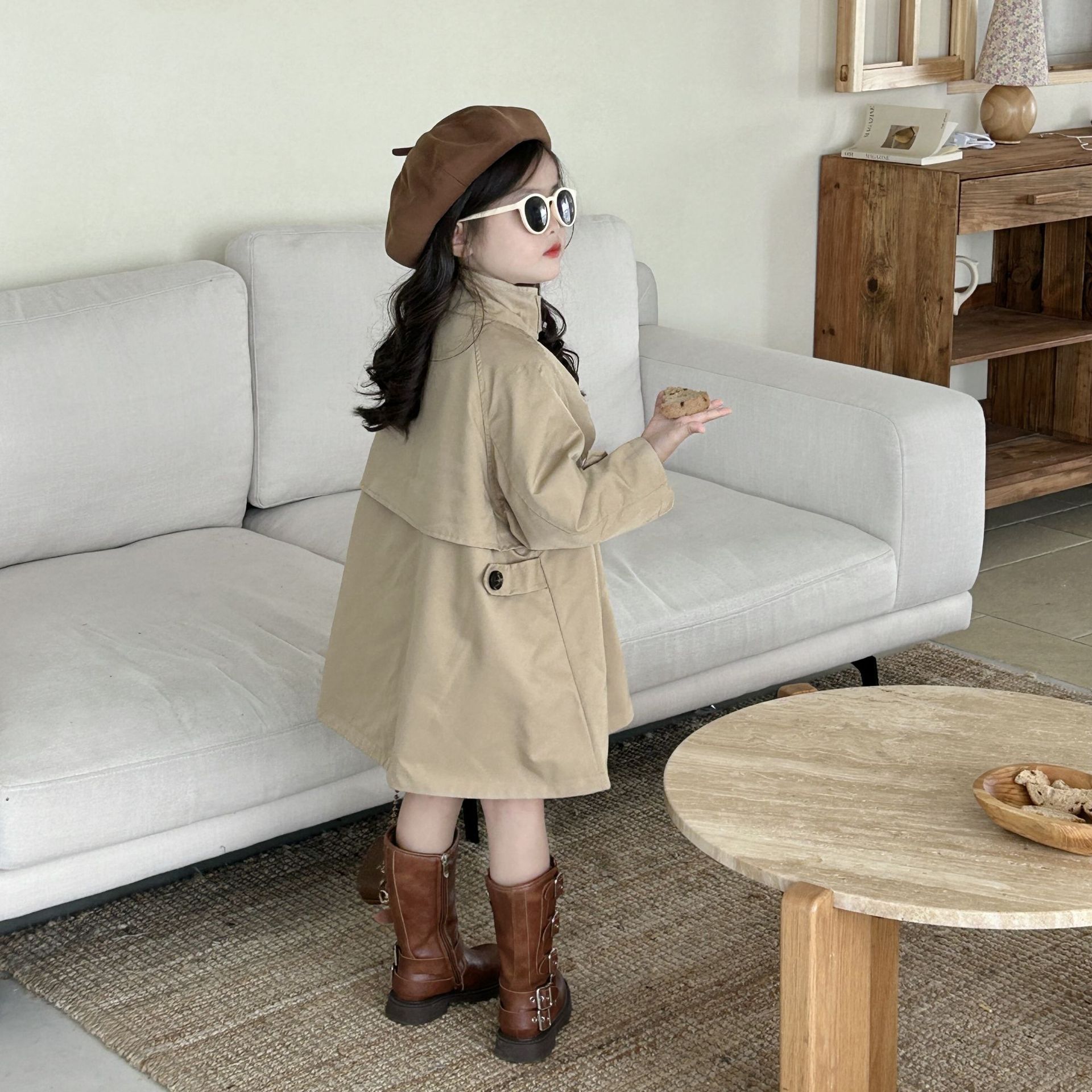 소녀 윈드 브레이커 2024 가을 새로운 카키 패션 서양식 어린이 긴 한국 영국 스타일 코트스토어 가기