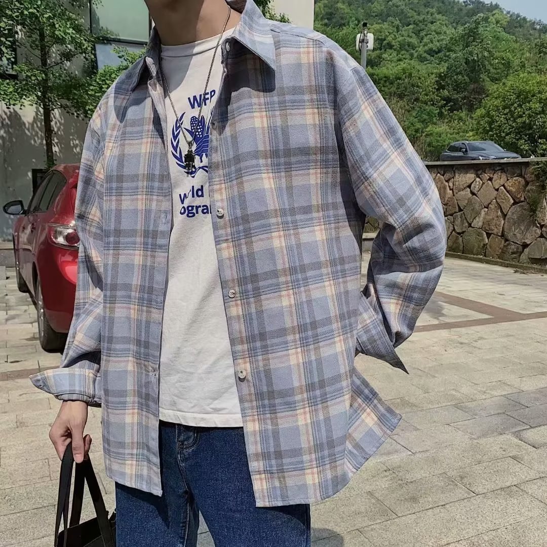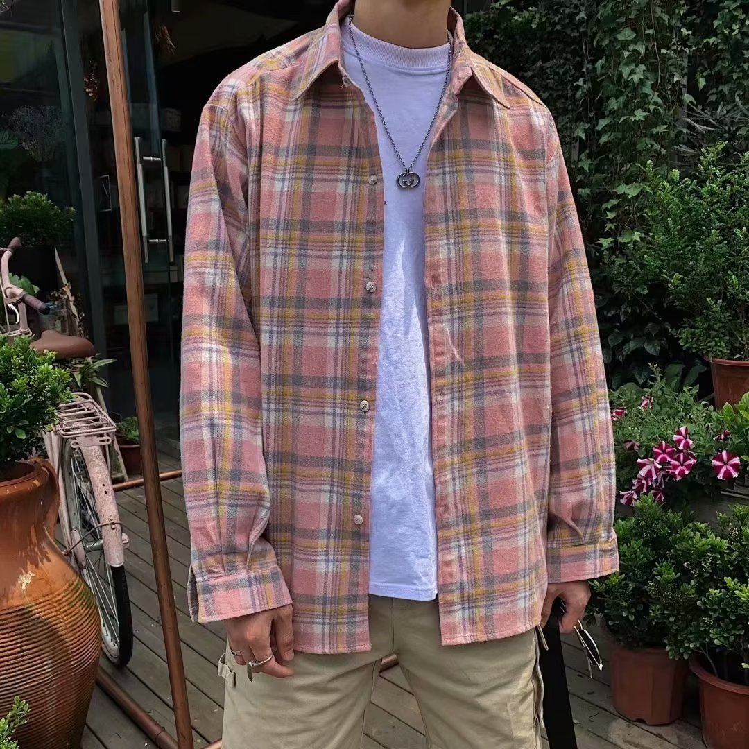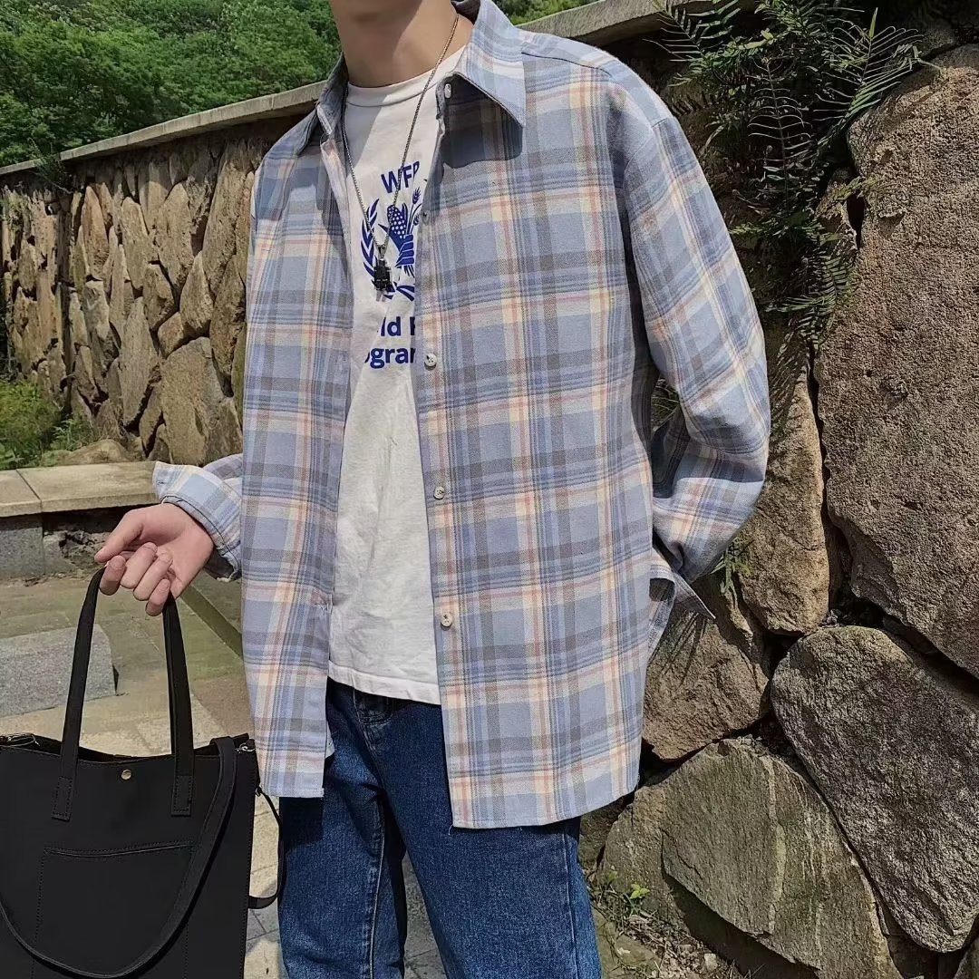 2024 봄과 가을 새로운 스타일 셔츠 남자 격자 무늬 한국 스타일 유행 잘 생긴 홍콩 스타일 Ins 유행 캐주얼 긴 소매 일본 스타일 재킷스토어 가기