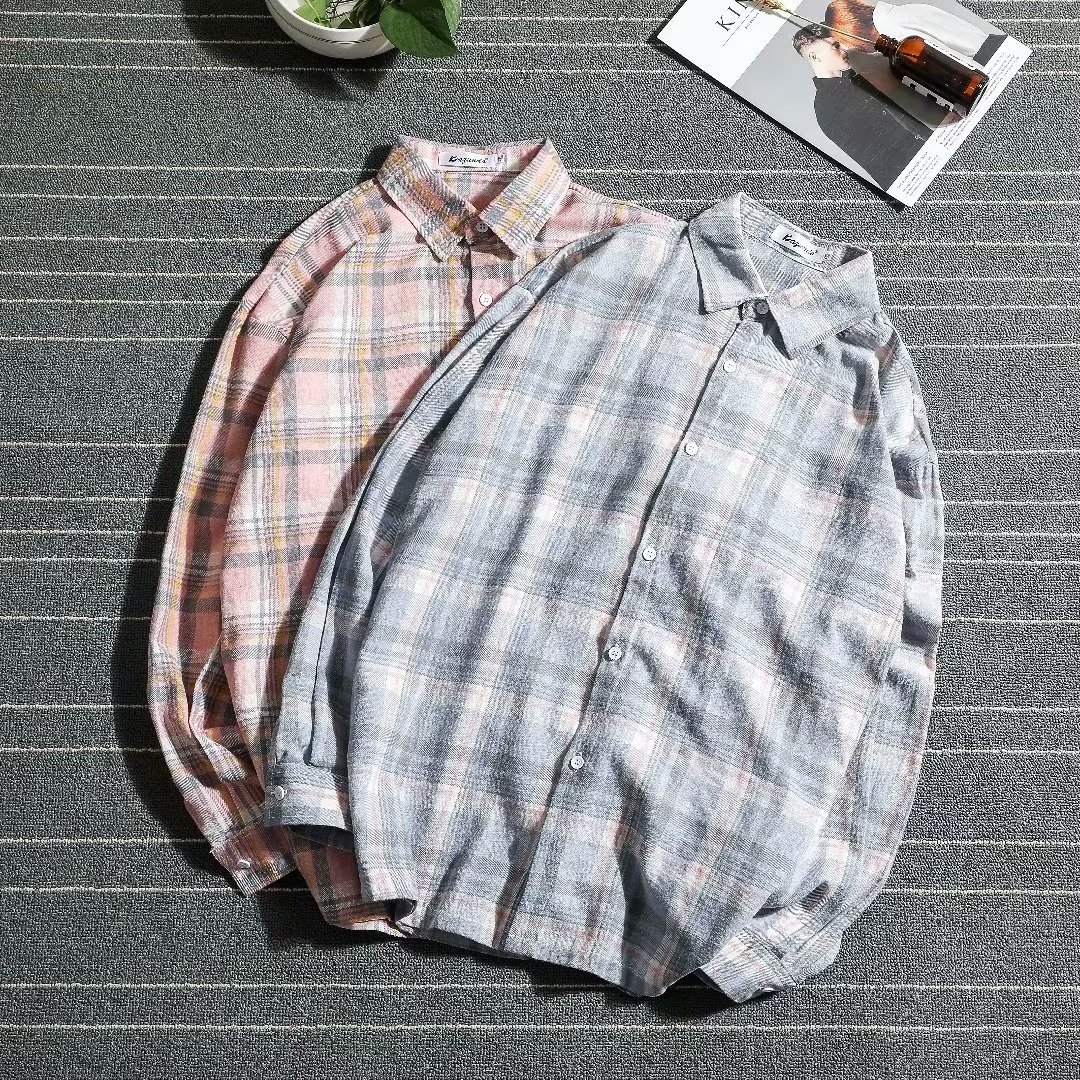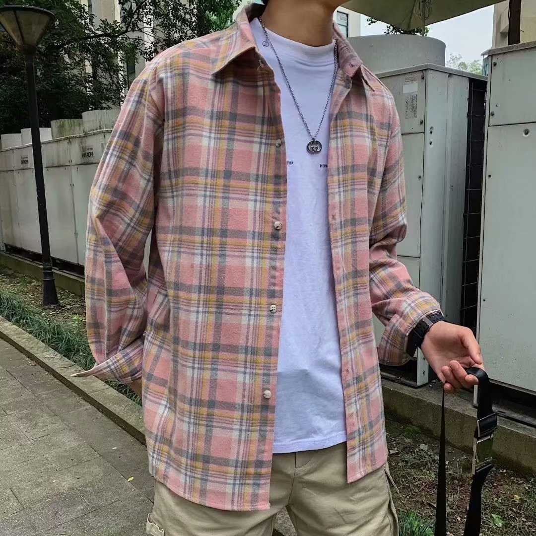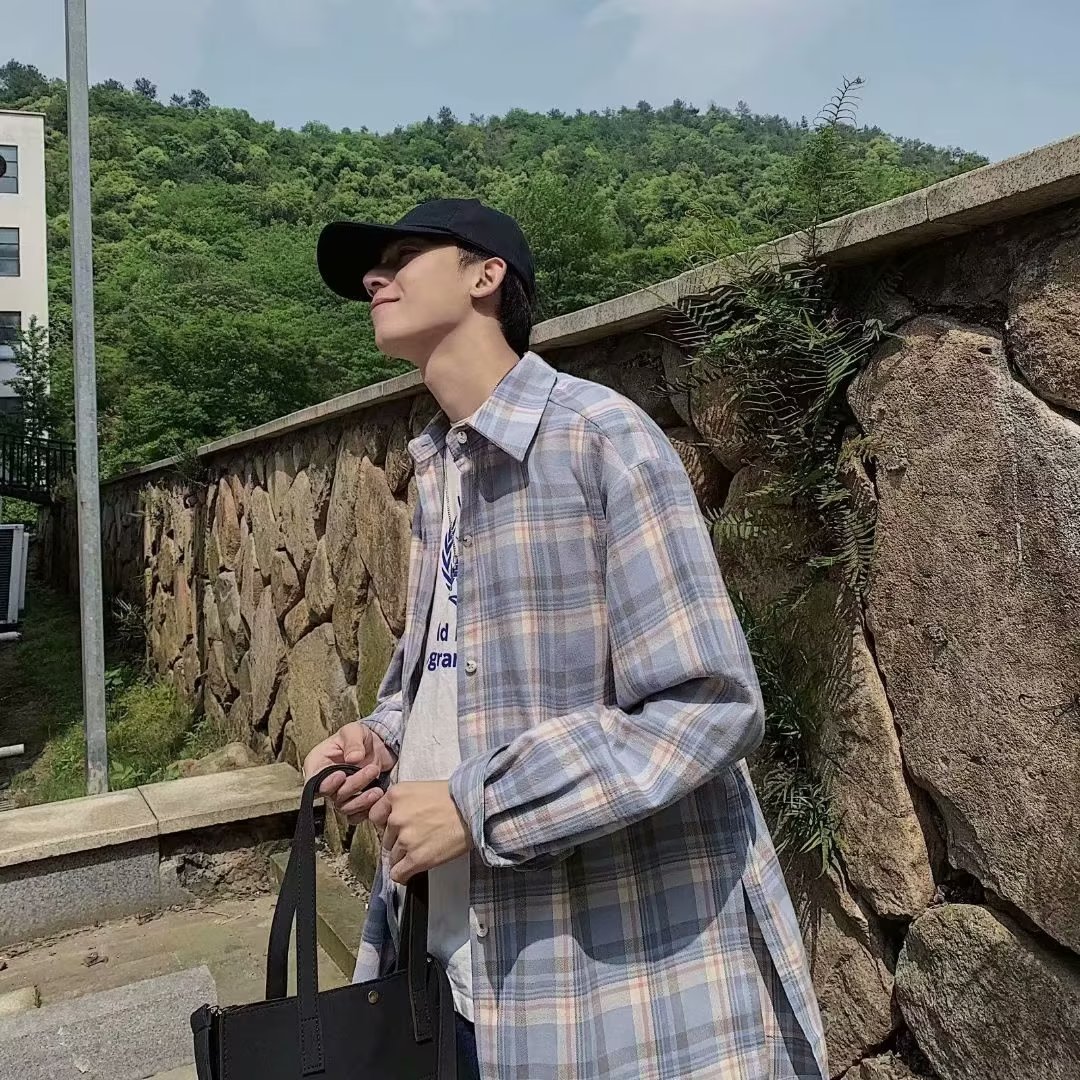 2024 봄과 가을 새로운 스타일 셔츠 남자 격자 무늬 한국 스타일 유행 잘 생긴 홍콩 스타일 Ins 유행 캐주얼 긴 소매 일본 스타일 재킷스토어 가기