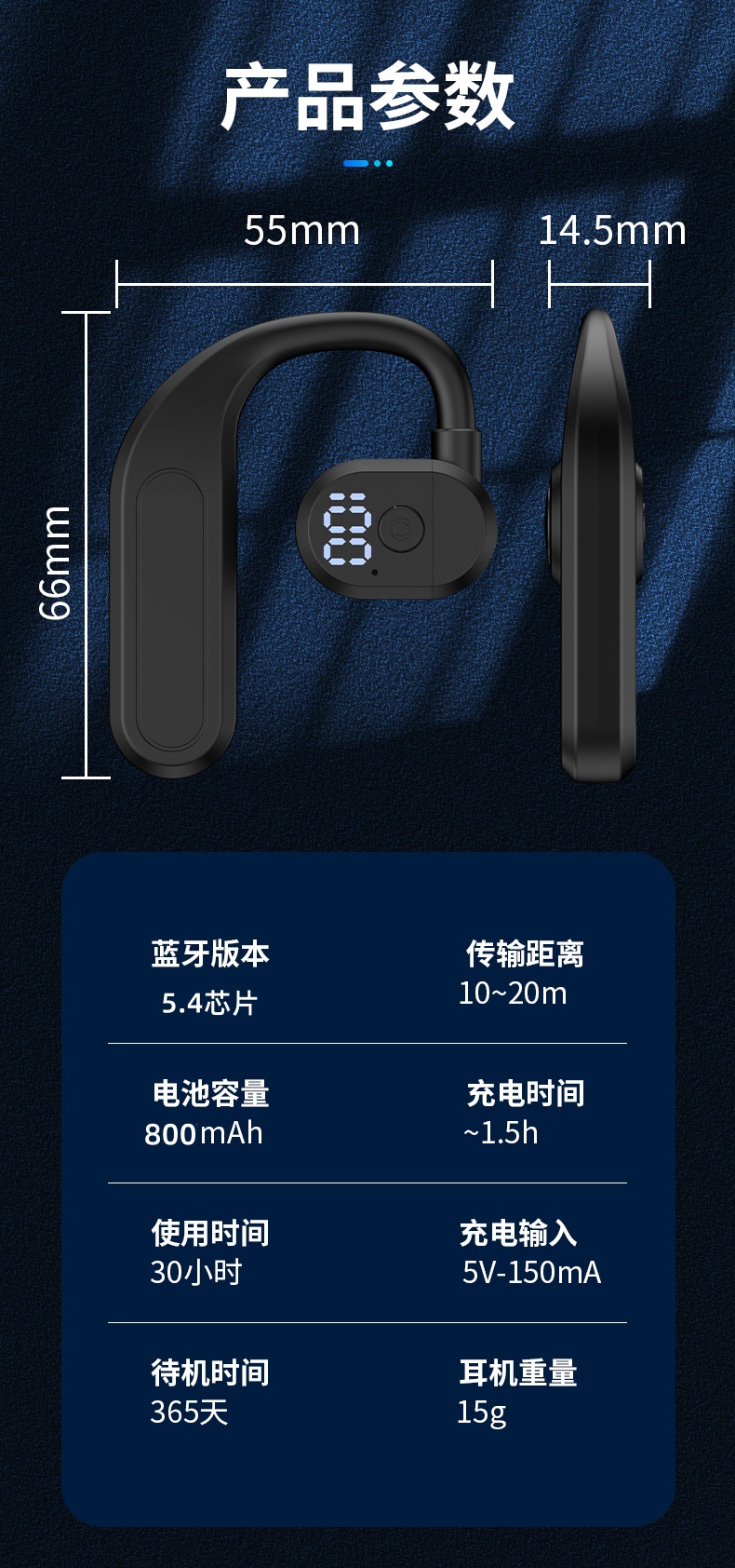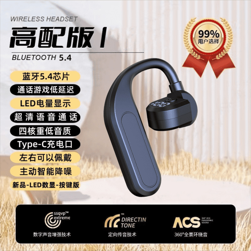 왼쪽과 오른쪽 착용 가능한 2024 새로운 비즈니스 무선 블루투스 헤드셋 귀 매달려 울트라 클리어 통화 긴 내구성 유니버설