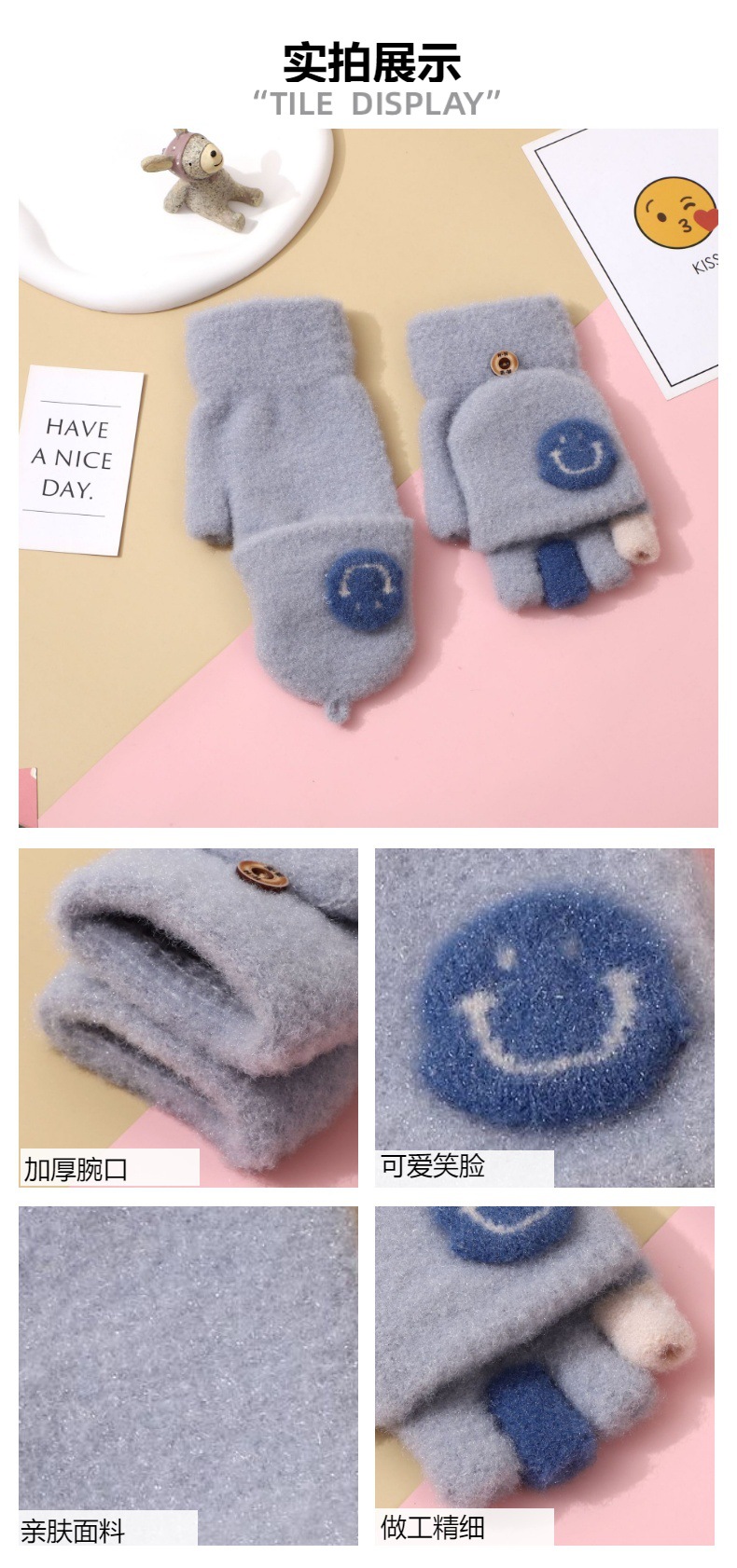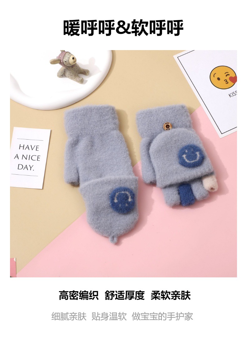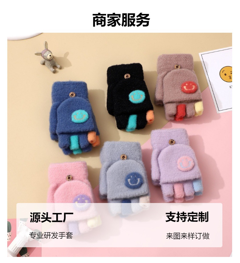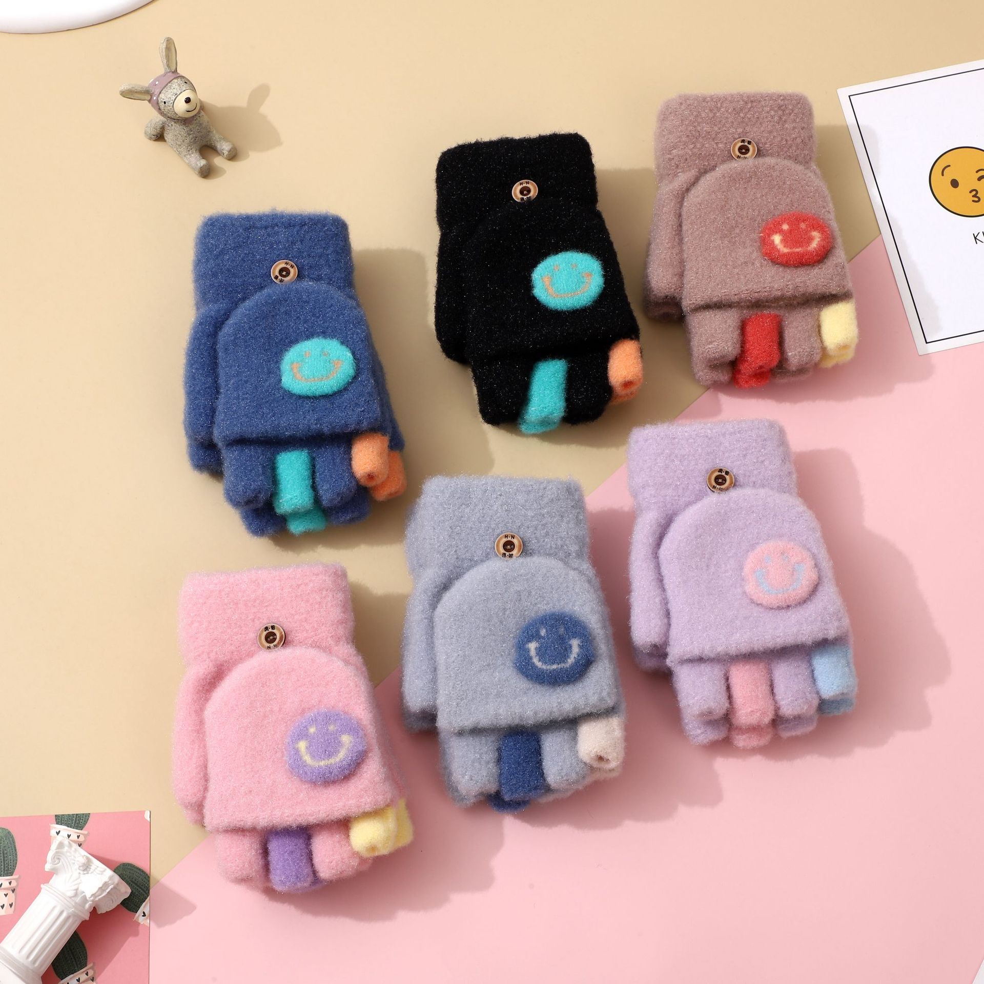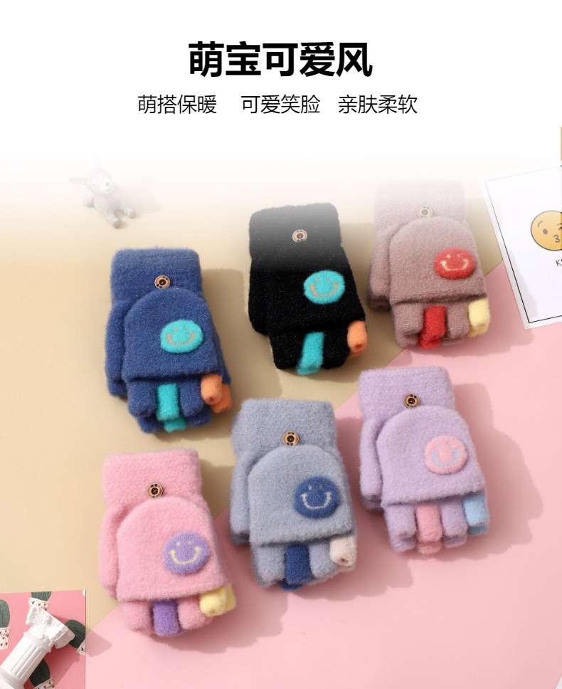 공장 직판 허니우 가을 겨울 모직 터치스크린 방한 니트 장갑 다용도 플립업 도매 10-15세용