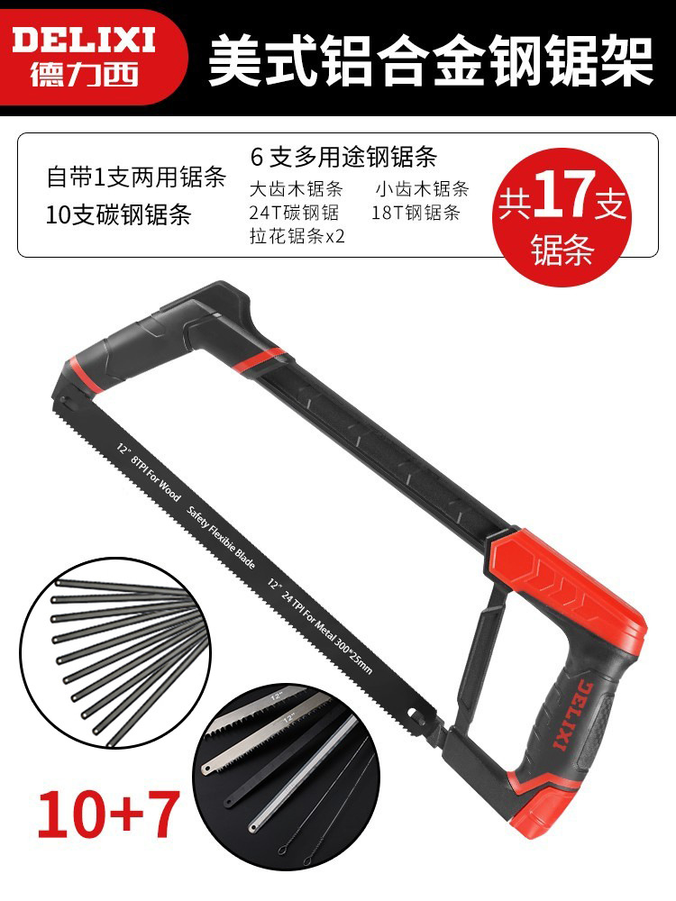 Delixi Hacksaw, 가정용 소형 핸드 헬드 톱 아이언 톱 블레이드 Hacksaw Bow Small Hacksaw는 Bow Hacksaw 프레임을 보았습니다.
