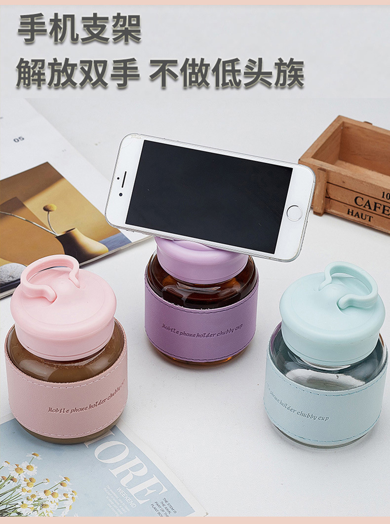 인터넷 축하 미니 유리 고온 휴대용 워터 컵 높은 컬러 값 휴대 전화 홀더 컵 커버 안티 스케일링 커피 컵