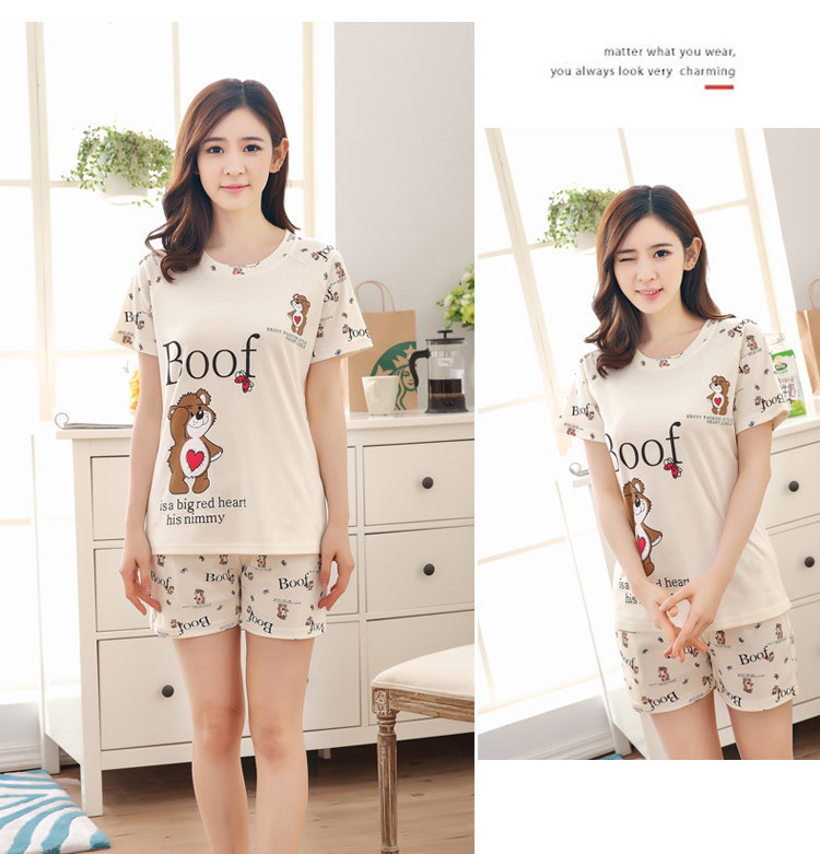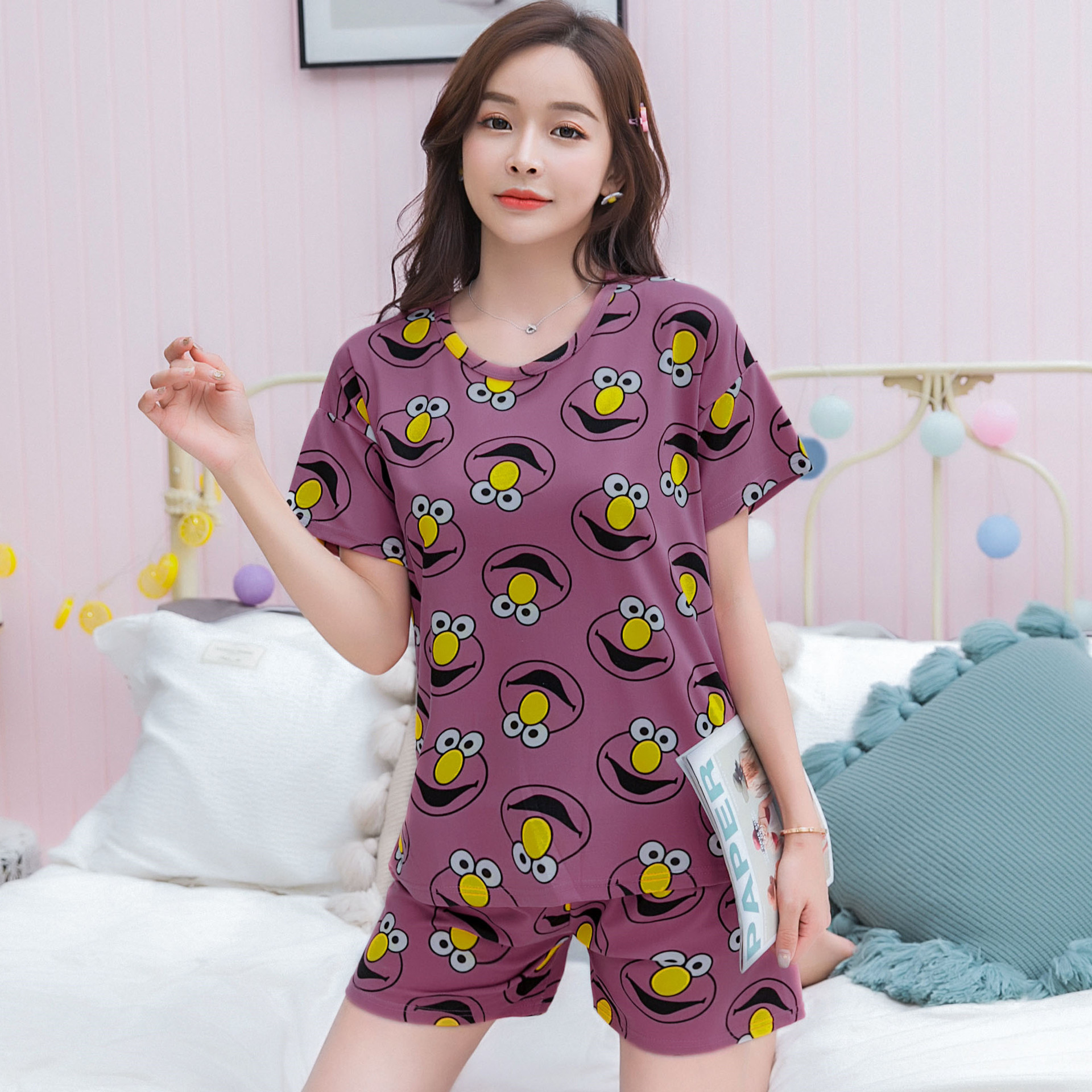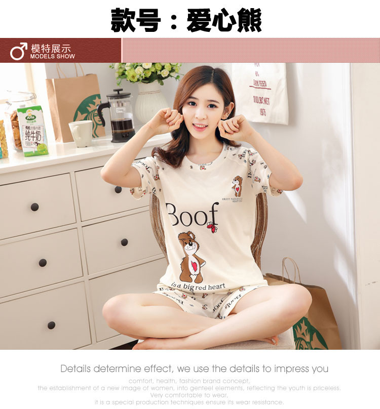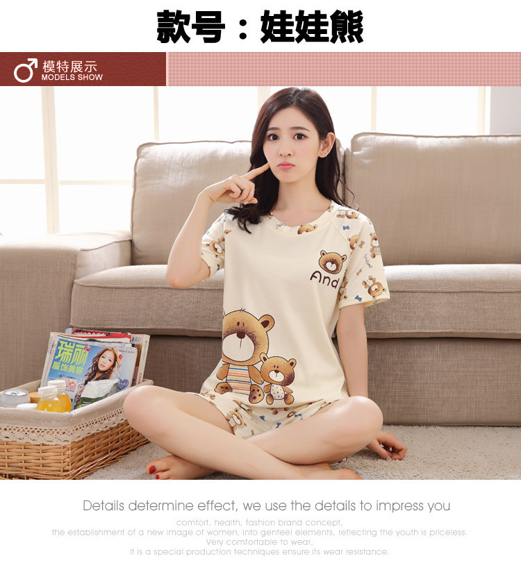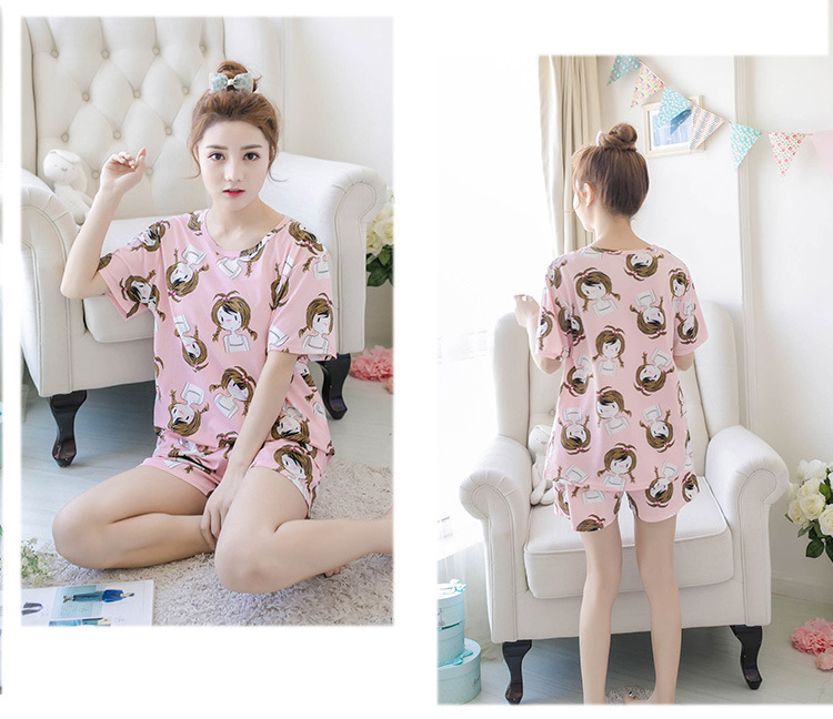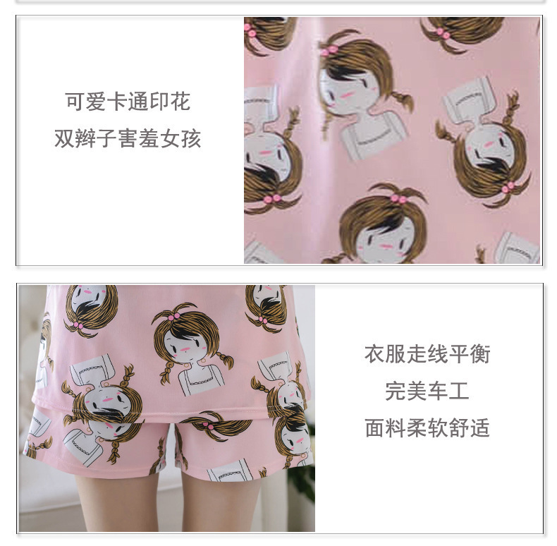 여름 새로운 숙녀 잠옷 플러스 사이즈 짧은 소매 귀여운 만화 홈 의류 세트 제조 업체 도매 머리카락 세대스토어 가기