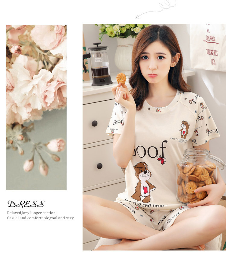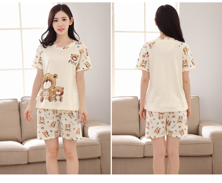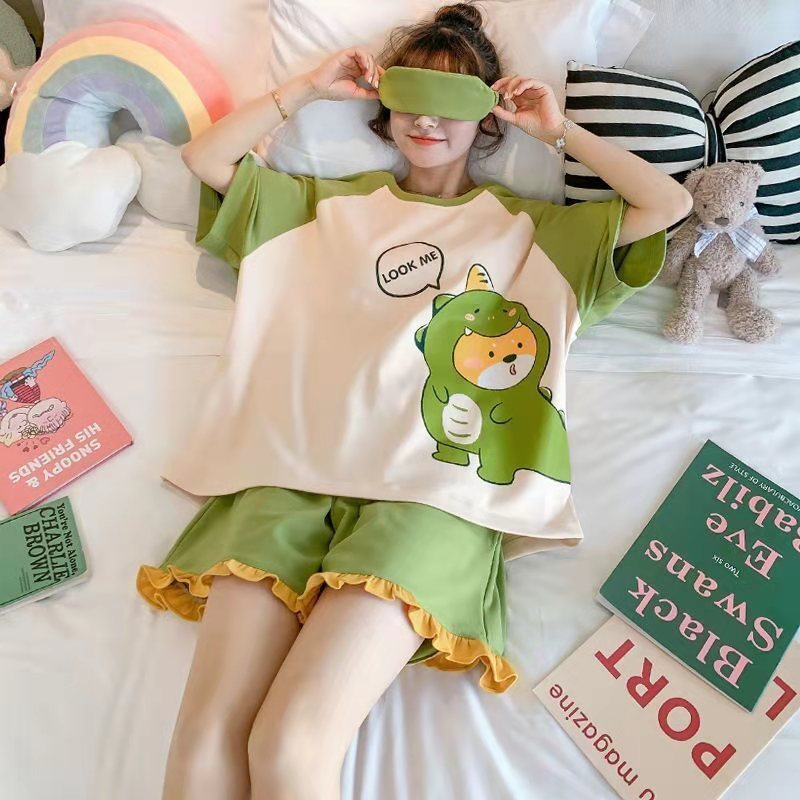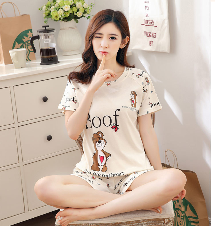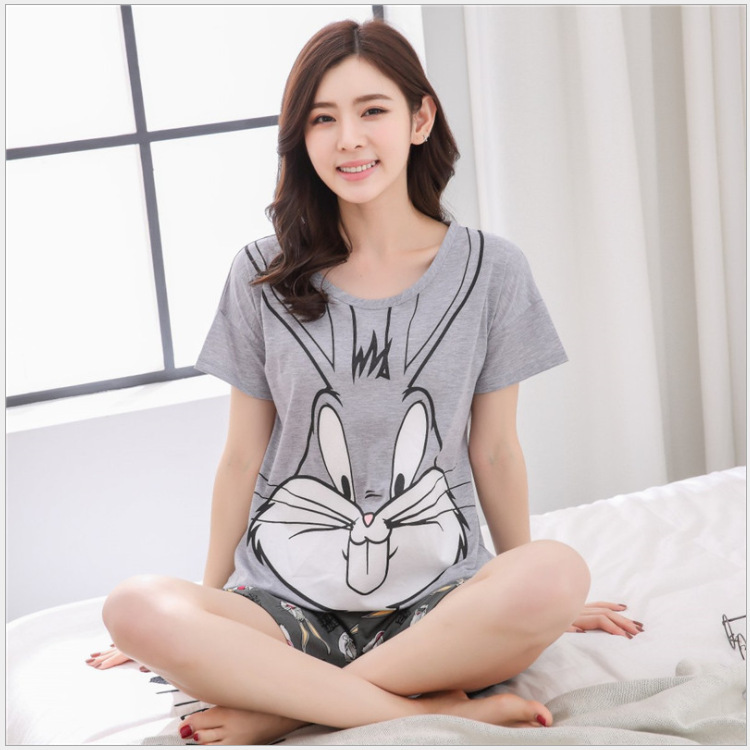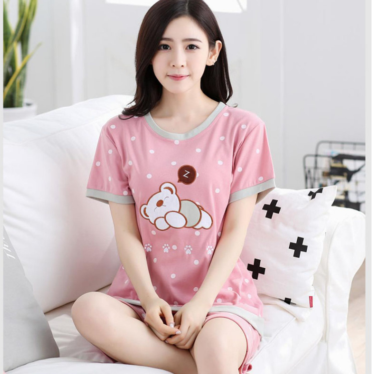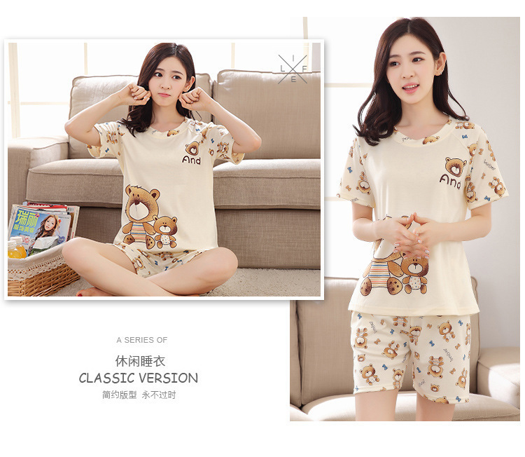 여름 새로운 숙녀 잠옷 플러스 사이즈 짧은 소매 귀여운 만화 홈 의류 세트 제조 업체 도매 머리카락 세대스토어 가기