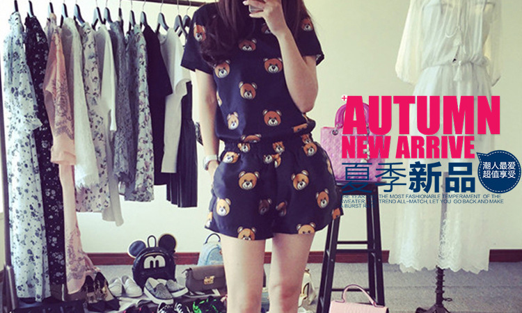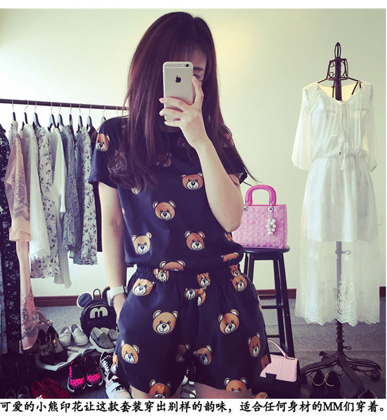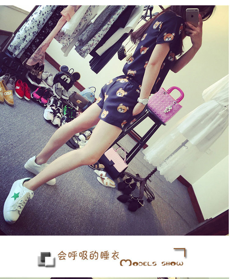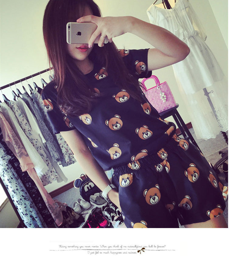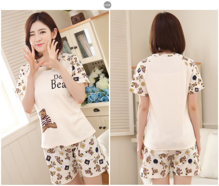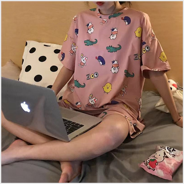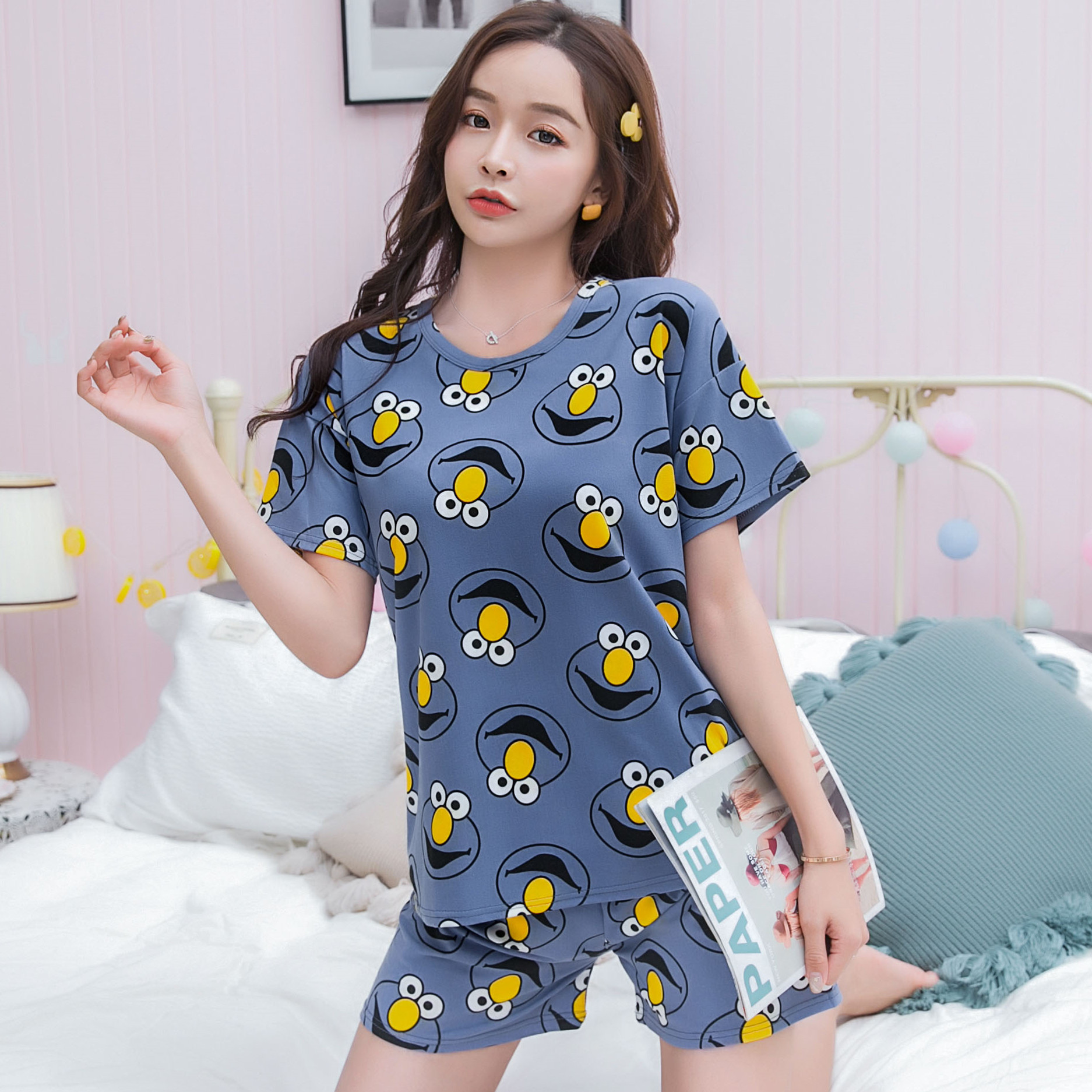 여름 새로운 숙녀 잠옷 플러스 사이즈 짧은 소매 귀여운 만화 홈 의류 세트 제조 업체 도매 머리카락 세대스토어 가기