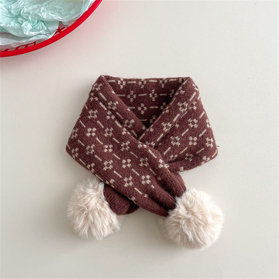 어린이 크로스 니트 스카프 Ins 겨울 귀여운 헤어 볼 방풍 아기 네커 따뜻한 여자 스카프