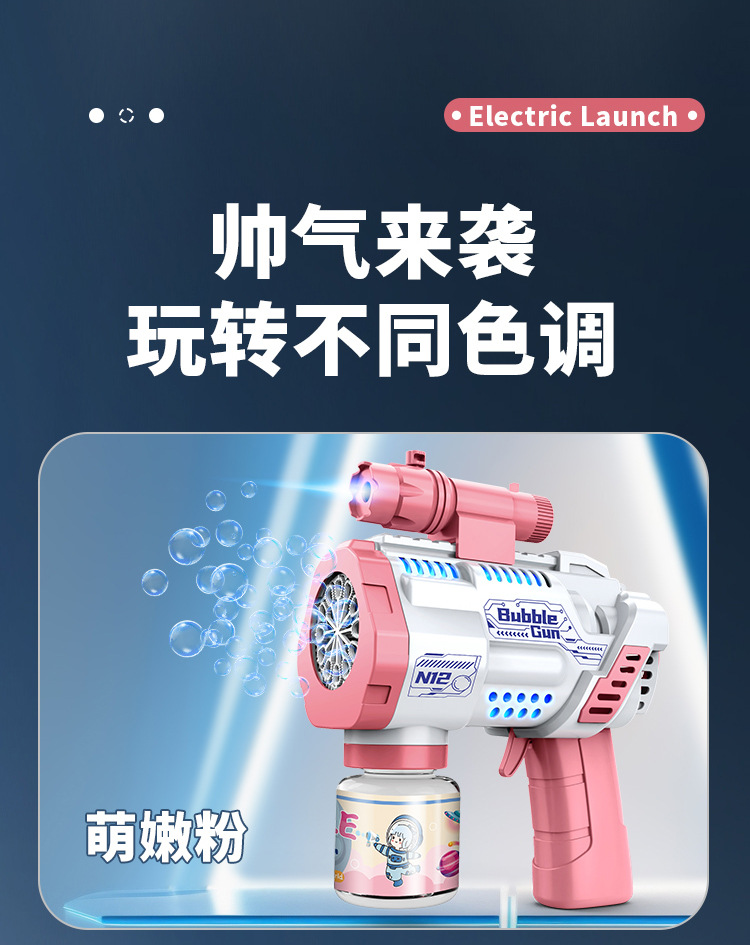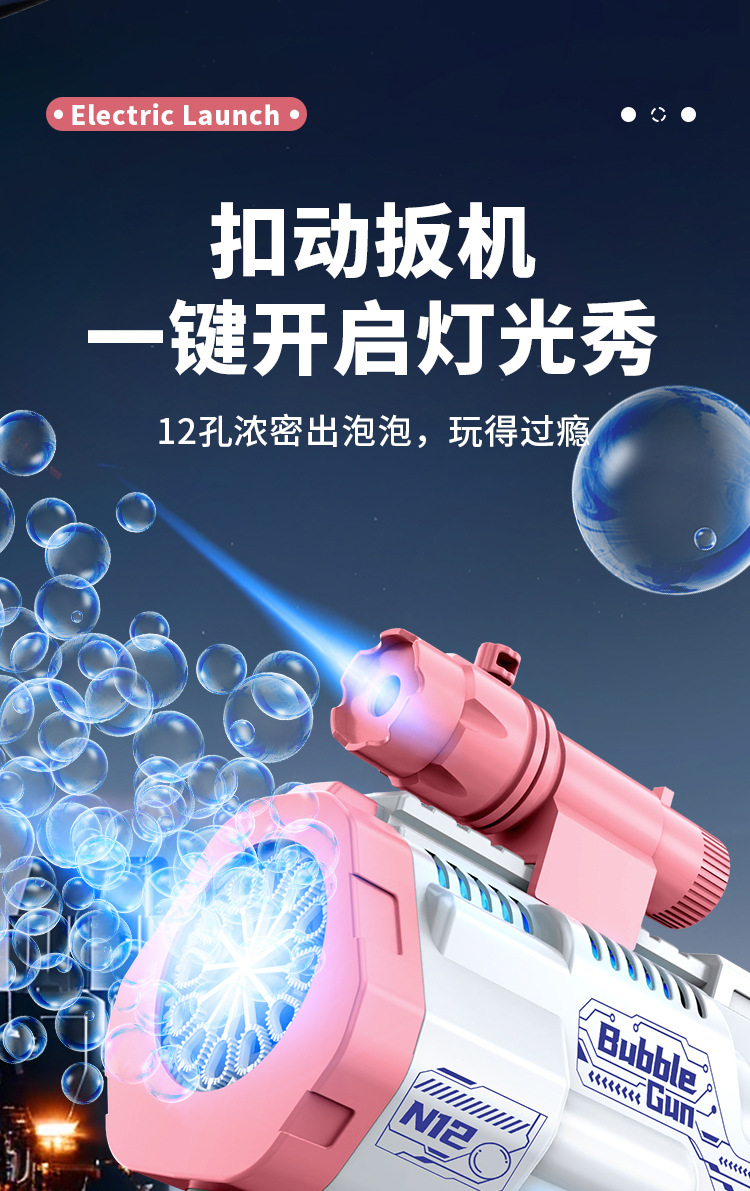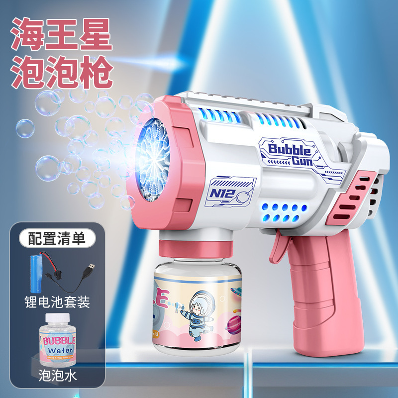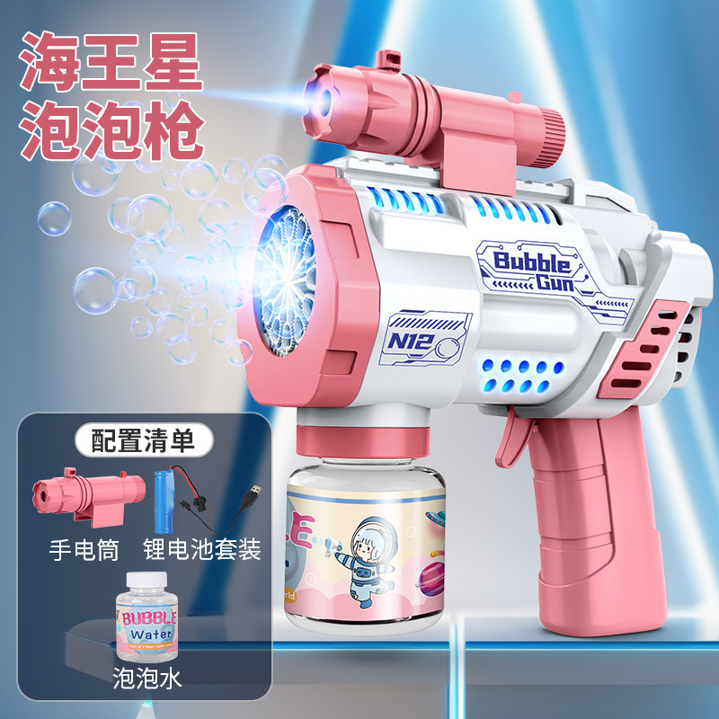 • 12홀(고급 버전) 버블 머신 + 리튬 배터리 + 손전등 + 물 1개 [걸리 핑크]