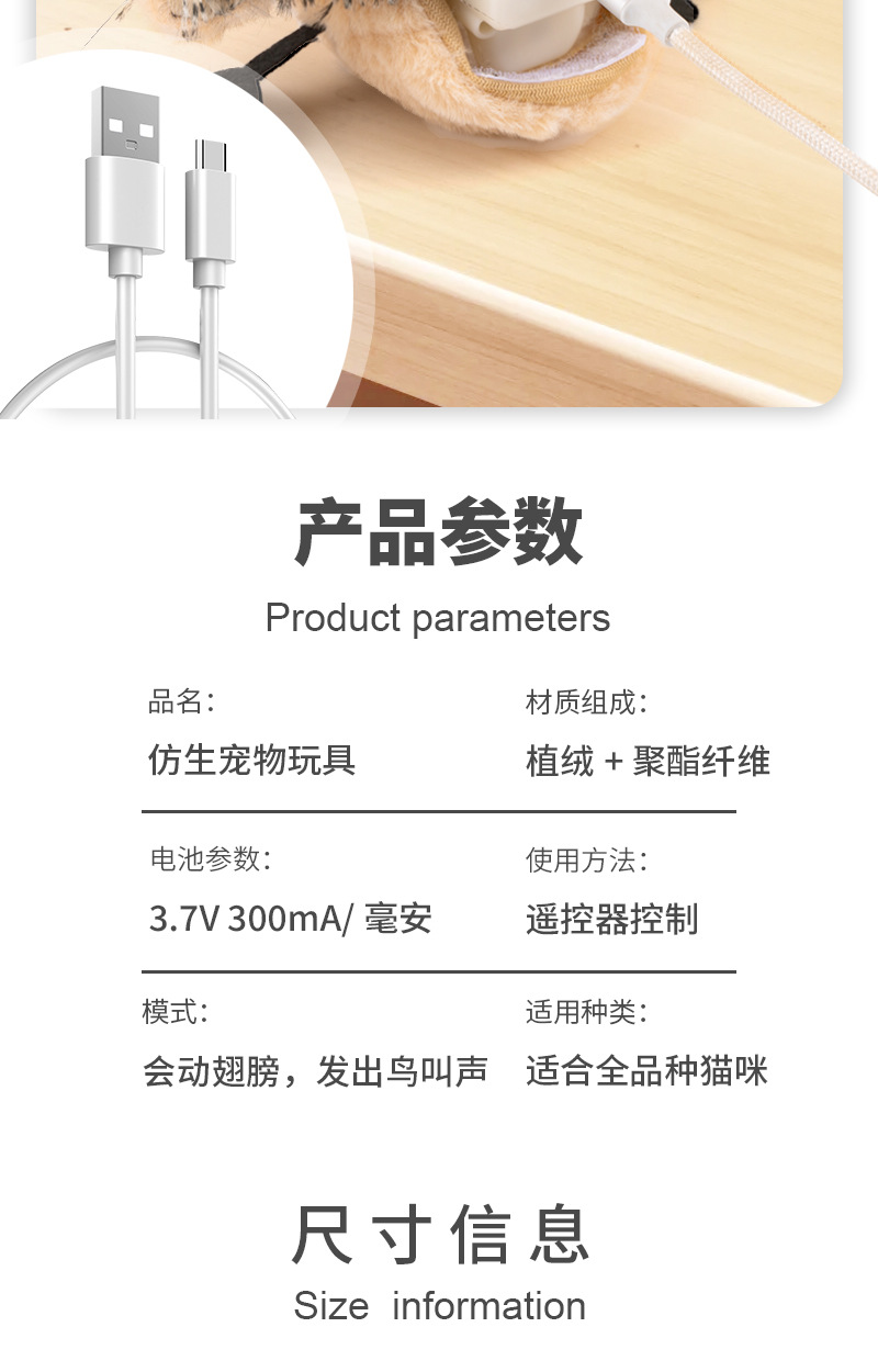 아마존 폭발 고양이 새 원격 제어 충전 터치 날개 소리 고양이 장난감 고양이 장난감 스틱 도매