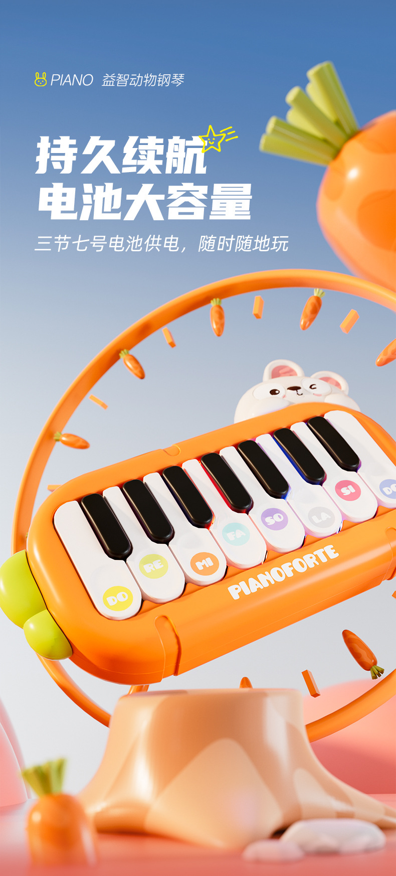 • 포켓 피아노 [귀여운 토끼 오렌지] 배터리 버전 컬러 박스