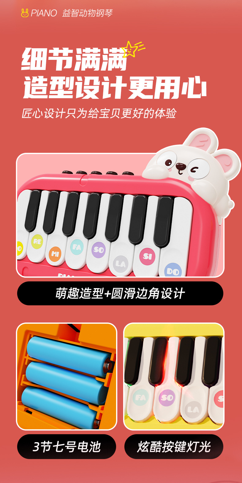 국경 어린이 다기능 포켓 피아노 애완 동물 음악 전자 피아노 아기 교육 조기 교육 초보자 장난감