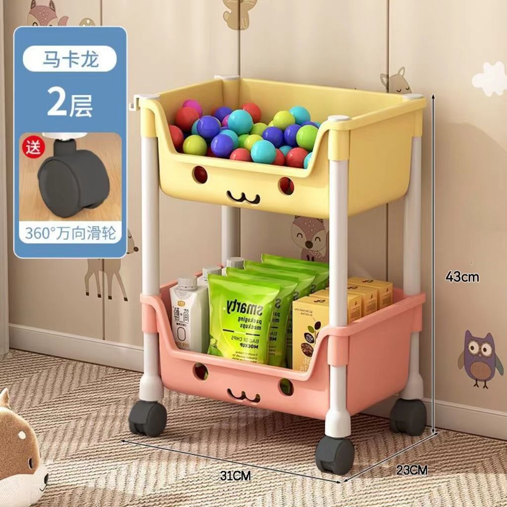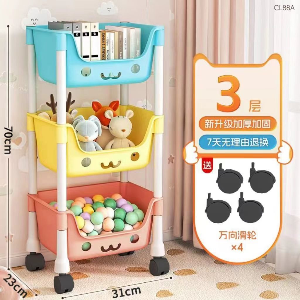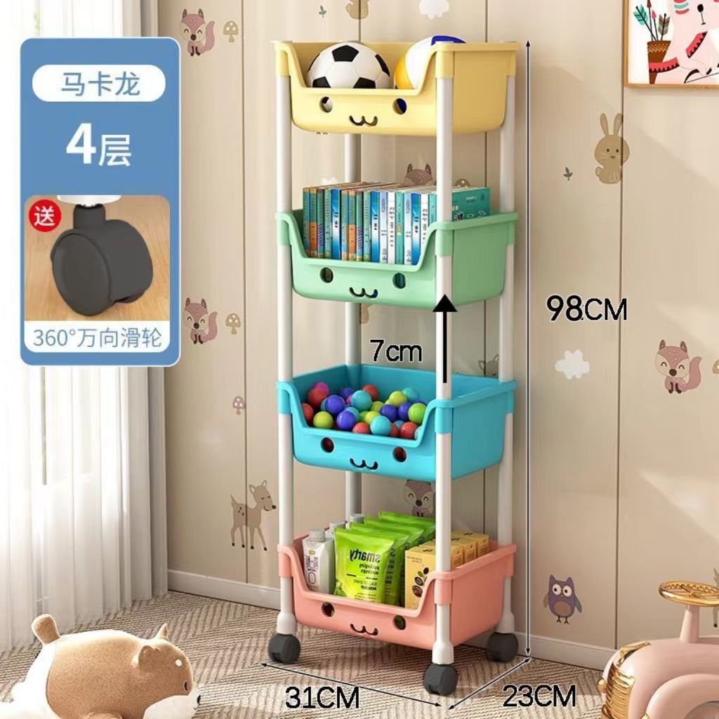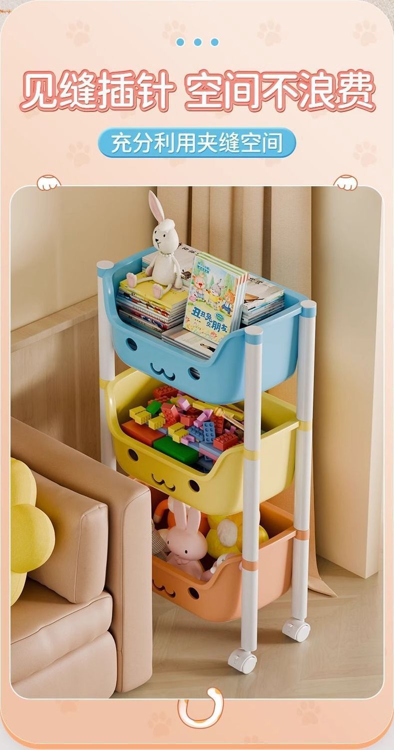 트롤리 스토리지 랙 어린이 장난감 바닥 스토리지 랙 가정용 스낵 책장 그림책 랙 모바일 다층 마무리