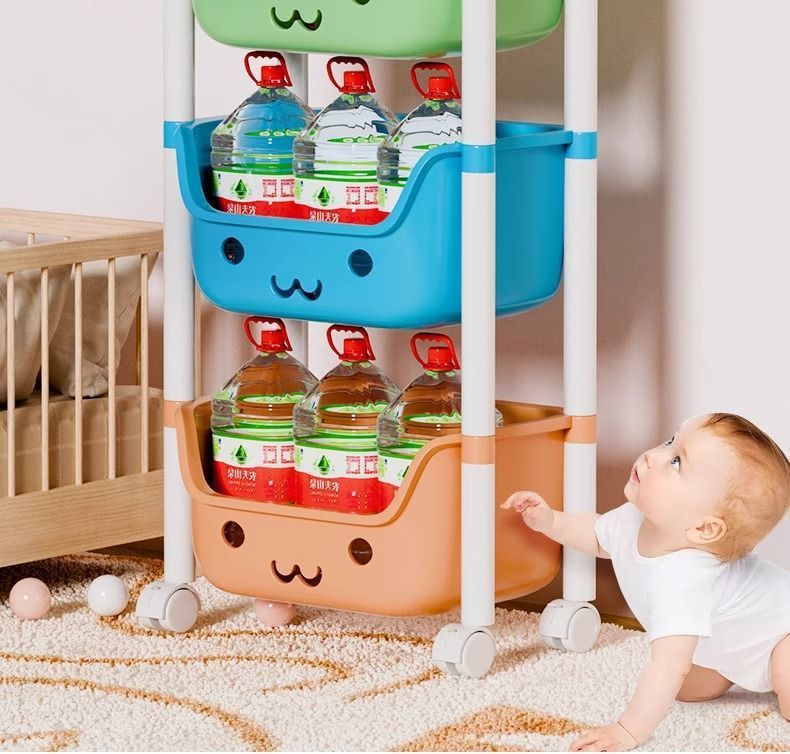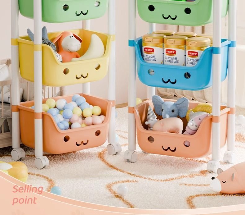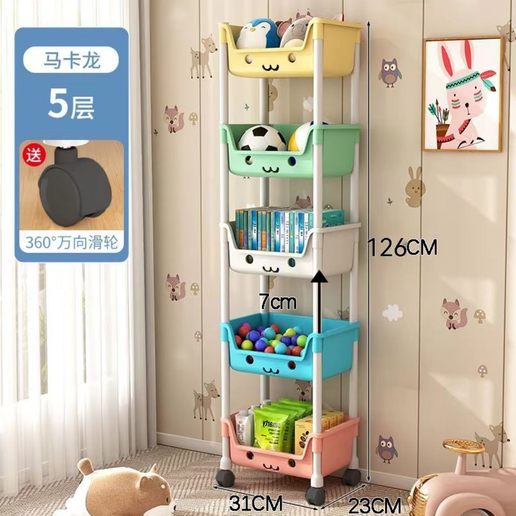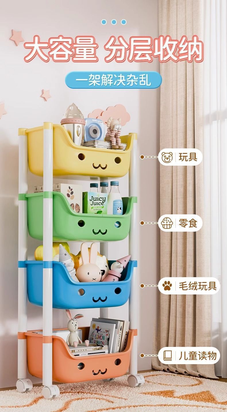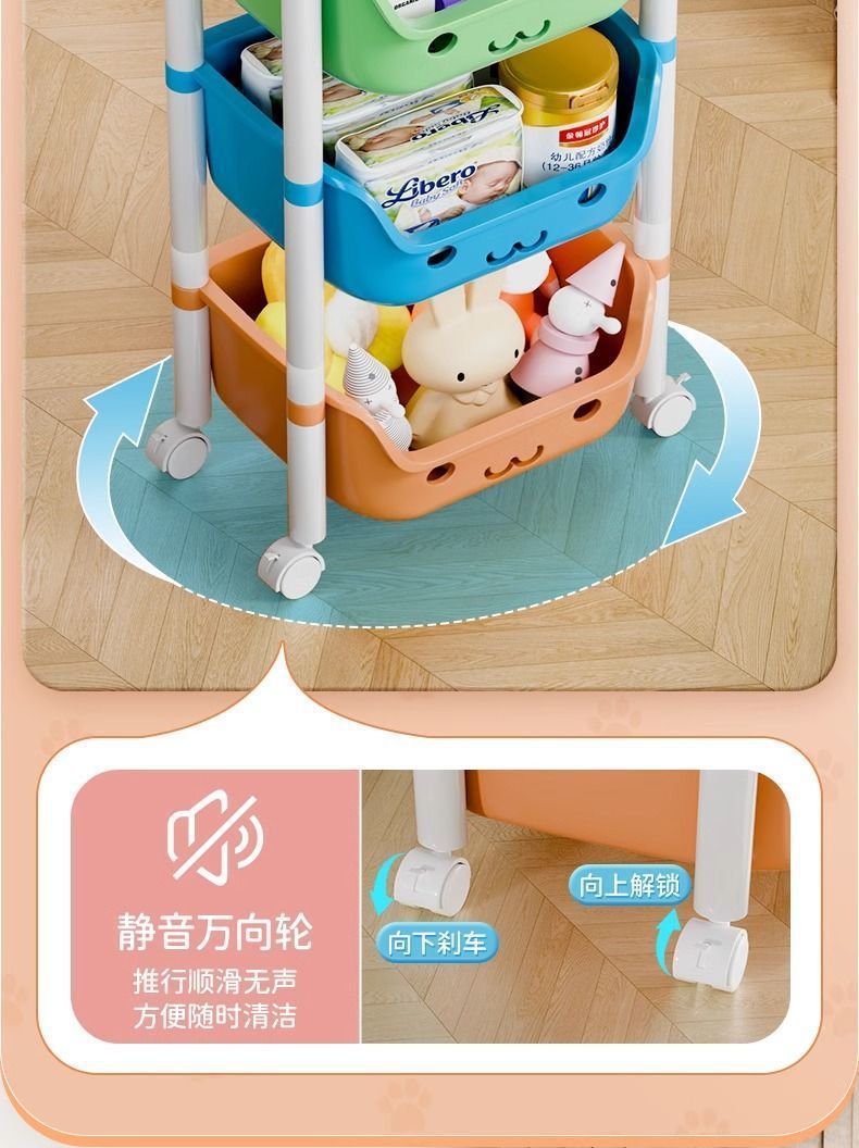 트롤리 스토리지 랙 어린이 장난감 바닥 스토리지 랙 가정용 스낵 책장 그림책 랙 모바일 다층 마무리