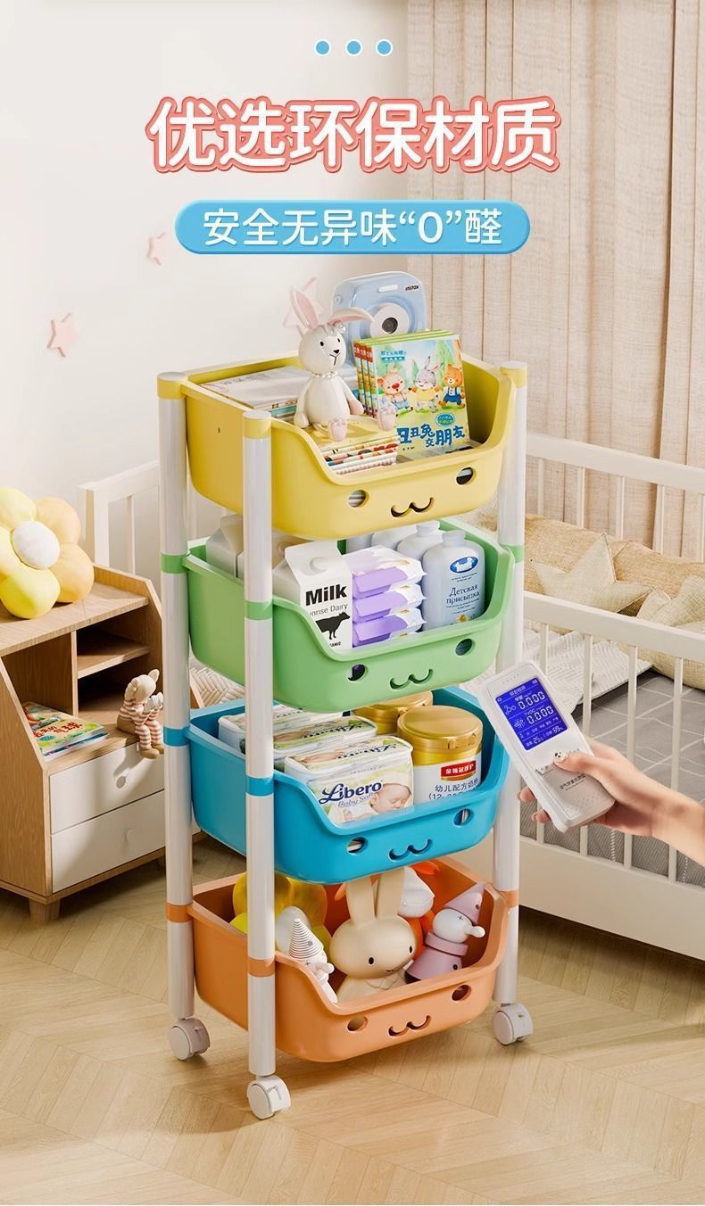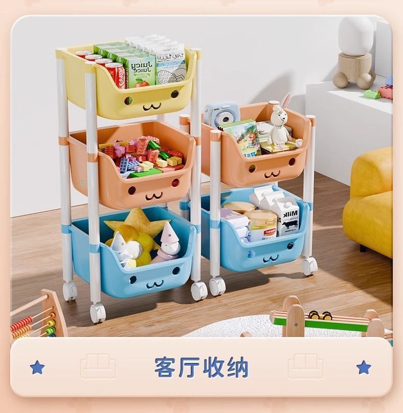 트롤리 스토리지 랙 어린이 장난감 바닥 스토리지 랙 가정용 스낵 책장 그림책 랙 모바일 다층 마무리스토어 가기