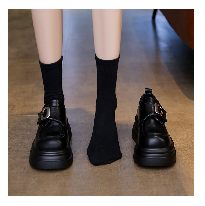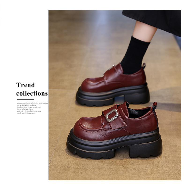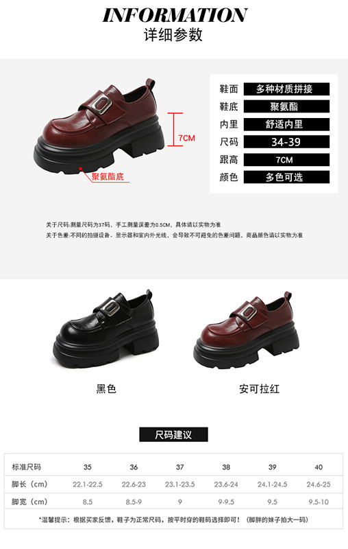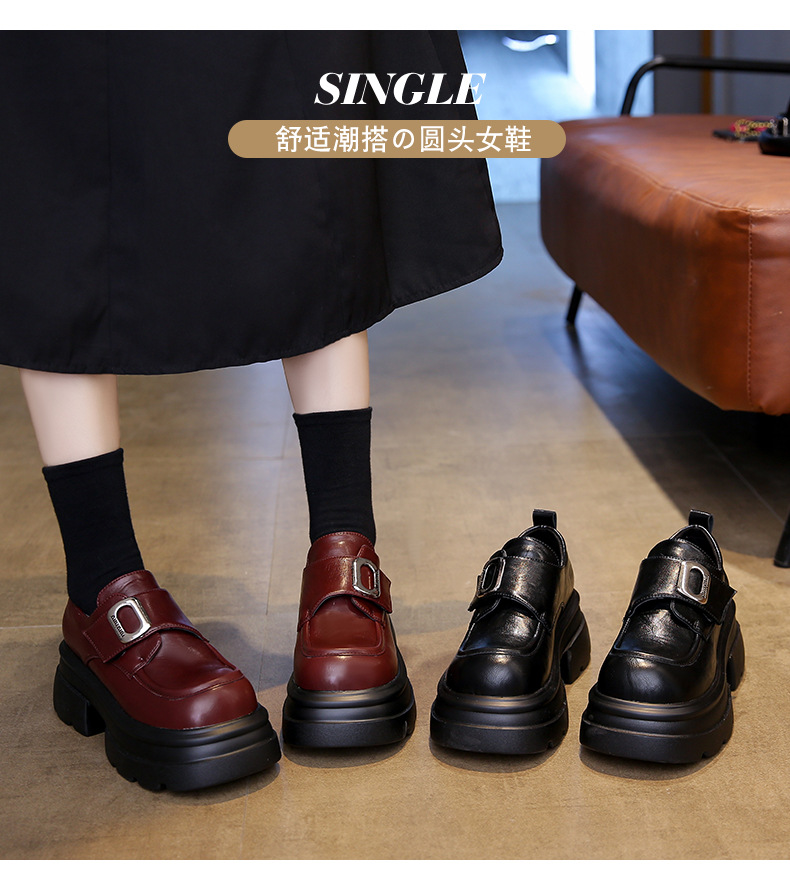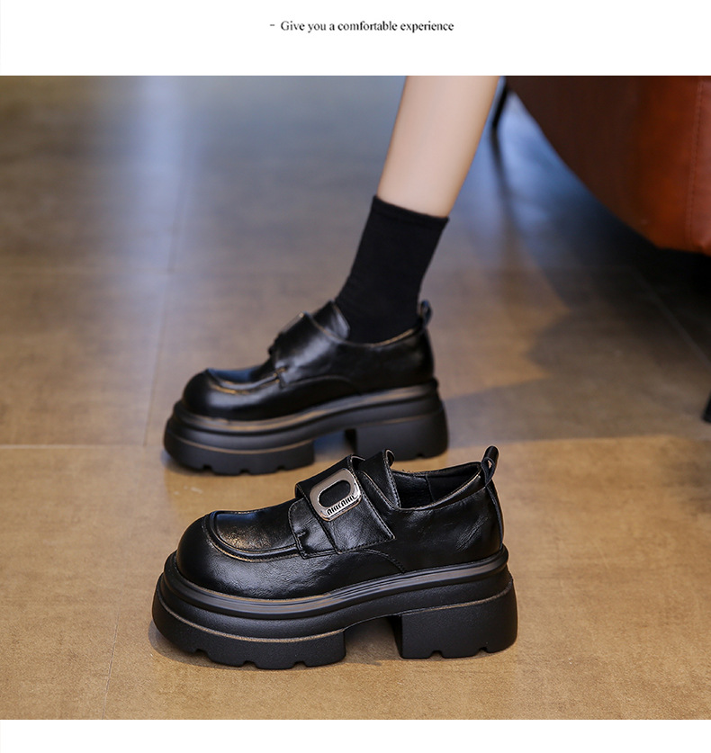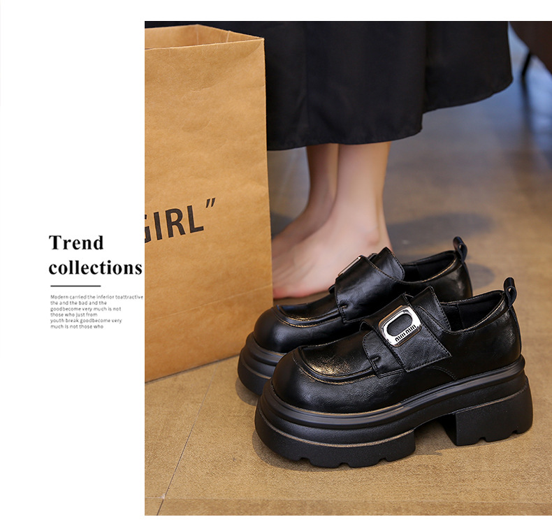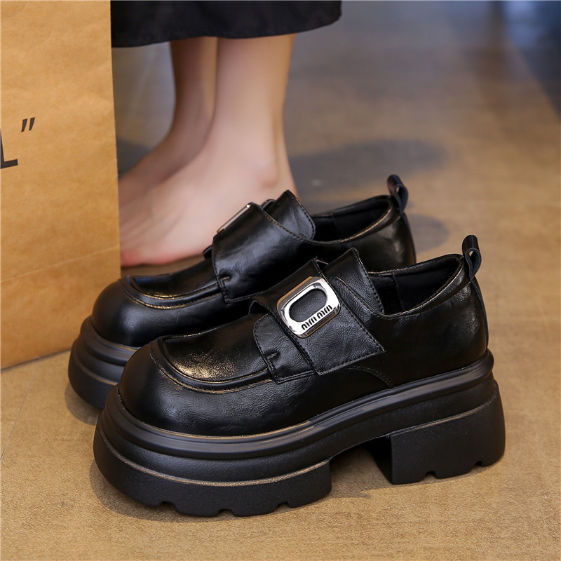 두꺼운 밑창 로퍼, 키 작은 분들을 위한 7cm 키높이 가죽 신발, 여성용 2025 신상 레트로 벨크로 플랫폼 슈즈스토어 가기