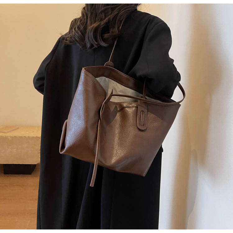 여성용 인기 소프트 소재 대용량 가방 2026년 신상 레트로 심플 다용도 숄더백 출퇴근용 토트백