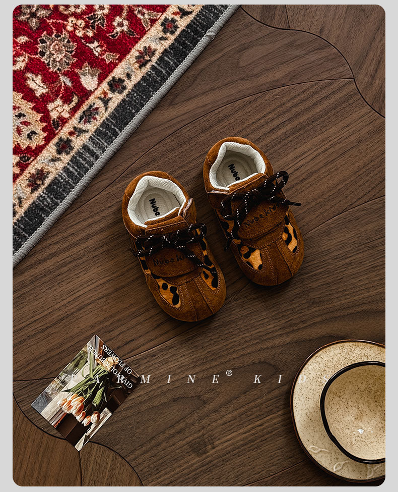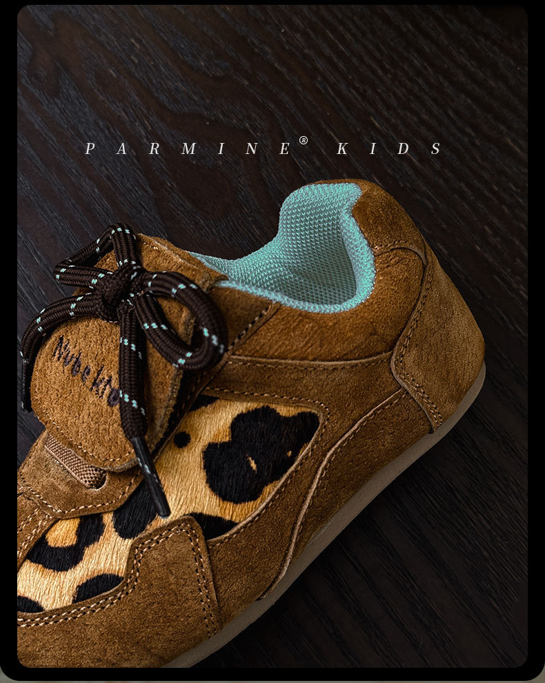 정품 가죽 아기 소녀 표범 간단한 스포츠 신발 봄 가을 2022 새로운 여자 부드러운 단독 캐주얼 싱글 신발 여자 신발