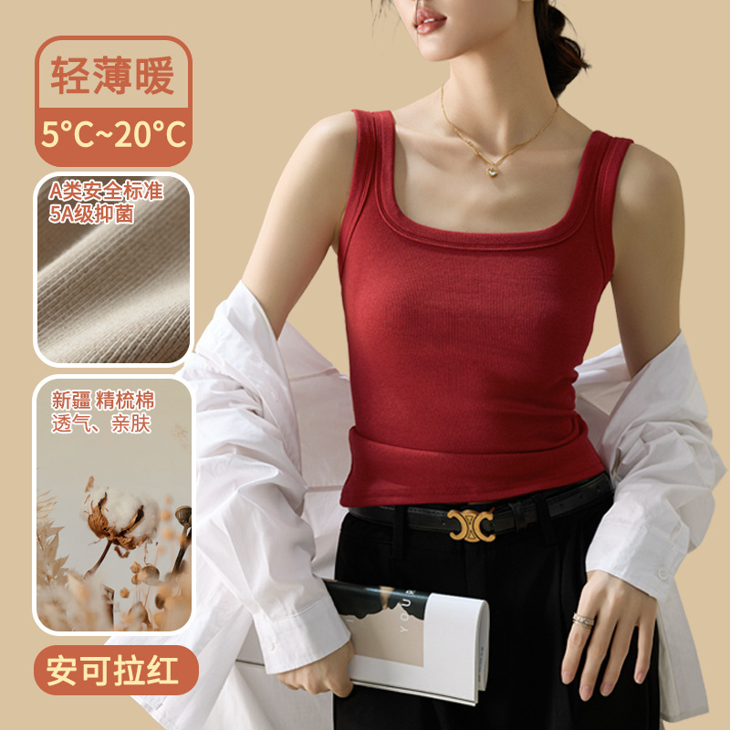 브러쉬드 린넨 슬림핏 여성용 탑, 안코라 레드 이너웨어/아우터웨어 겸용 2025 신상 보온성 좋은 탑