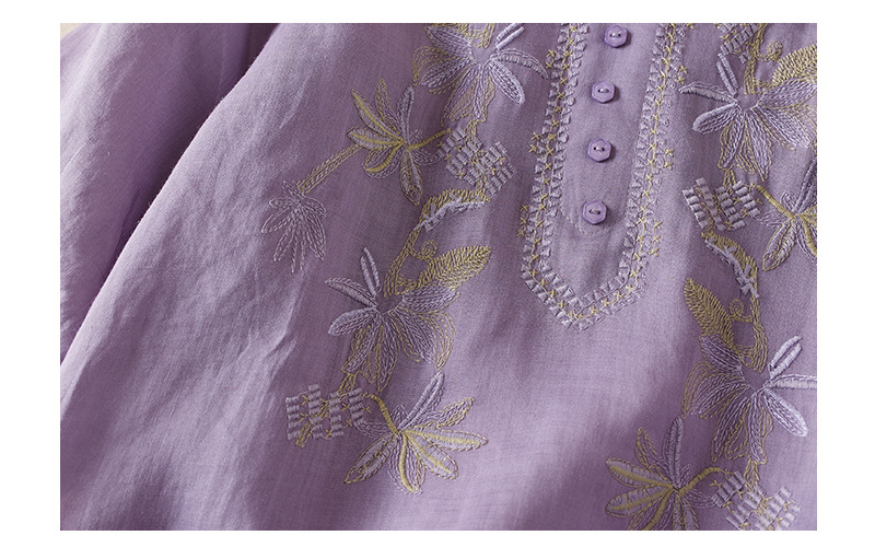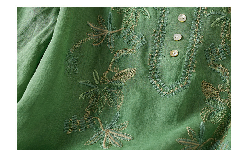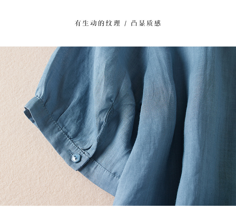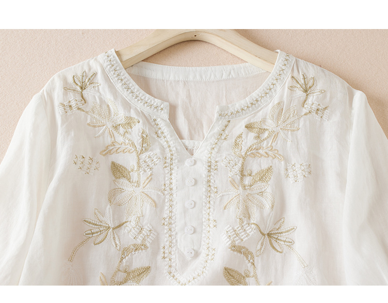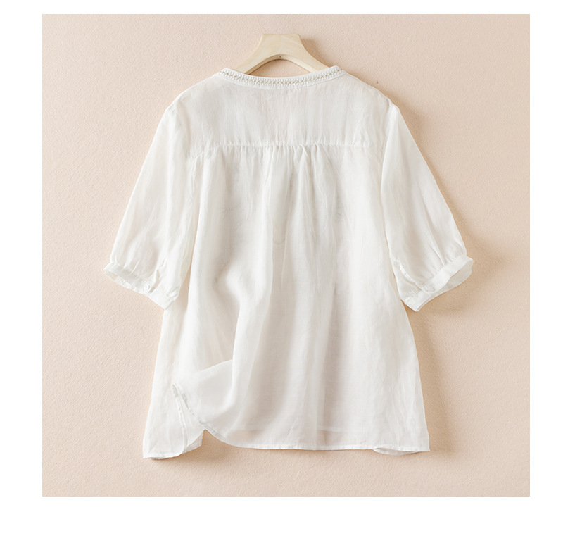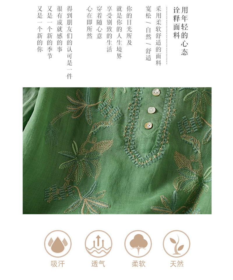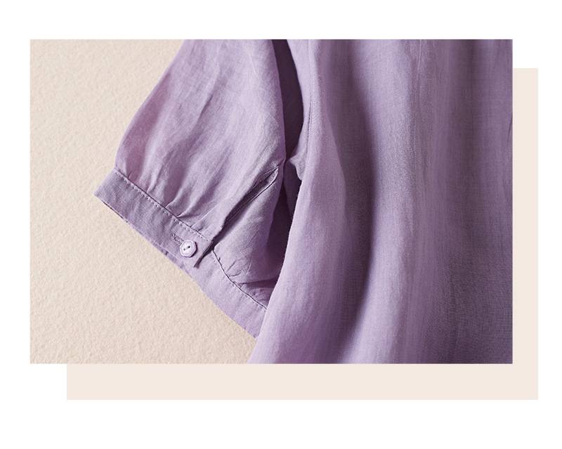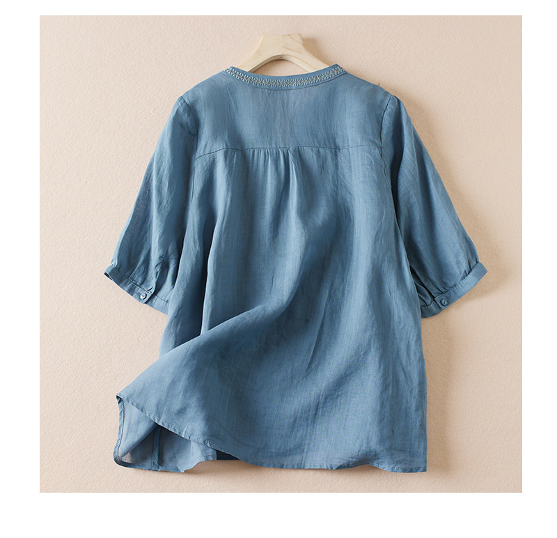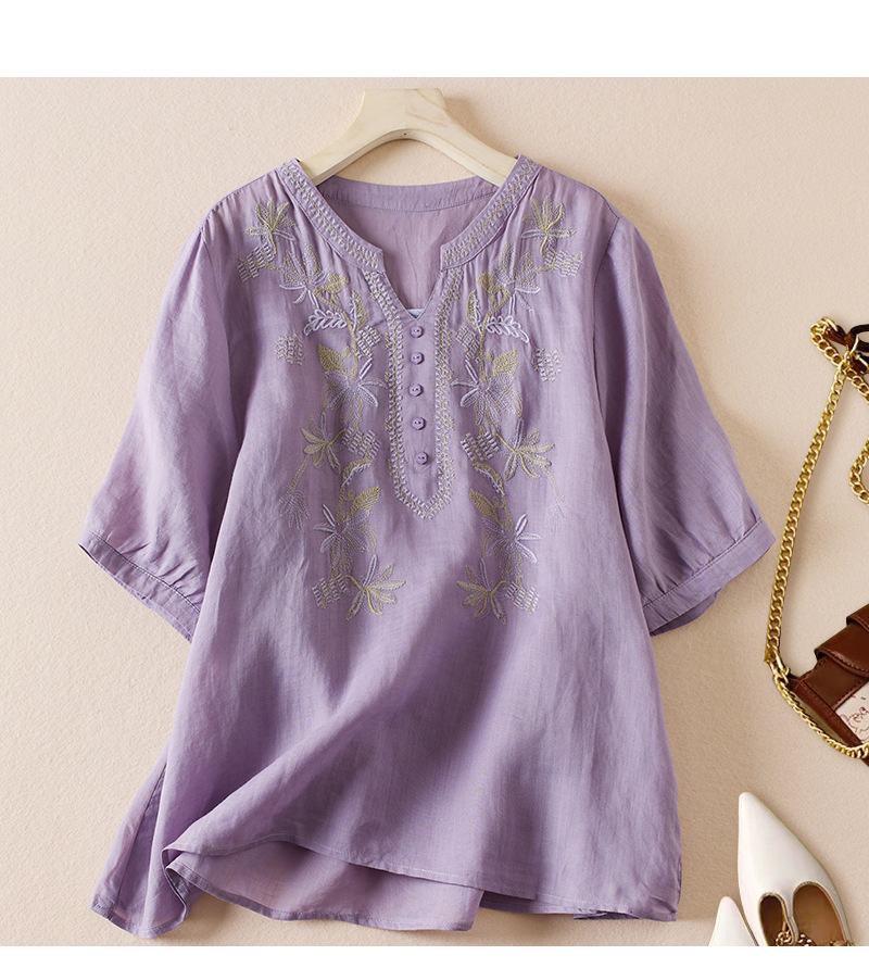 리얼 샷 2024 여름 새로운 예술적 느슨한 단색 자수 V-넥 반팔 티셔츠 여성 재킷 #6650 #스토어 가기