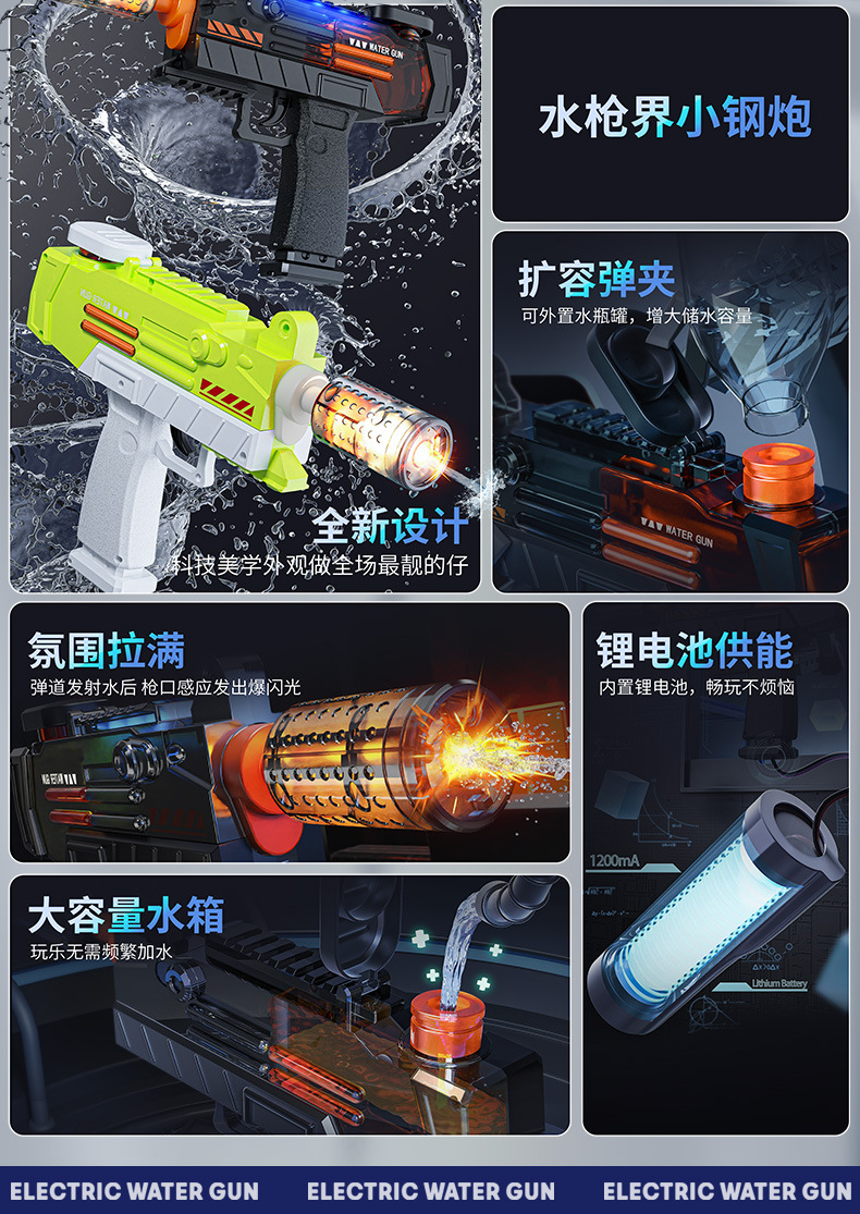 • uzi 전동 물총 - 화염 방사 버전 (블루) MQ-55 충전식