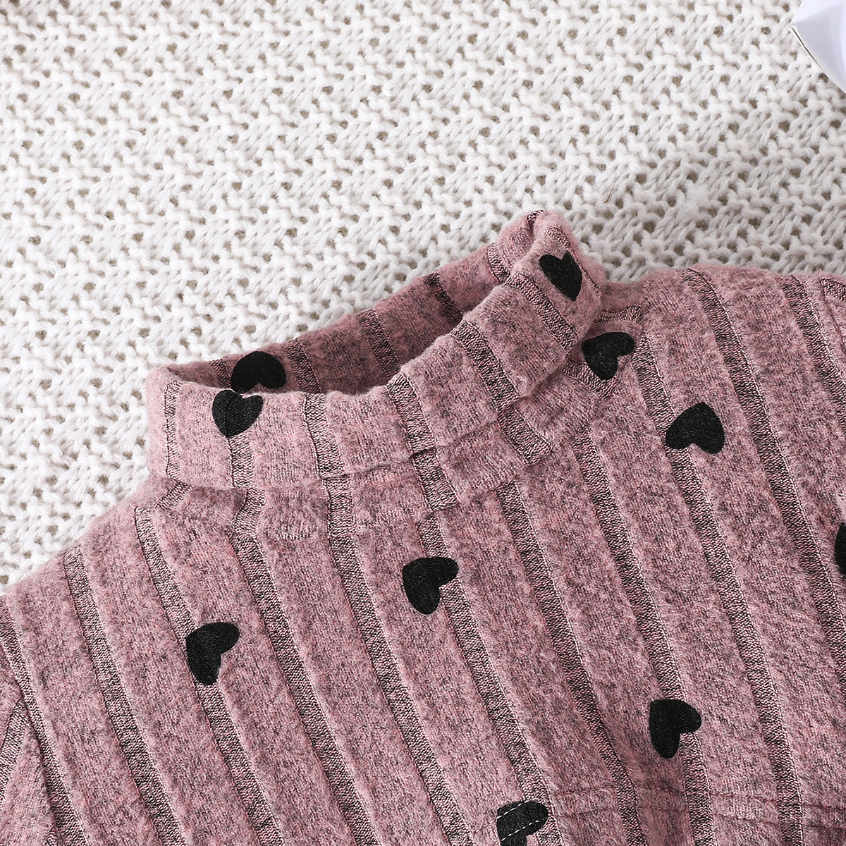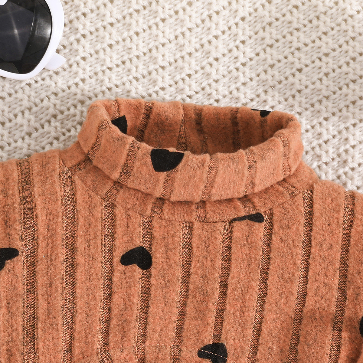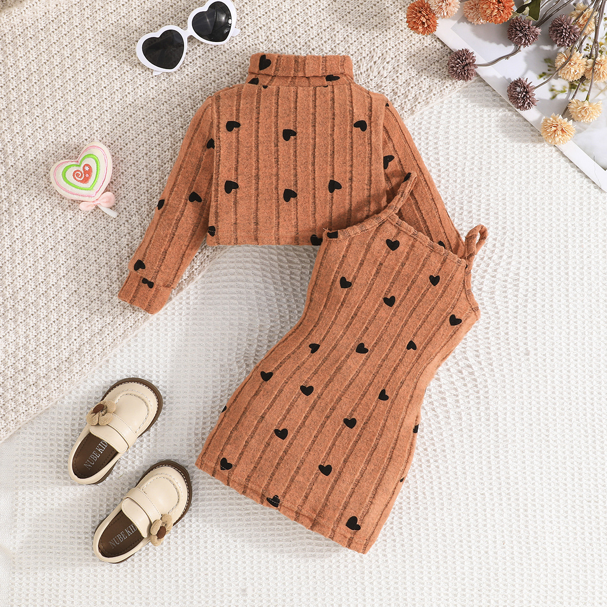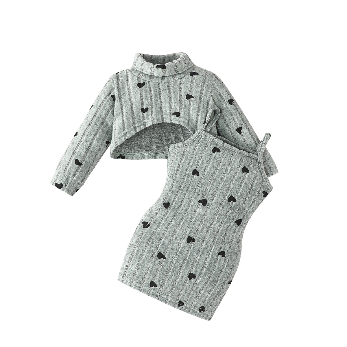2025 봄과 가을 새로운 스타일 아기 소녀 간단한 따뜻한 사랑 패턴 터틀넥 긴 소매 크롭 탑 서스펜더 드레스