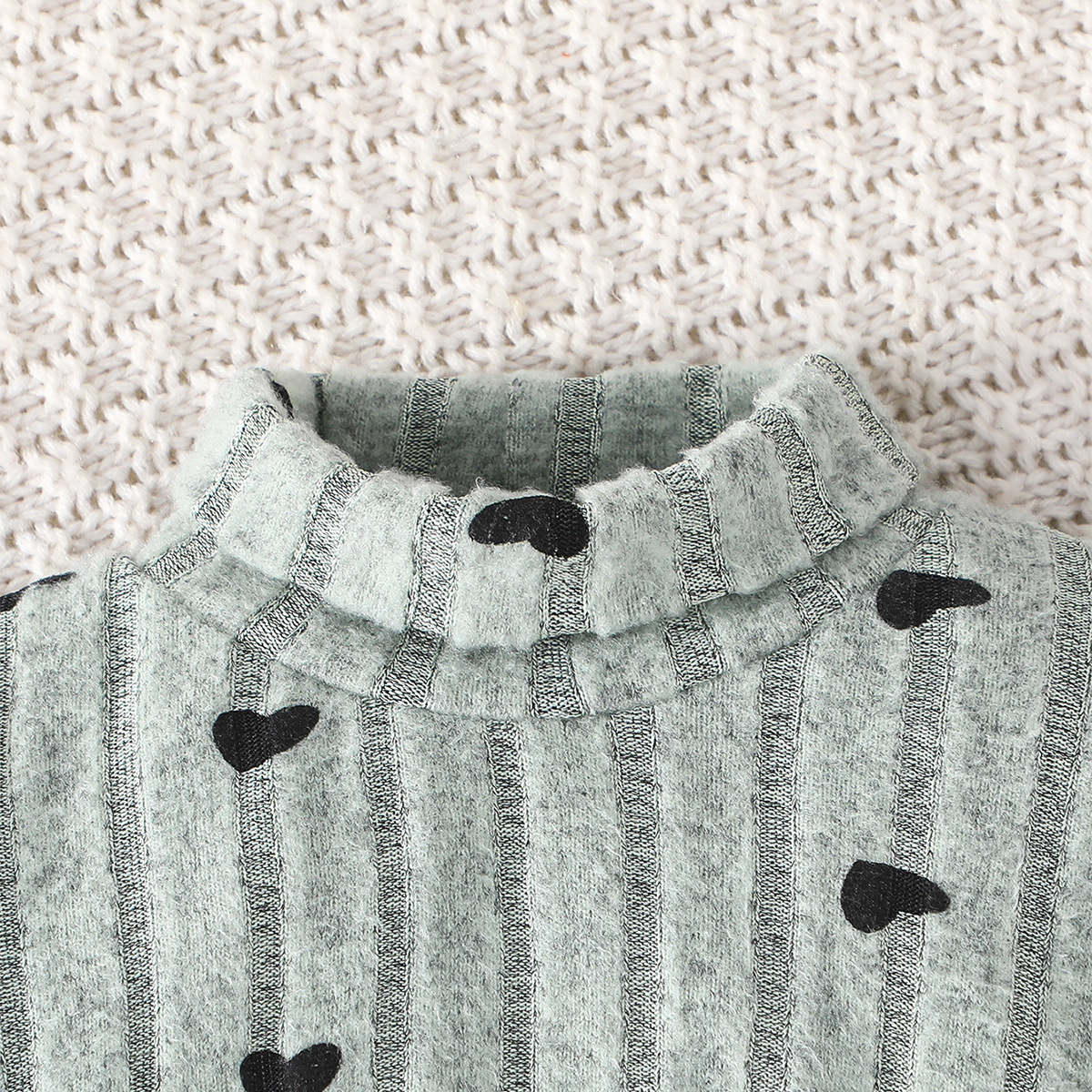 2025 봄과 가을 새로운 스타일 아기 소녀 간단한 따뜻한 사랑 패턴 터틀넥 긴 소매 크롭 탑 서스펜더 드레스스토어 가기